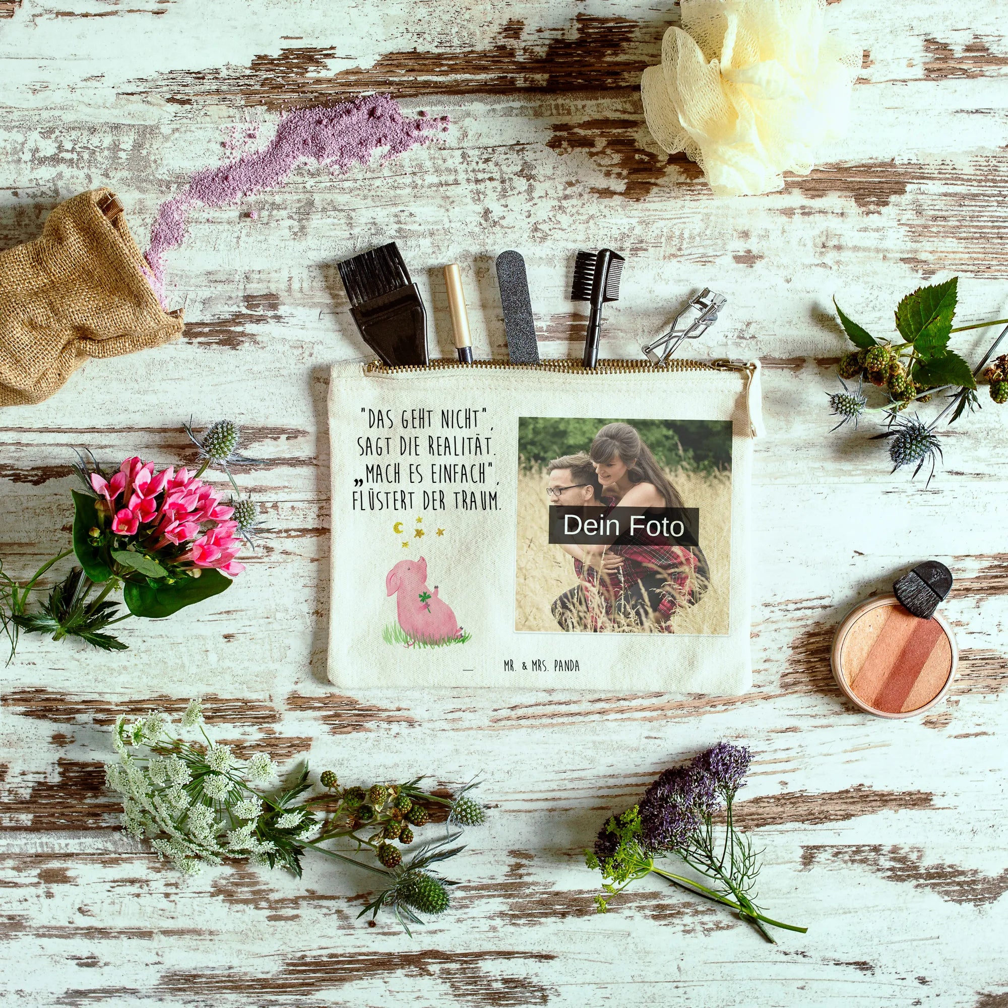Spersonalizowana kosmetyczka ze zdjęciem świnia Szczęście - Größe S Klein
