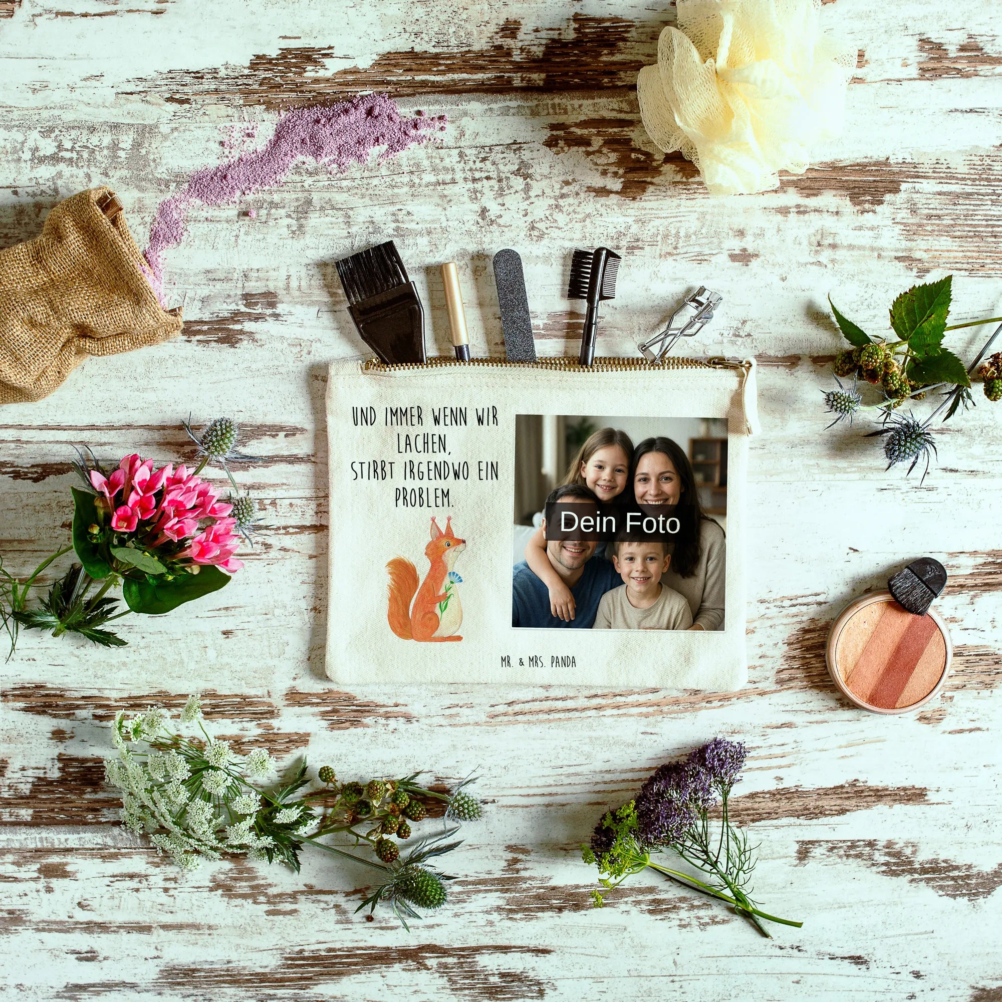 Spersonalizowana kosmetyczka ze zdjęciem wiewiórka kwiat - Größe S Klein