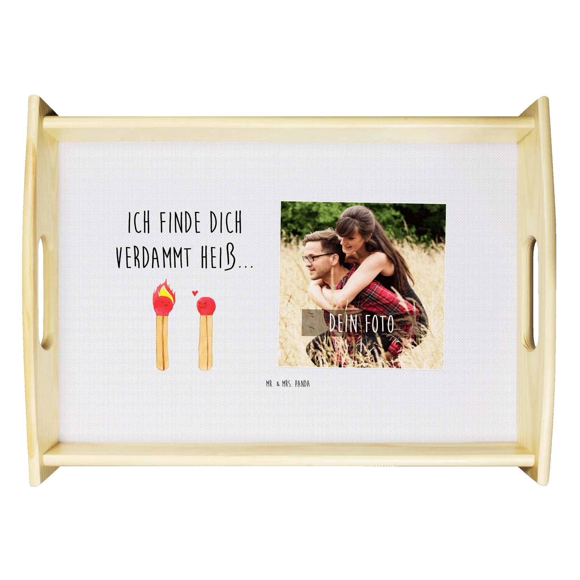 Das personalisierte Foto Serviertablett mit dem Motiv Streichhölzer von Mr. & Mrs. Panda ist das ideale Geschenk für alle Verliebten und Paare. Ob zum Jahrestag, Hochzeitstag, zur Verlobung oder einfach als liebevolles Liebesgeschenk - dieses Tablett verkörpert die perfekte Kombination aus Funktionalität und Emotion.