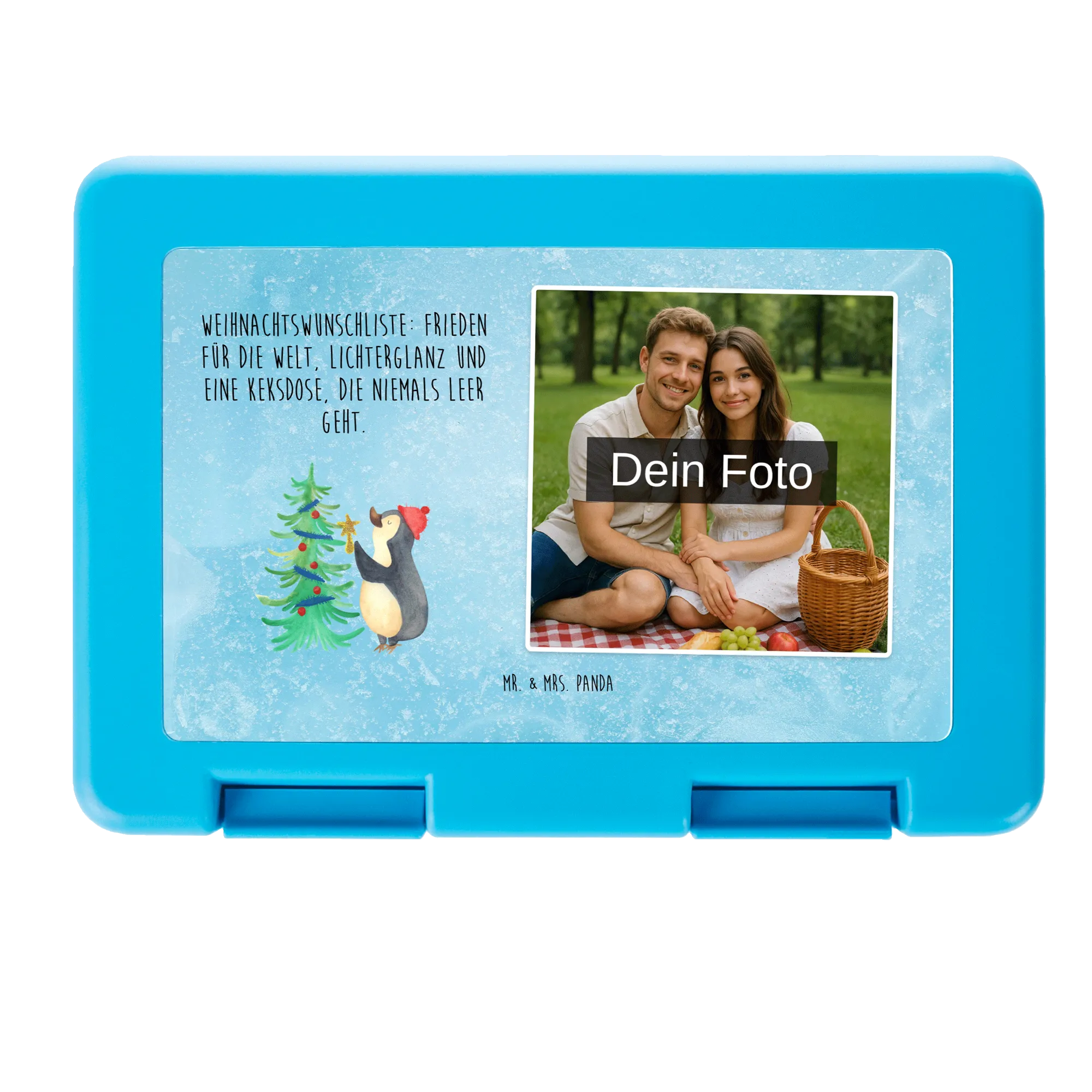 Brotbox mit eigenem Foto Pinguin Weihnachtsbaum