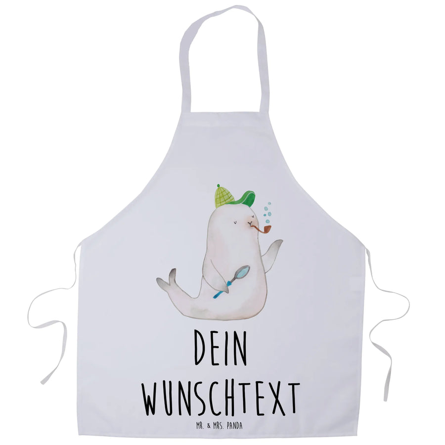 Spersonalizowany fartuch kuchenny foka Sherlock - biały