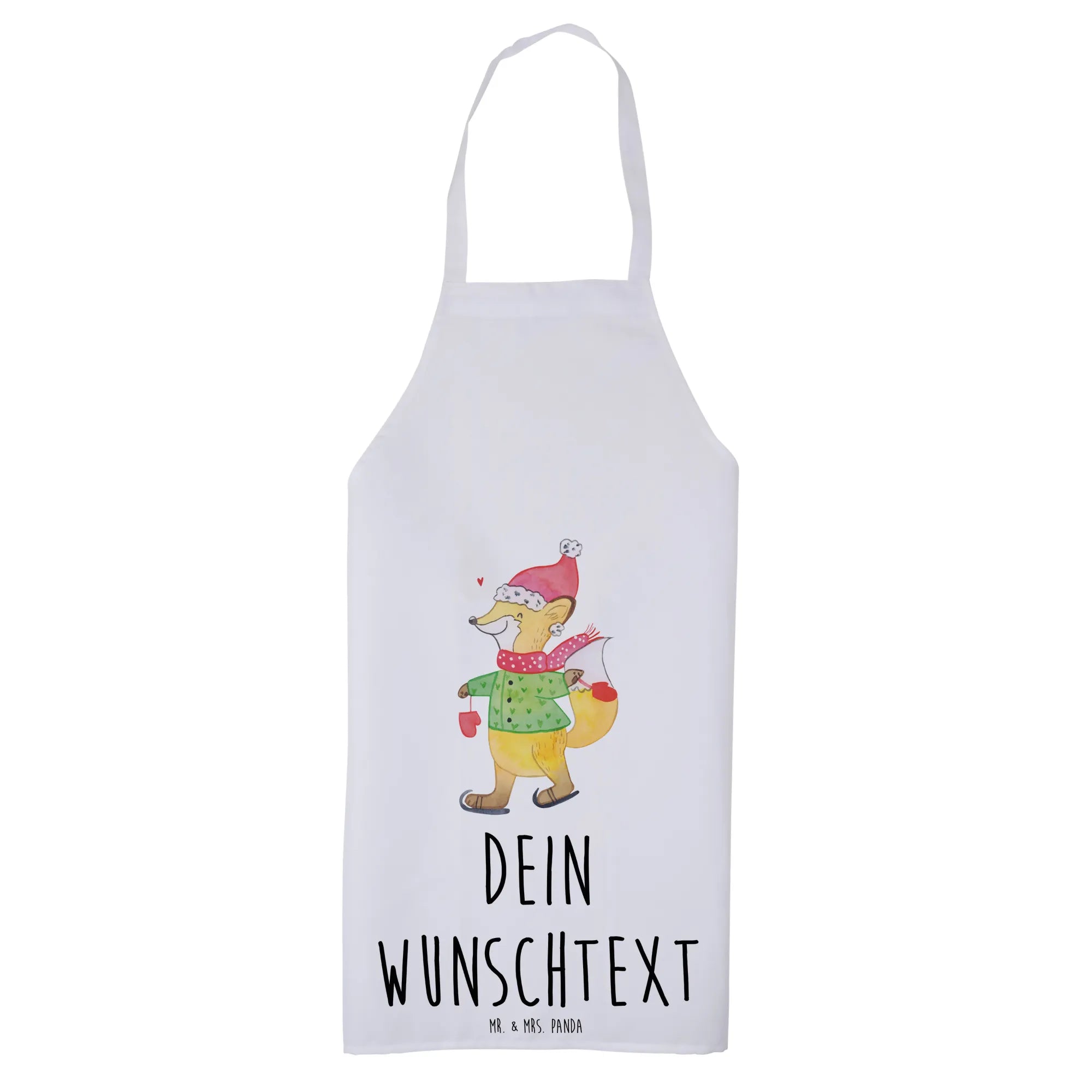Spersonalizowany fartuch kuchenny lis łyżwy - biały