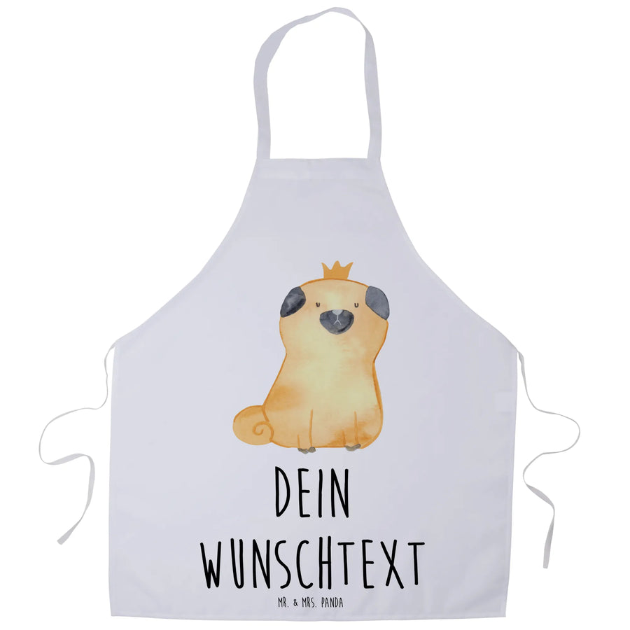 Spersonalizowany fartuch kuchenny mops korona - biały