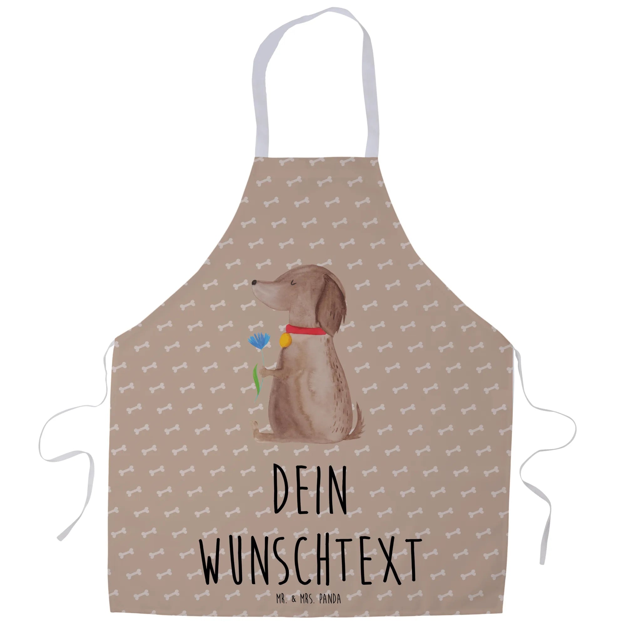 Unsere personalisierte Kochschürze "Hund Blume" aus der Hunde Kollektion von Mr. & Mrs. Panda ist das perfekte Geschenk für alle Hundeliebhaber und Hobbyköche! Diese wunderschöne Schürze ist nicht nur mit einem einmaligen Motiv einer süßen Hündin und einer Blume im Fell verziert, sondern kann auch ganz nach deinem Wunsch mit deinem Namen oder einem persönlichen Text angefertigt werden.