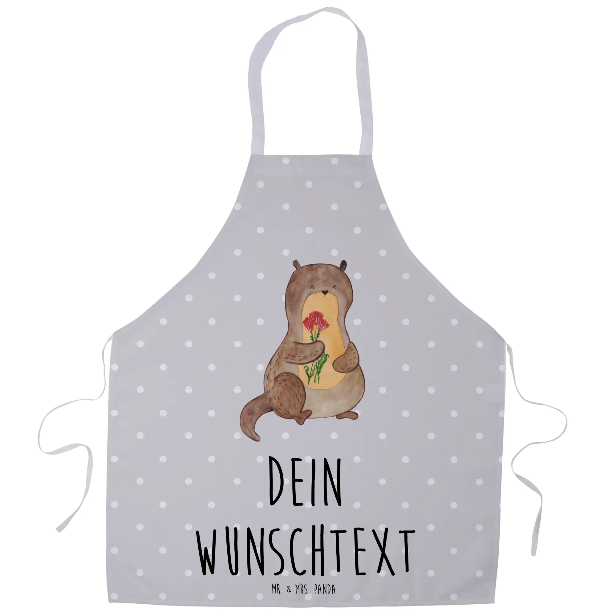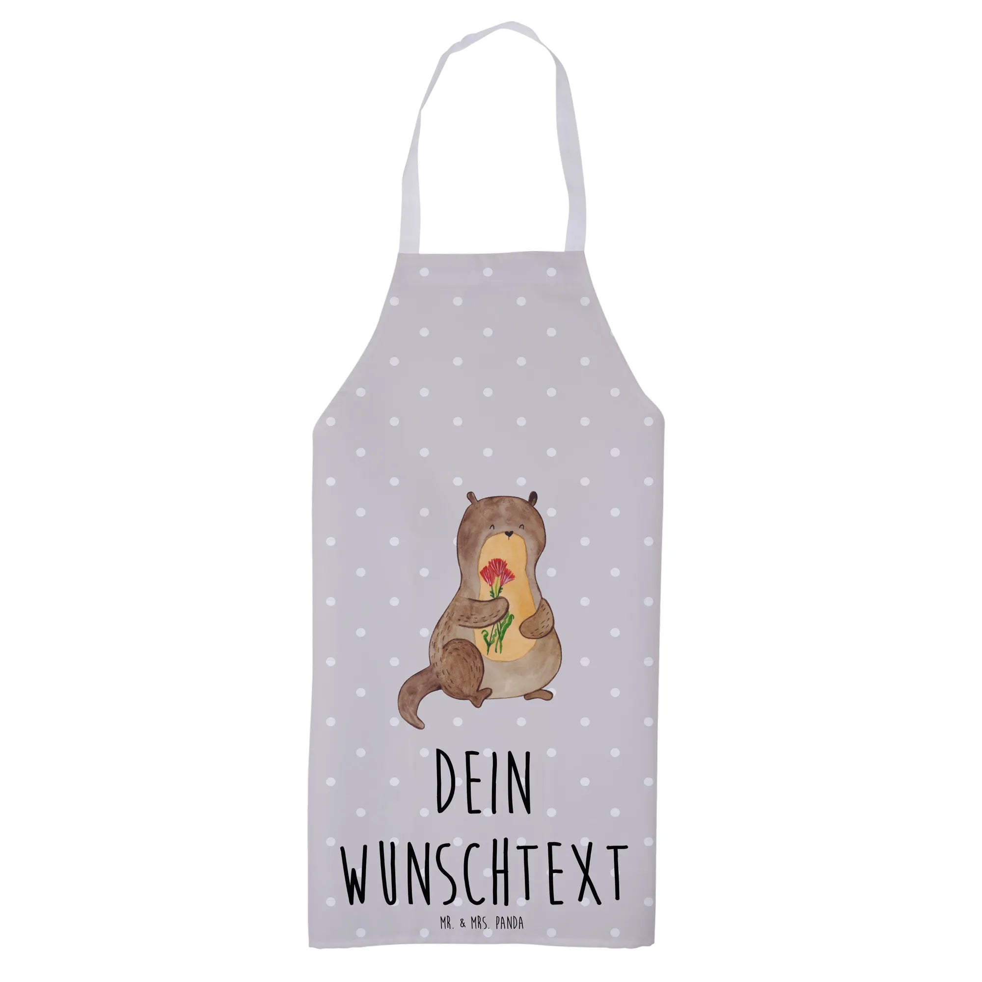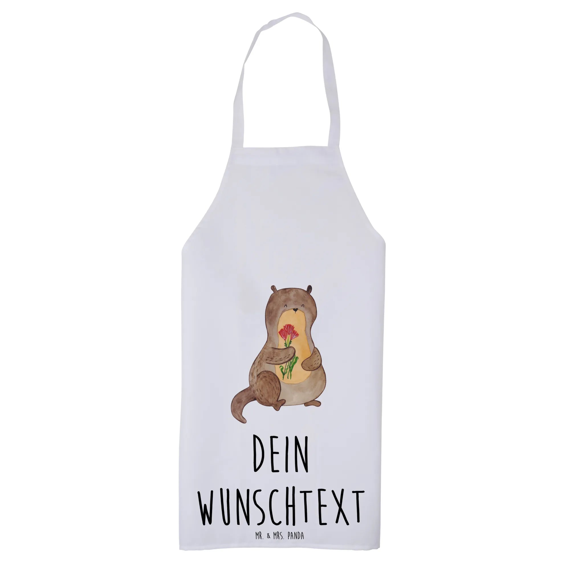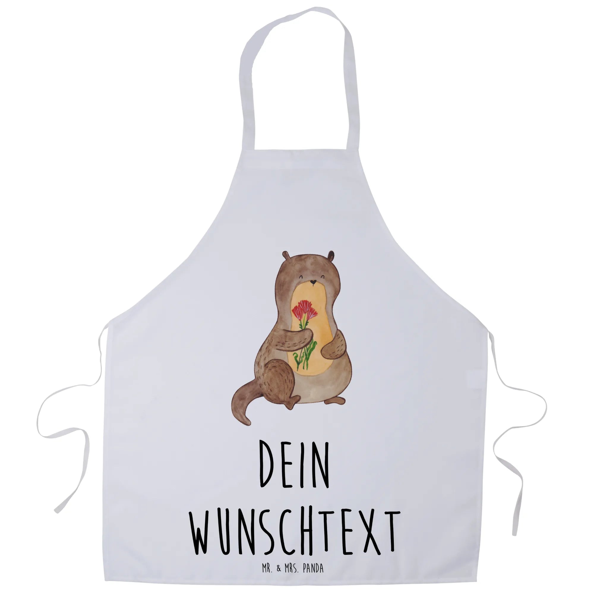 Spersonalizowany fartuch kuchenny wydra bukiet kwiatów - biały