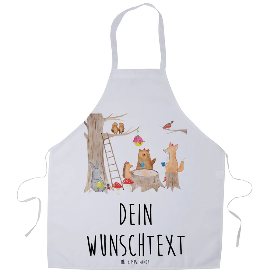 Spersonalizowany fartuch kuchenny zwierzęta leśne piknik - Weiß