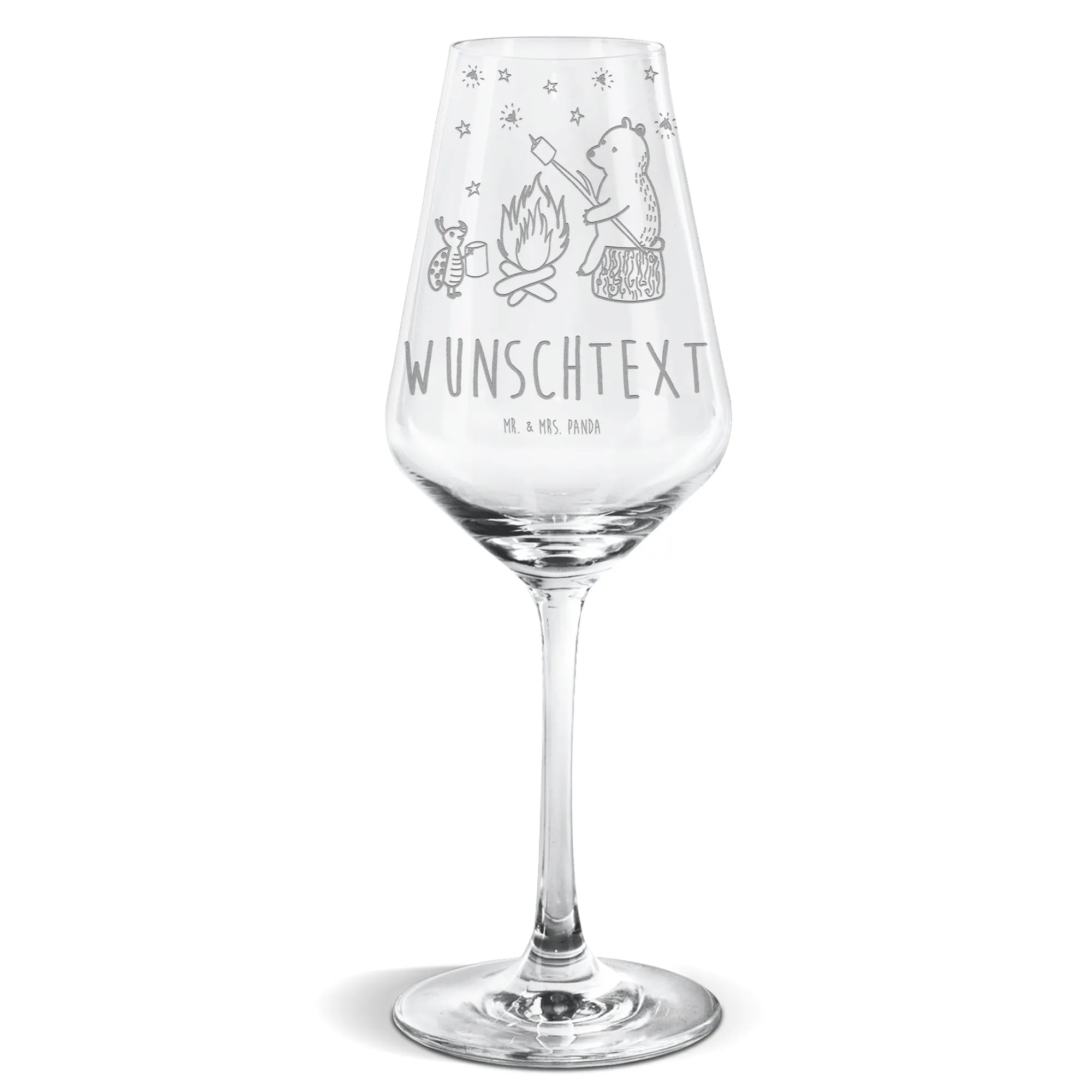 Spersonalizowany kieliszek do białego wina Niedźwiedź i biedronka przy ognisku