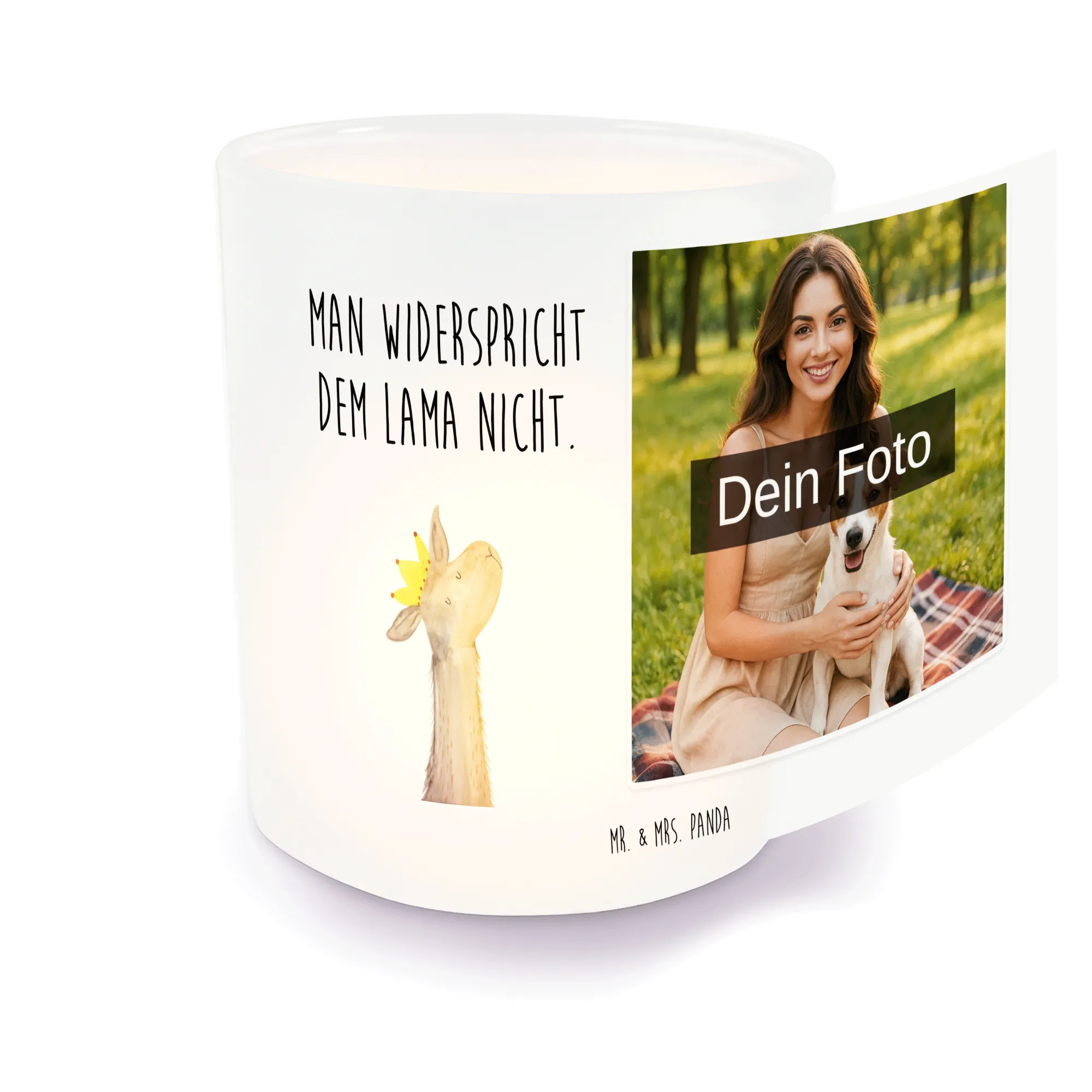 Laterne mit Foto Lamakopf König