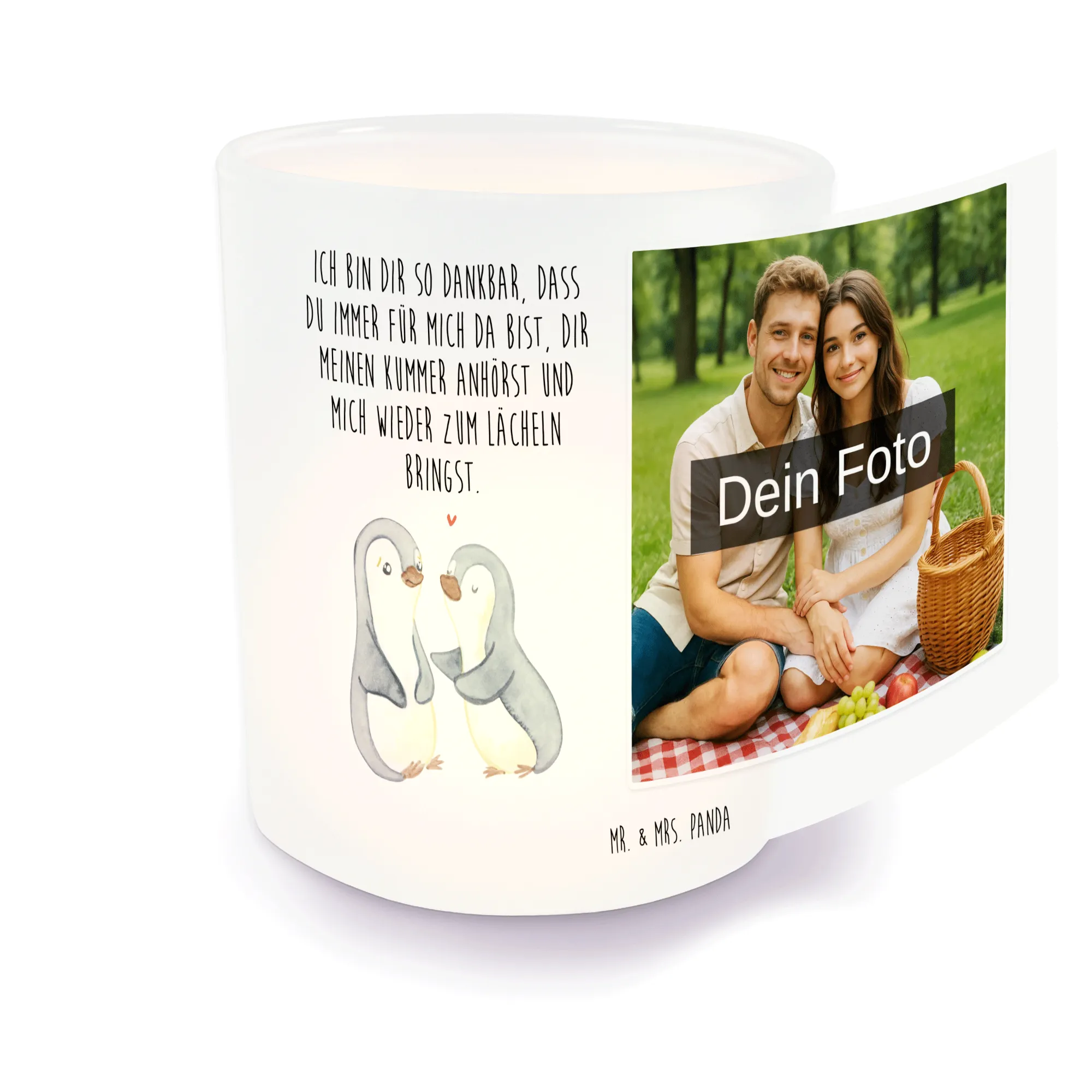 Fotogeschenk Windlicht Pinguine trösten – Mr. & Mrs. Panda