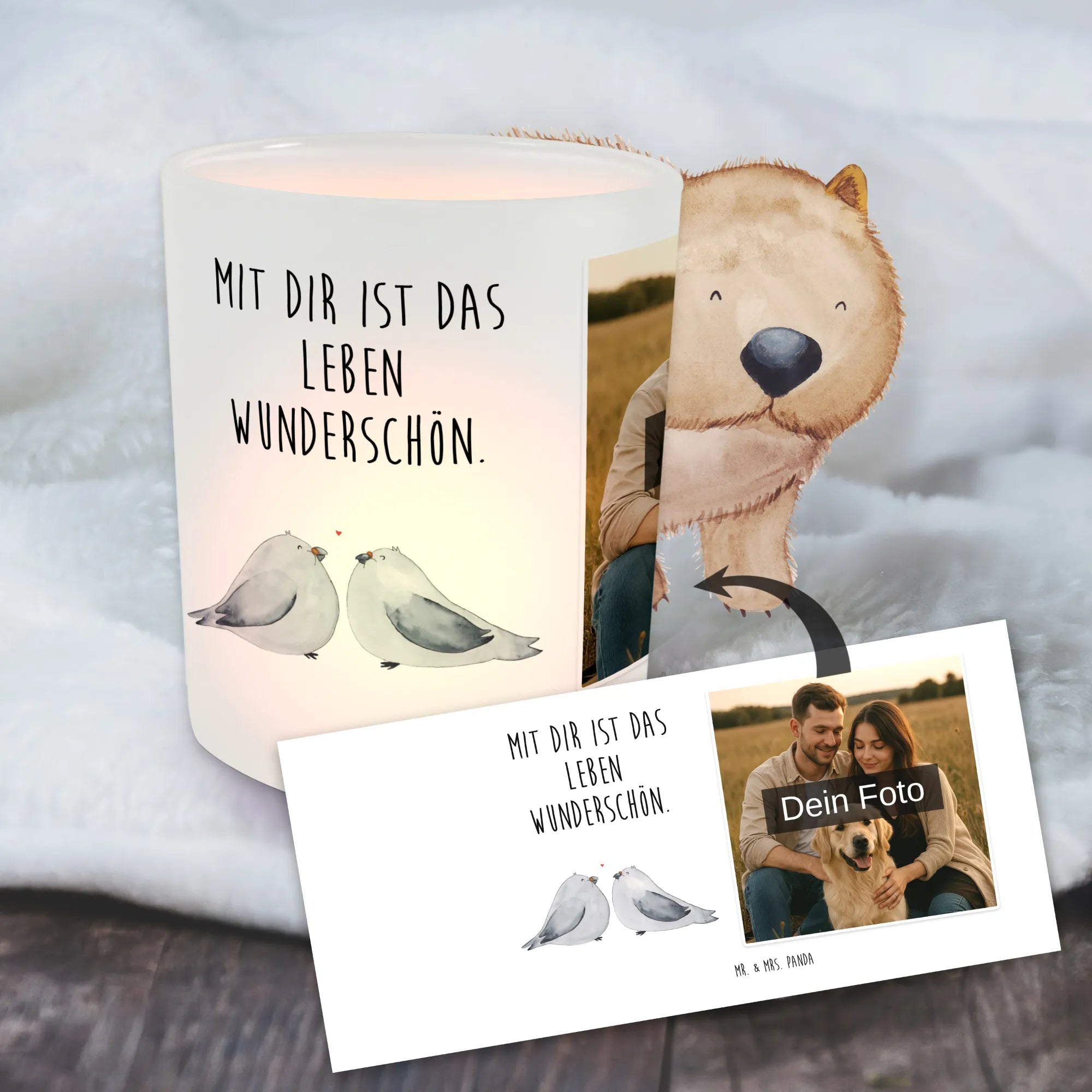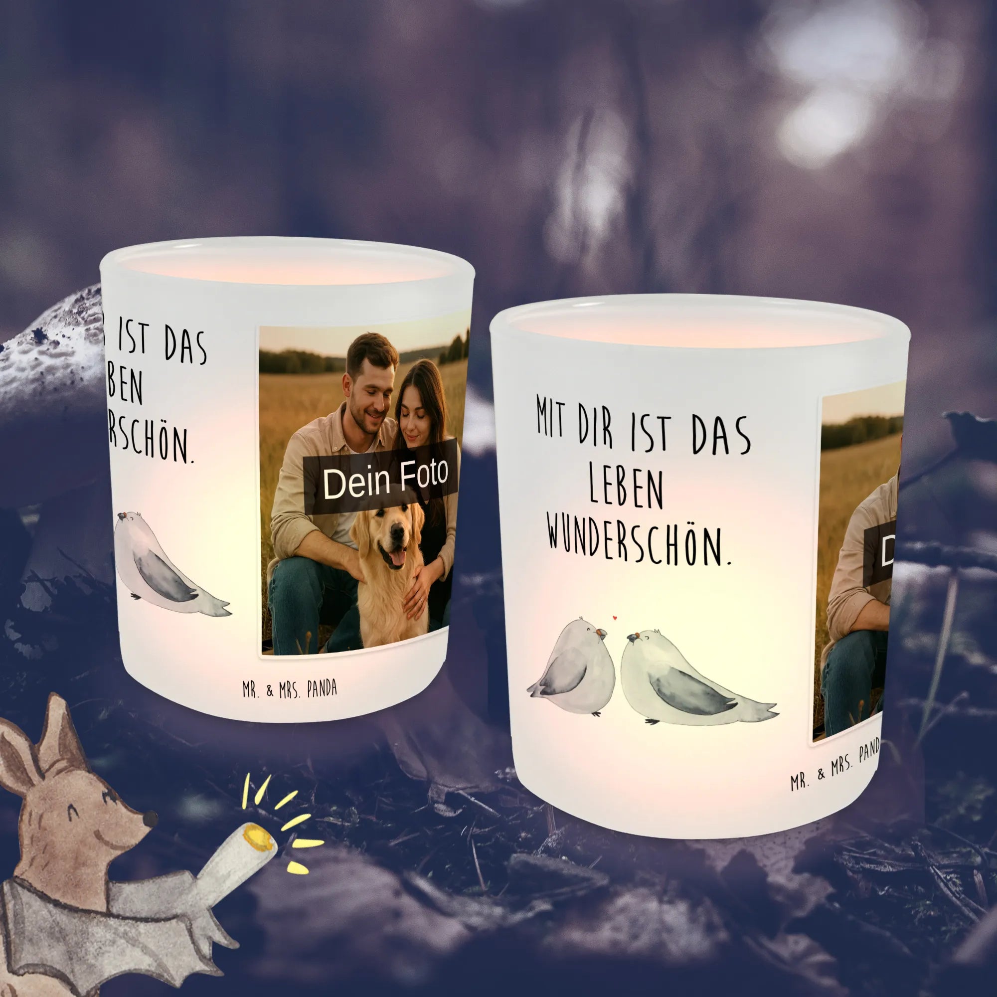 Spersonalizowany świecznik ze zdjęciem Gołębia miłość