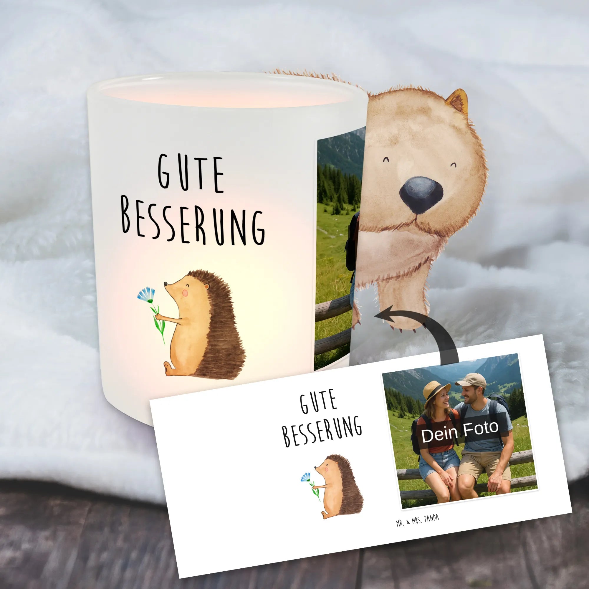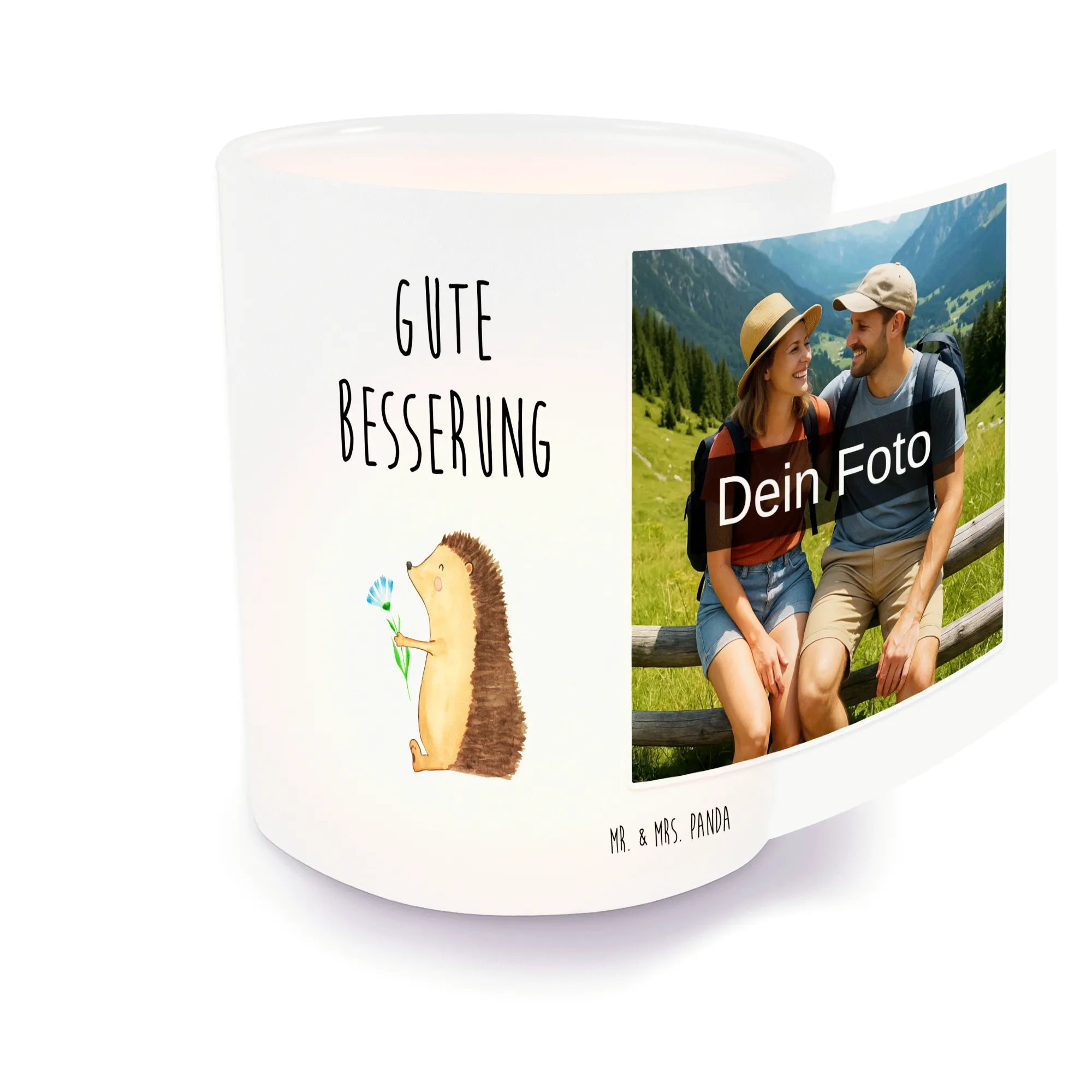 Spersonalizowany świecznik ze zdjęciem jeż Kwiaty