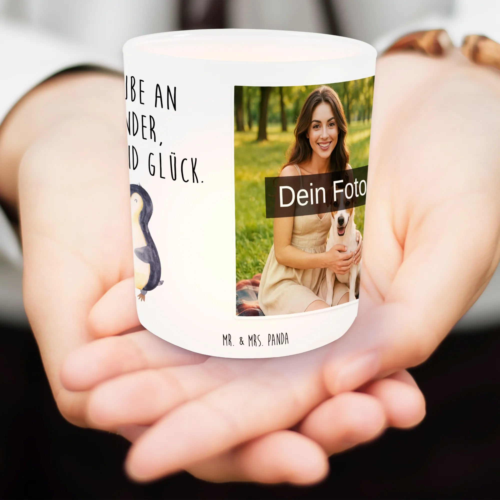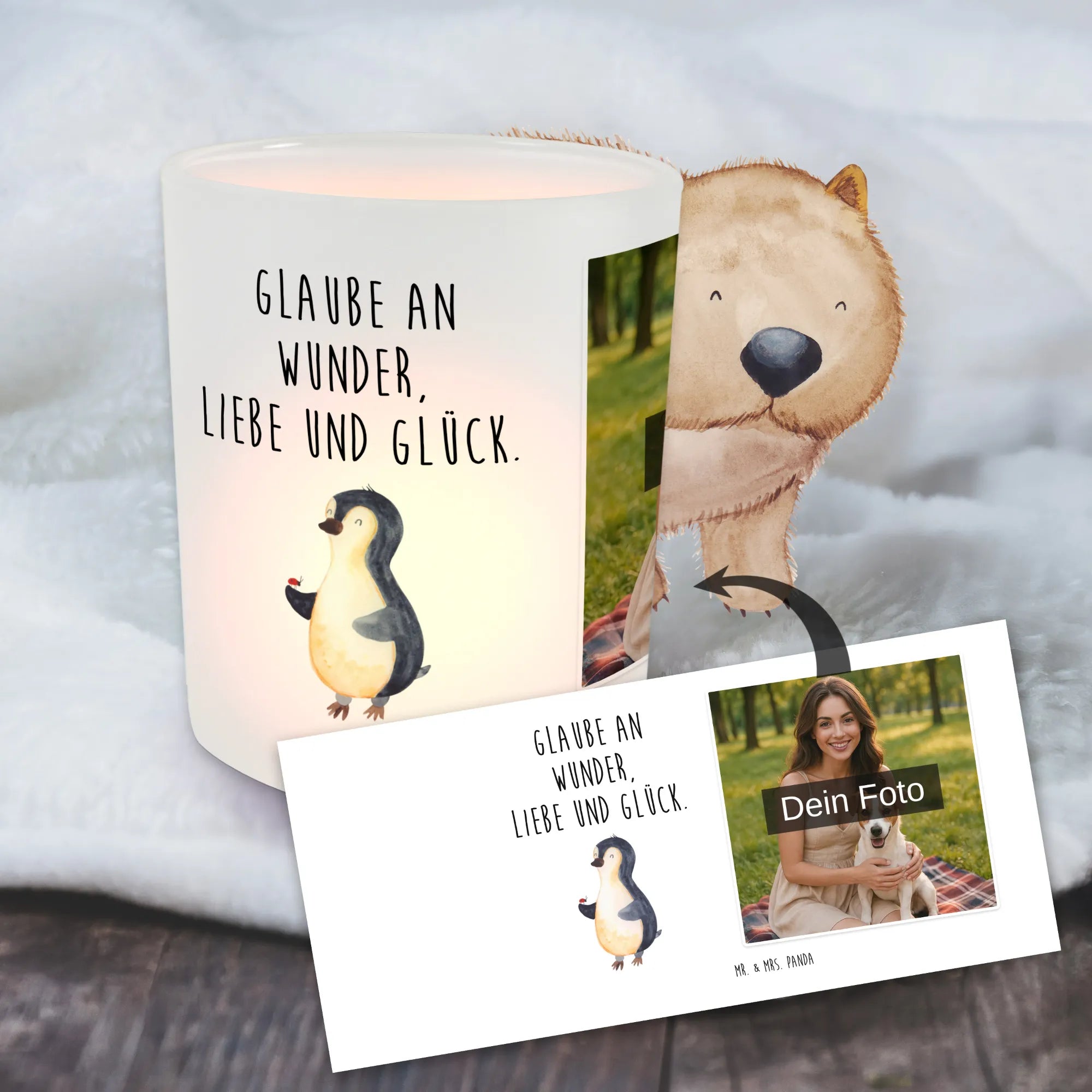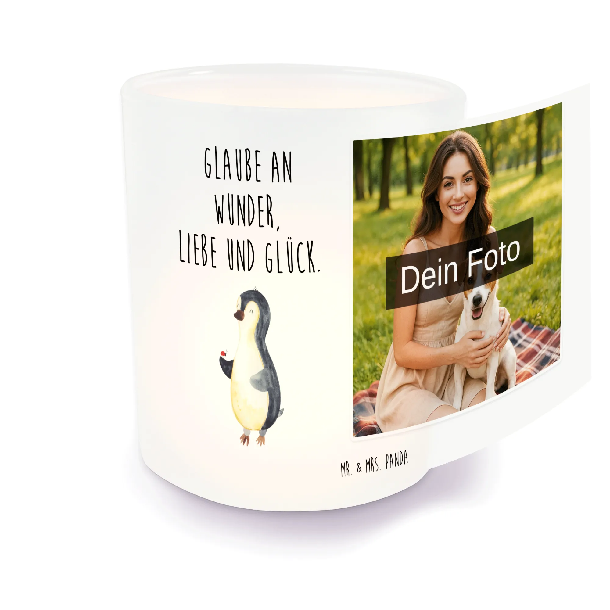Spersonalizowany świecznik ze zdjęciem Pingwin biedronka