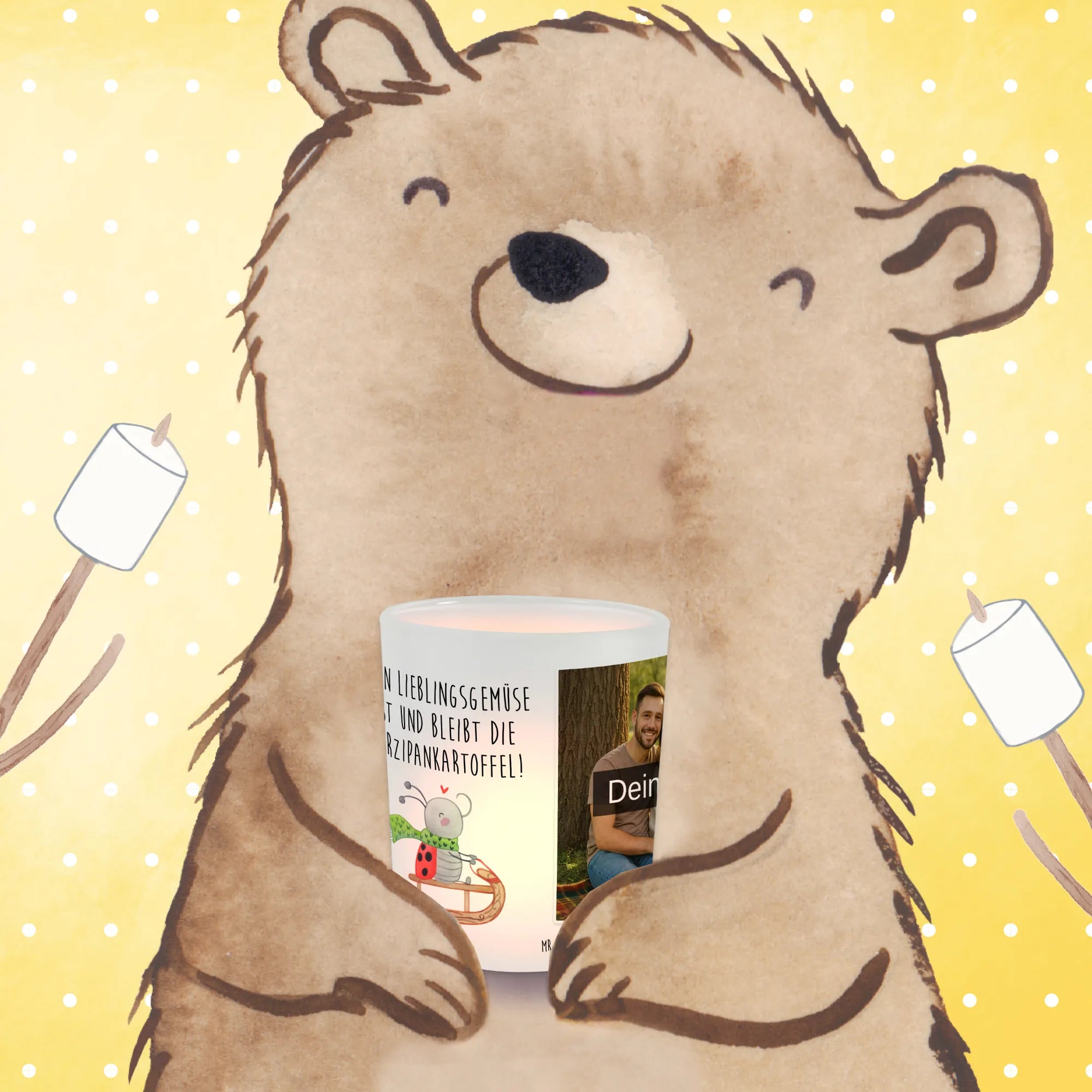 Spersonalizowany świecznik ze zdjęciem Smörle jazda na sankach