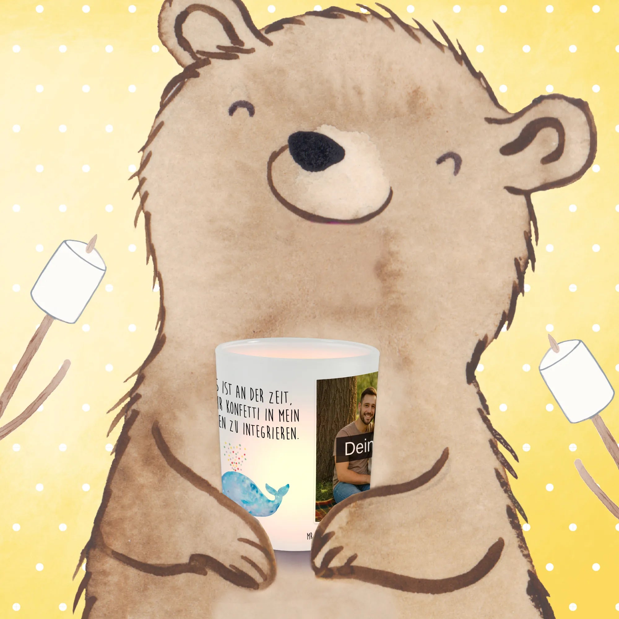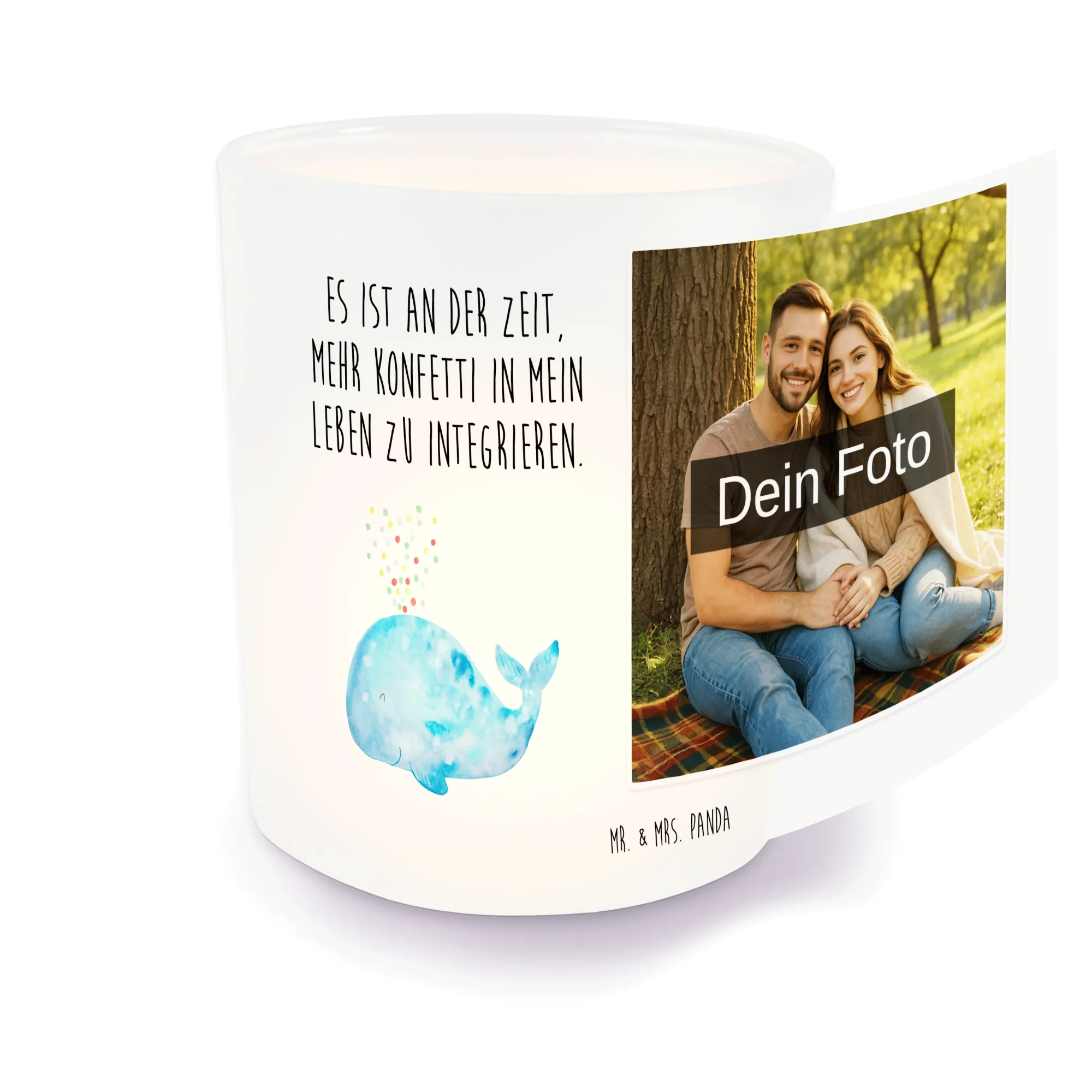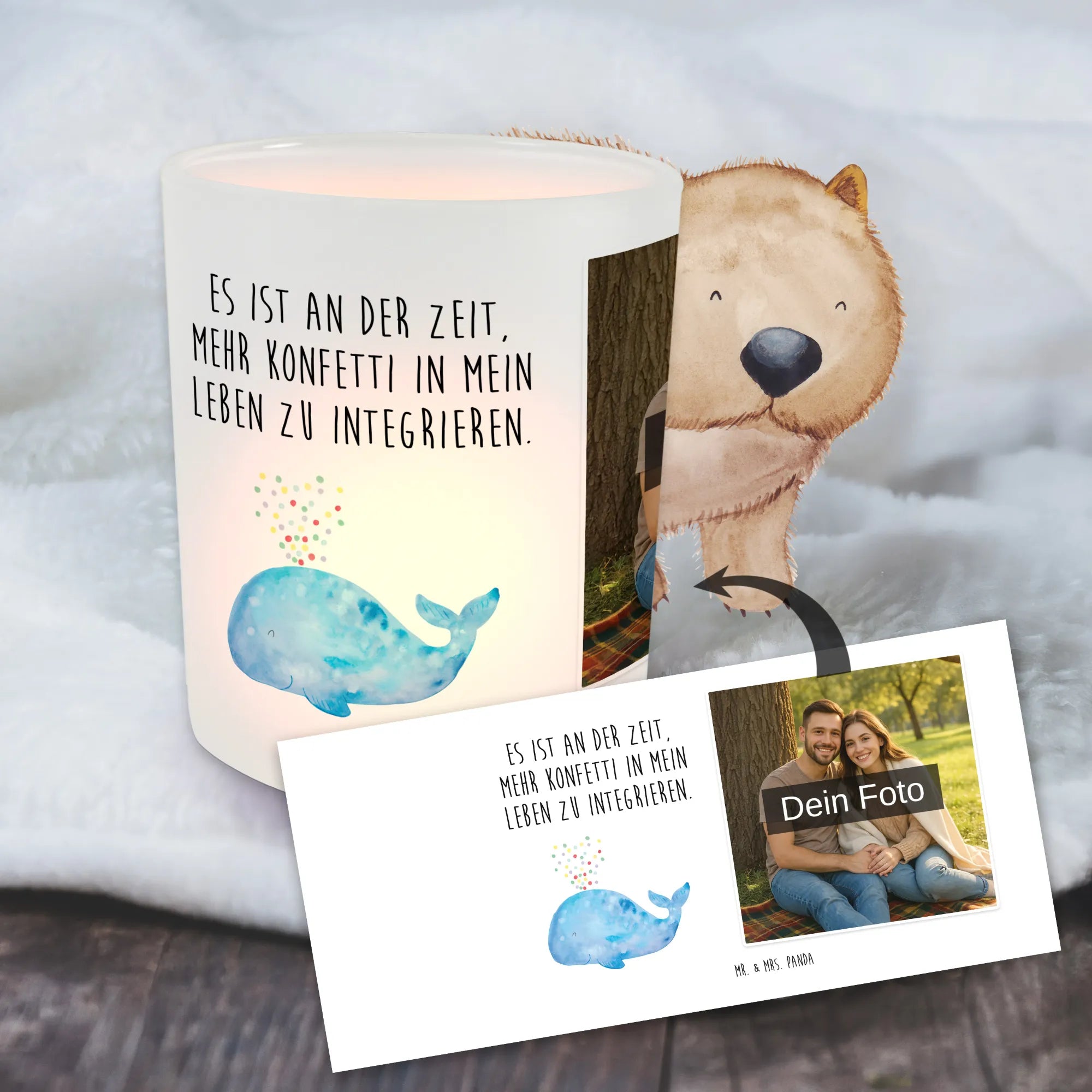 Spersonalizowany świecznik ze zdjęciem wieloryb konfetti