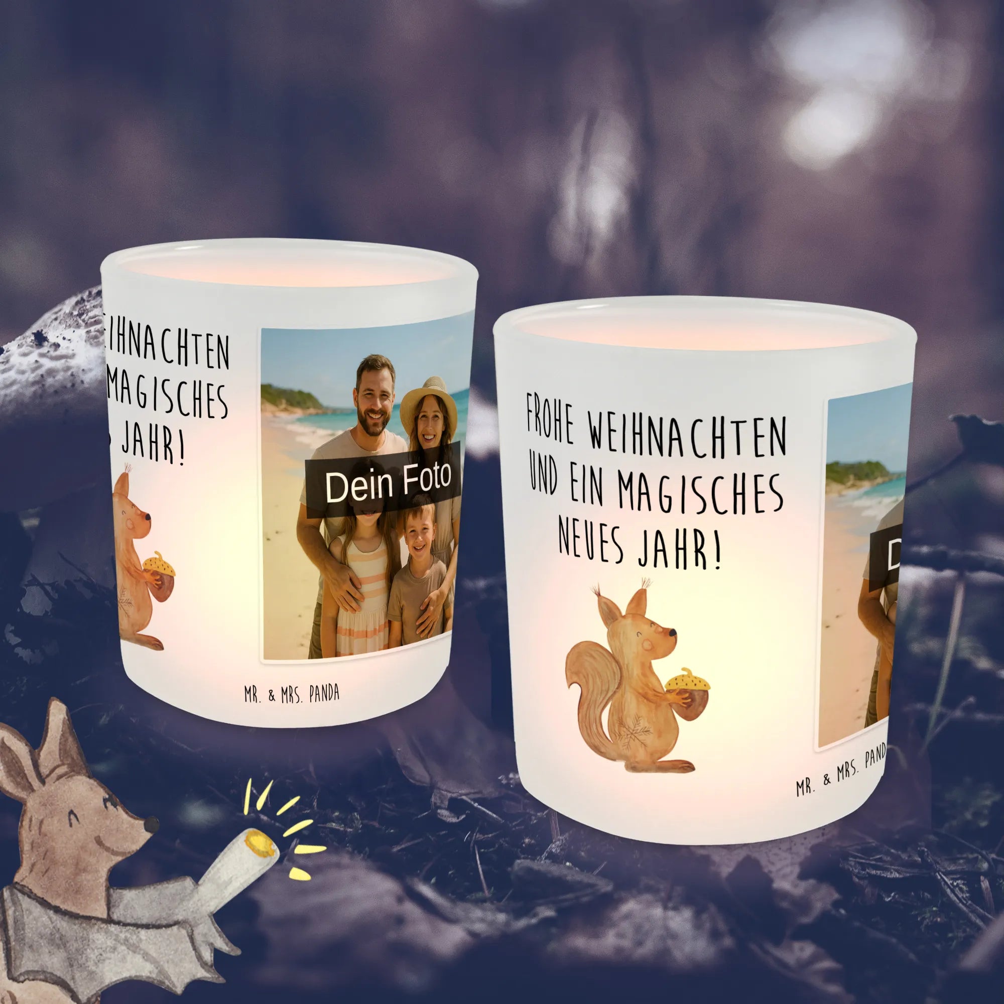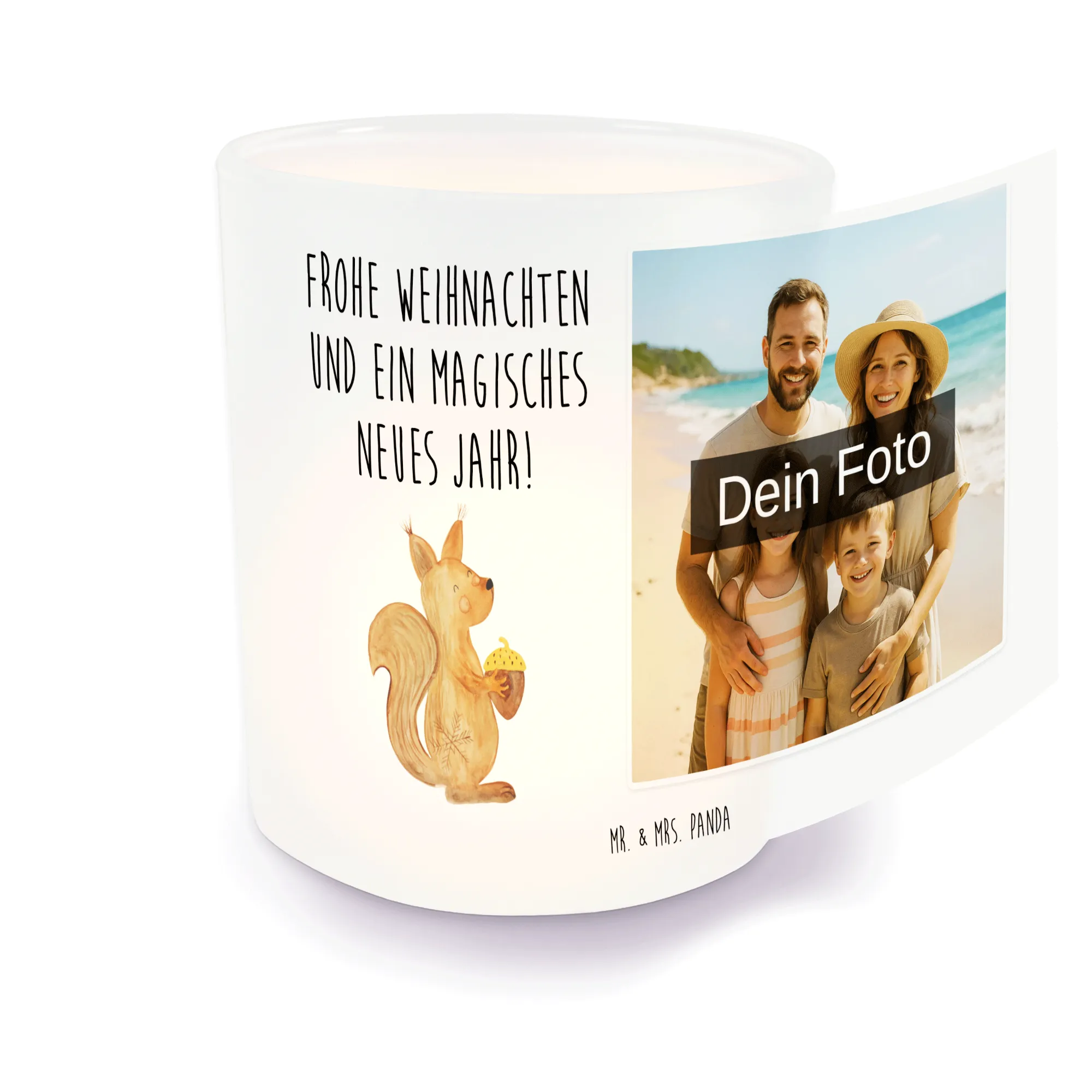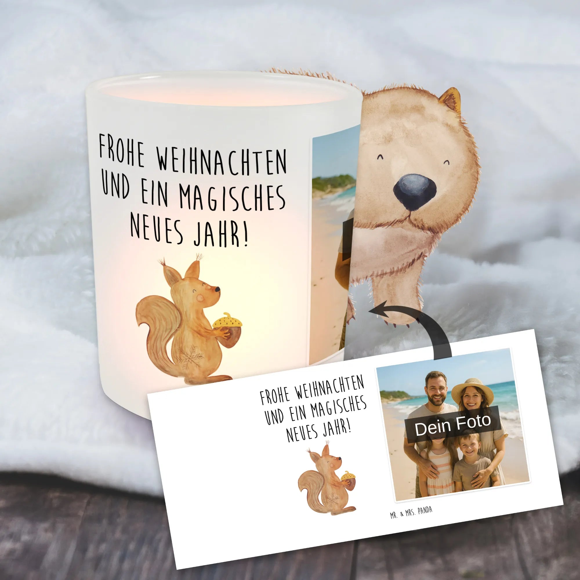 Spersonalizowany świecznik ze zdjęciem wiewiórka Boże Narodzenie
