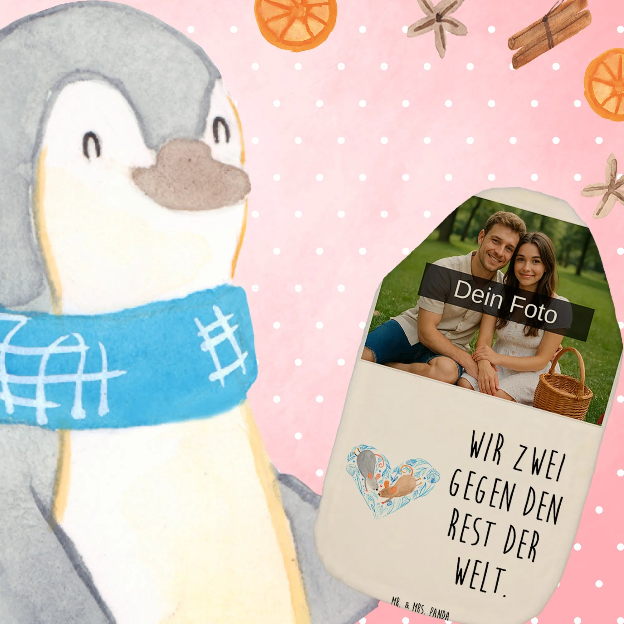 Entdecke die perfekte Art, Deine Liebe zu zeigen mit unserer personalisierten Foto Wärmflasche von Mr. & Mrs. Panda! Diese kuschelige Wärmflasche sorgt nicht nur für Stunden der wohligen Wärme, sondern macht auch mit ihrem niedlichen Mäuse Herz-Motiv eine ganz besondere Liebesbotschaft.