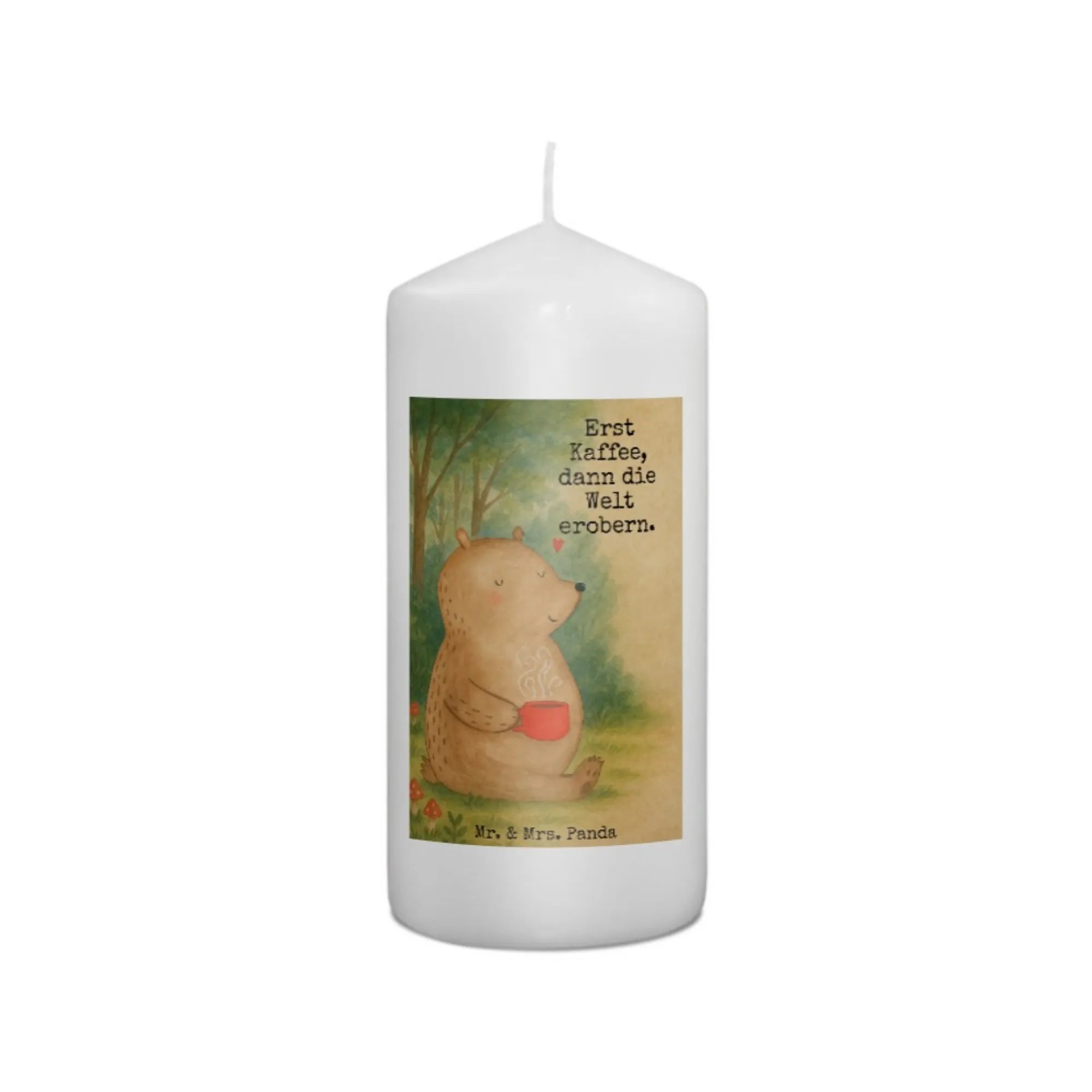 Kerze Bär Kaffee Design - 15 x 7 cm - mit Spruch