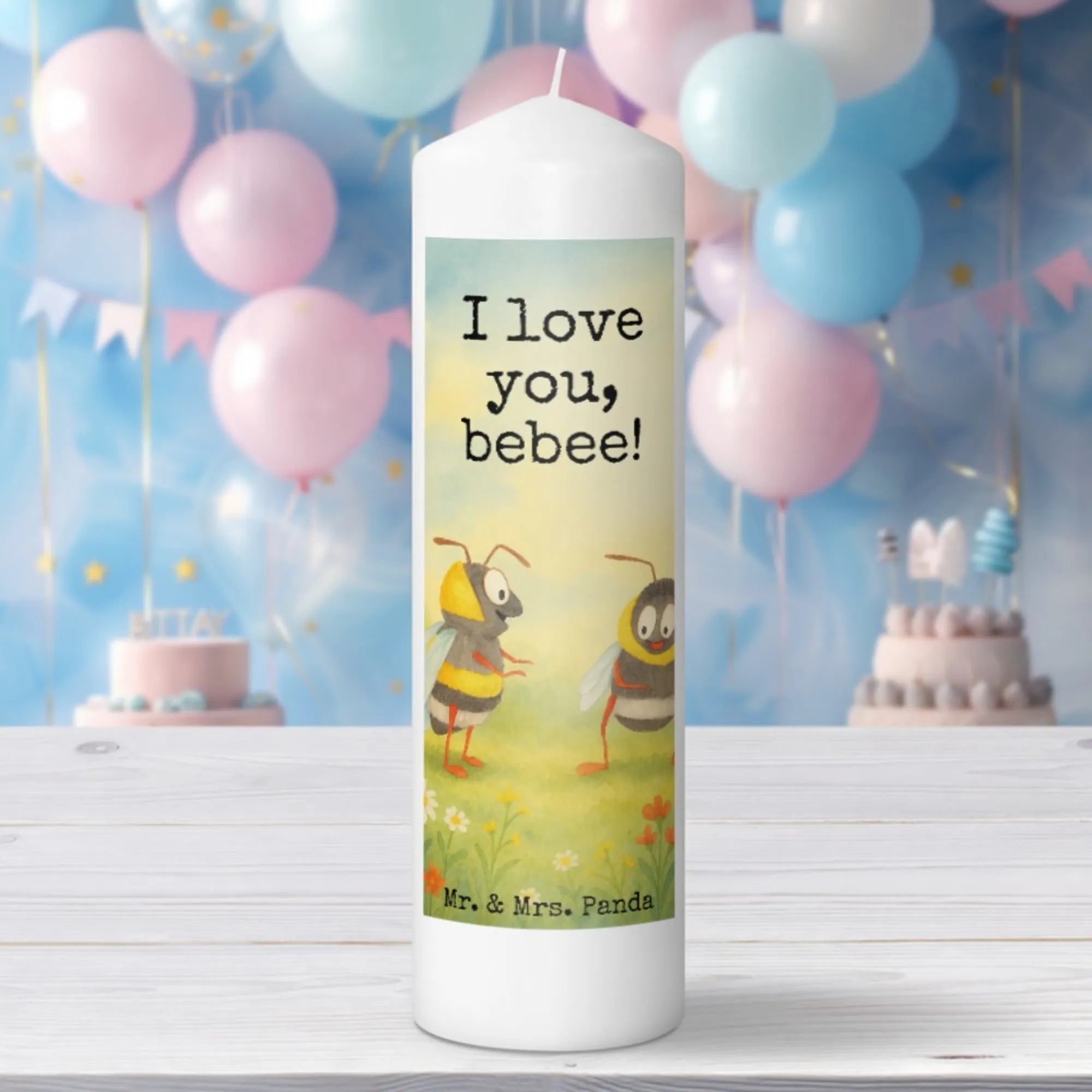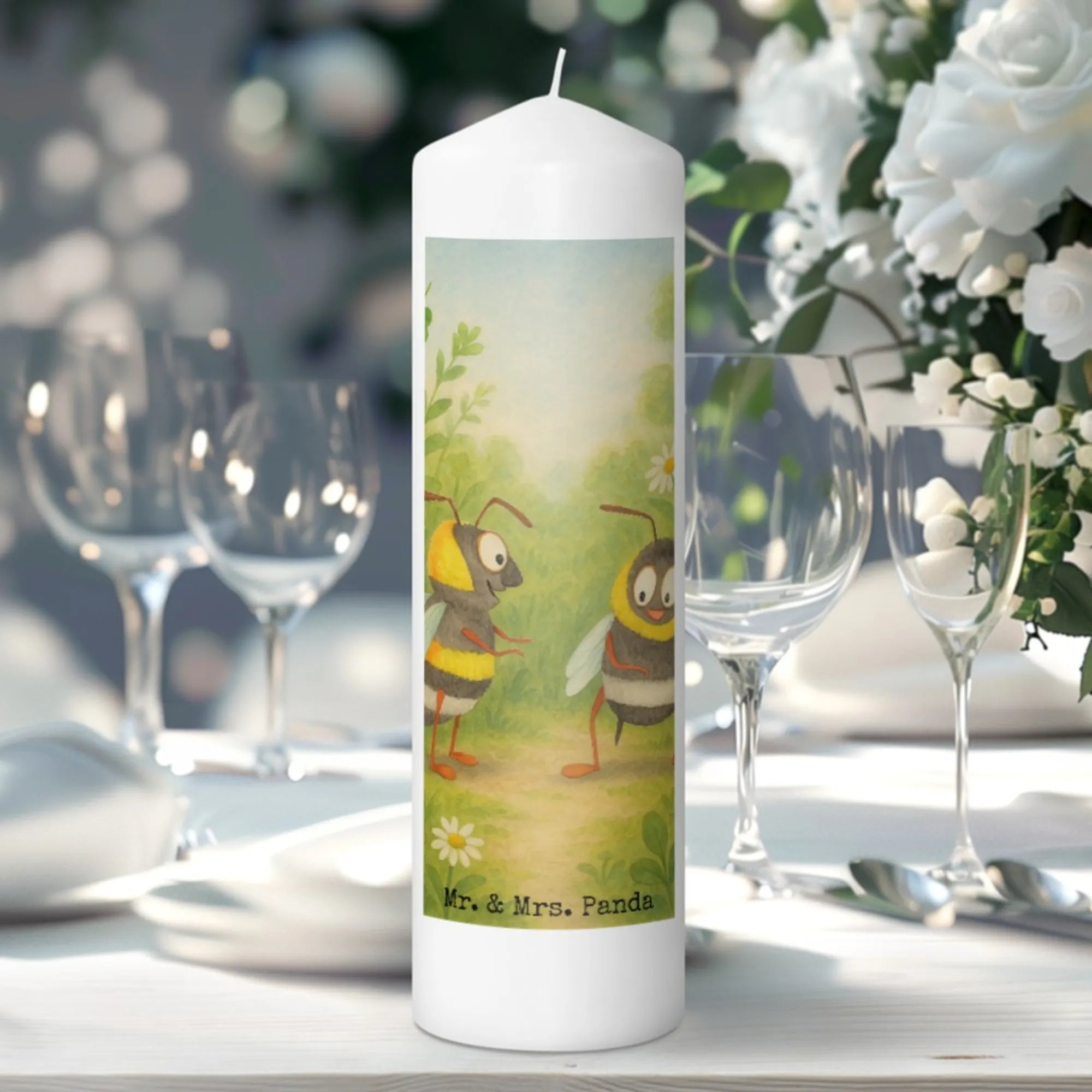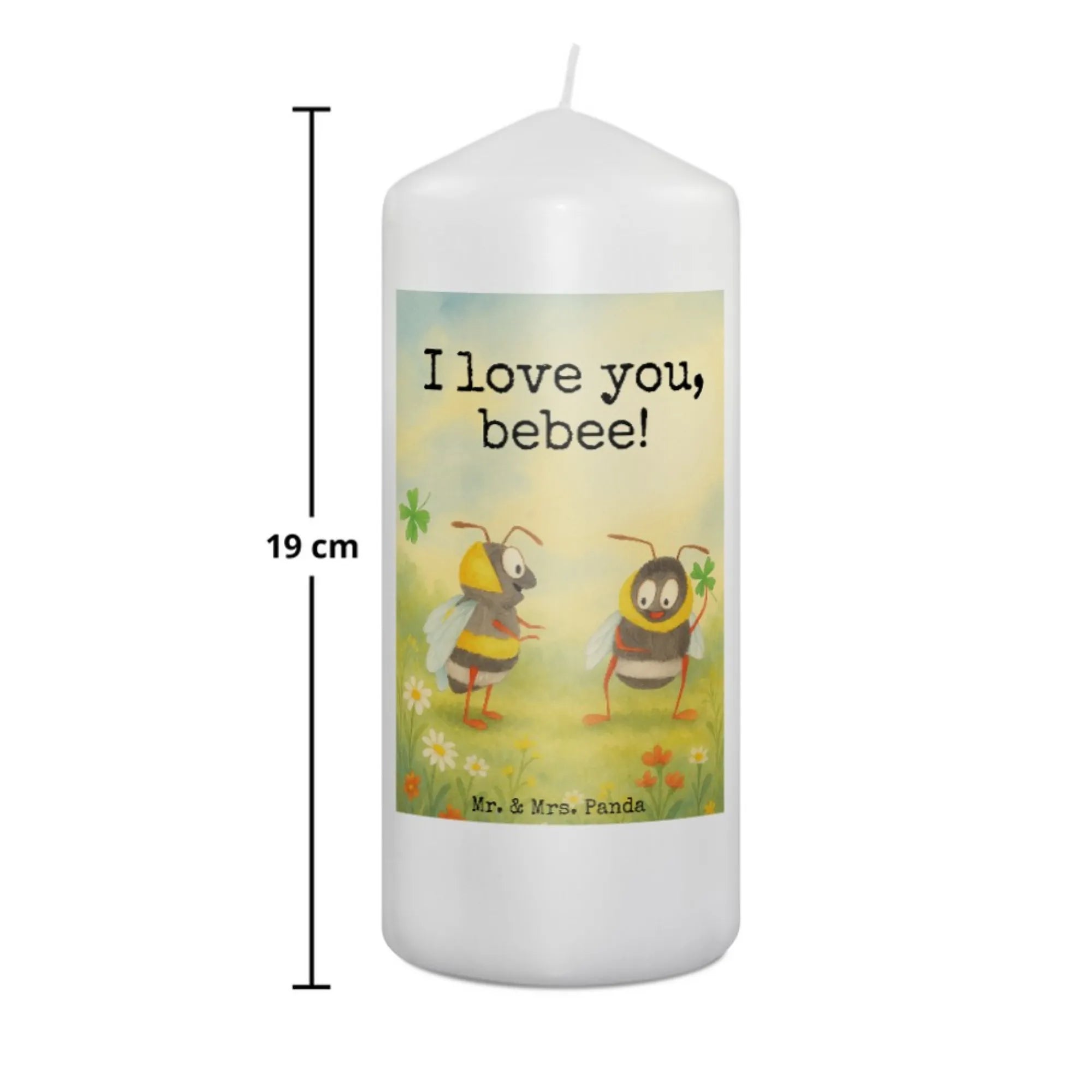 Kerze Bienen Paar Design - 19 x 8 cm - mit Spruch