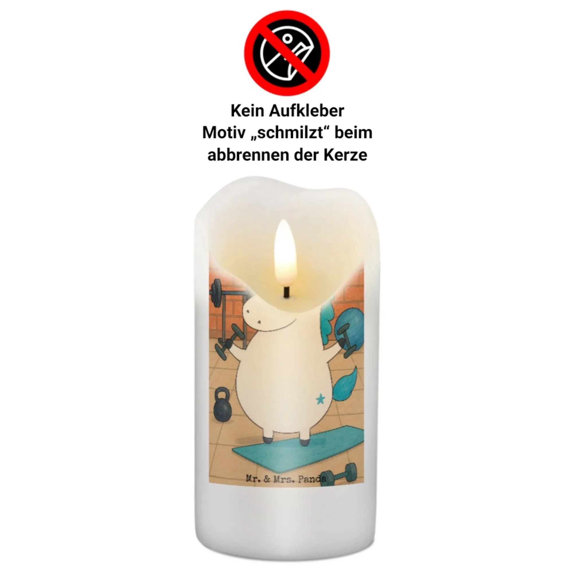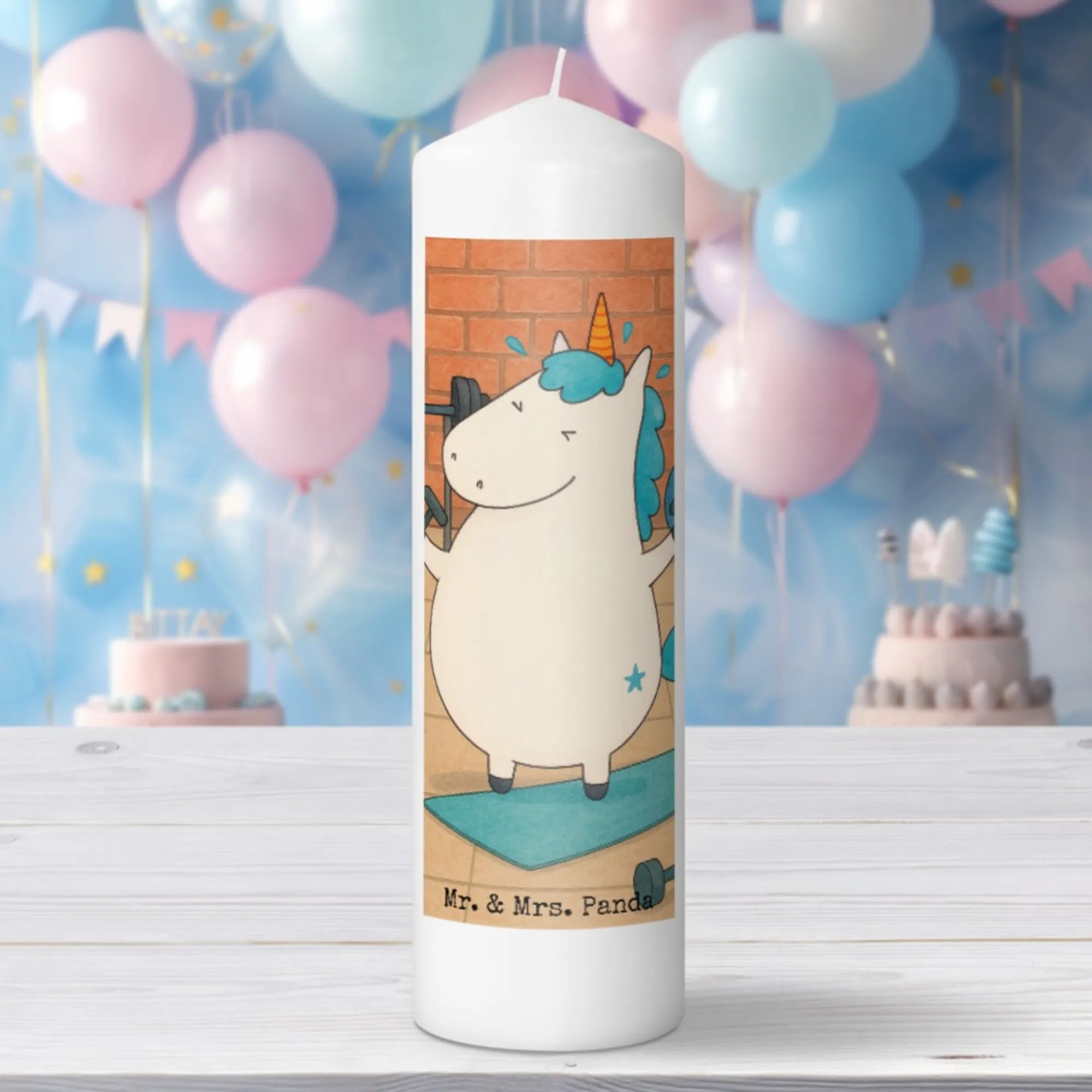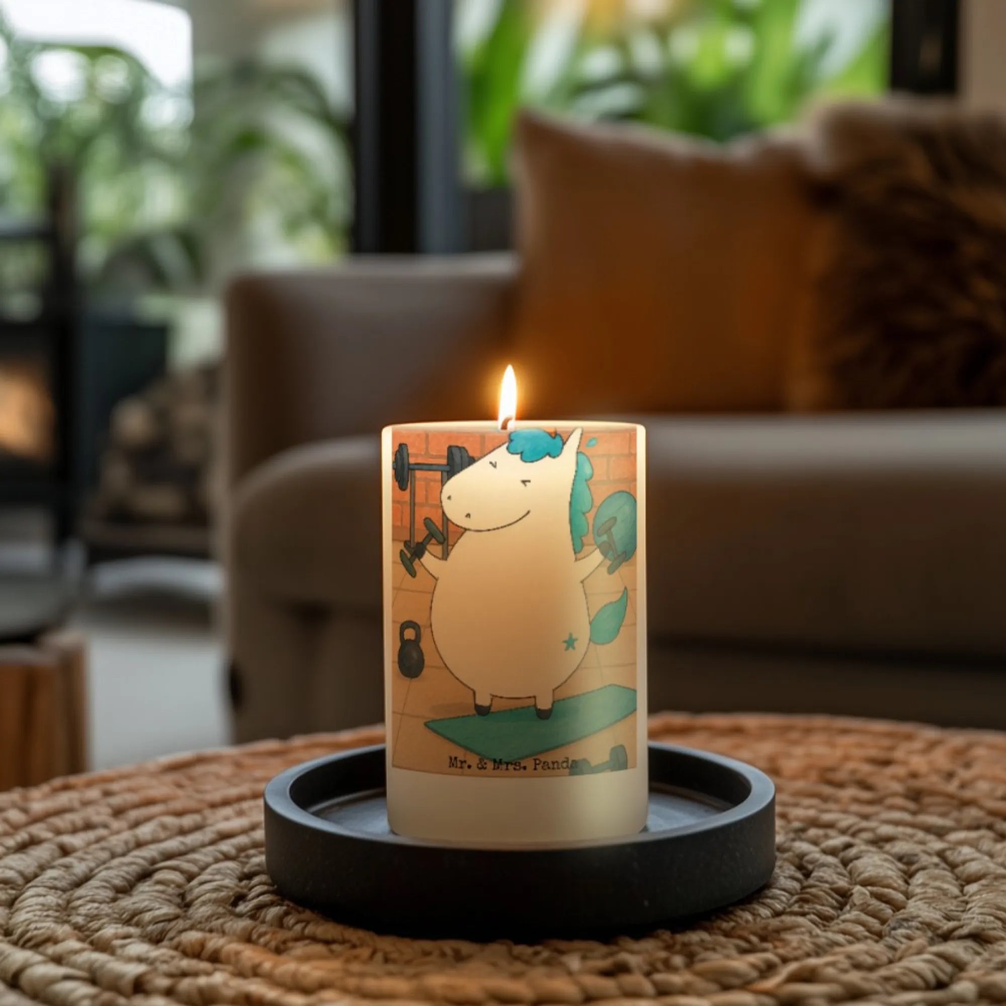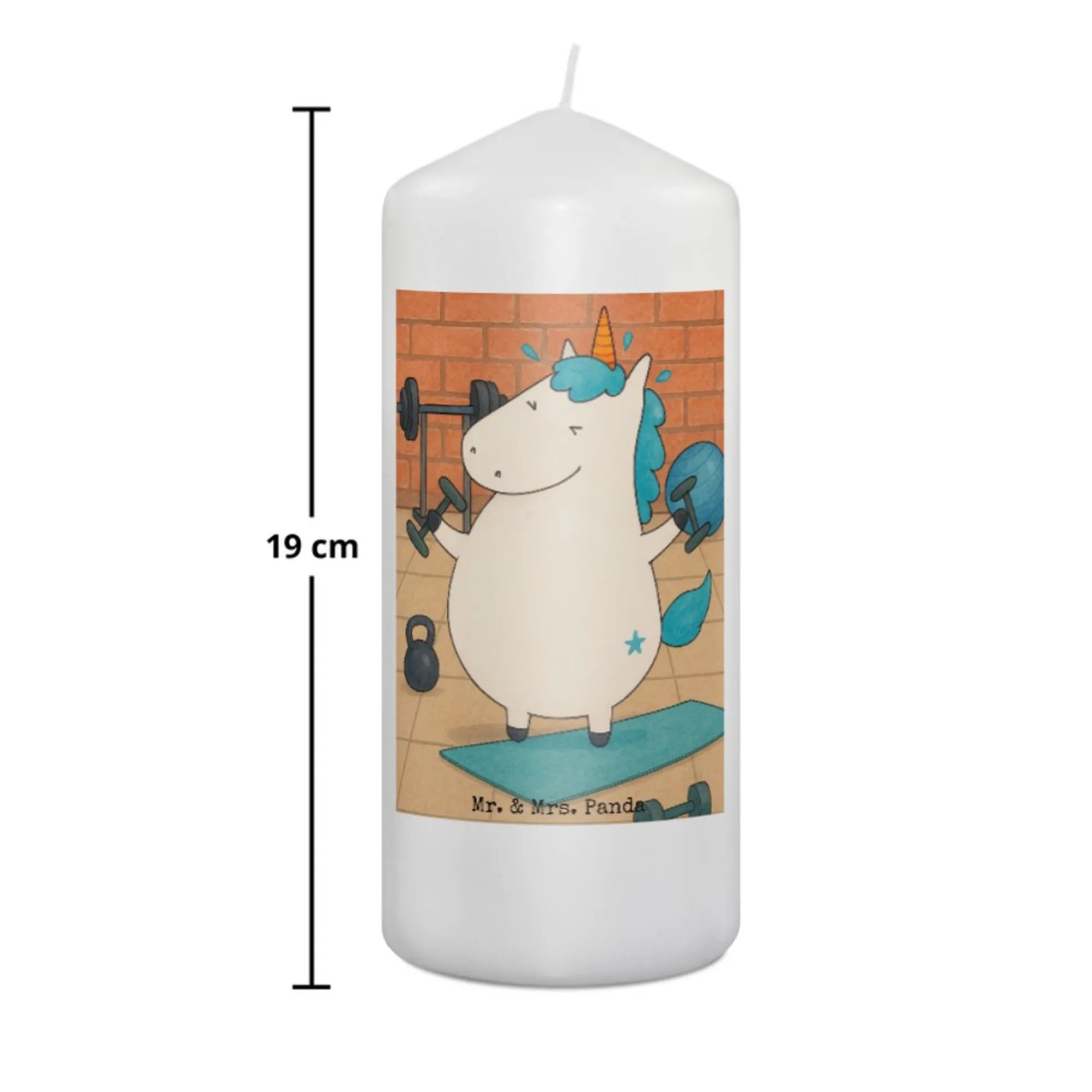 Kerze Einhorn Fitness Design - 15 x 7 cm - mit Spruch