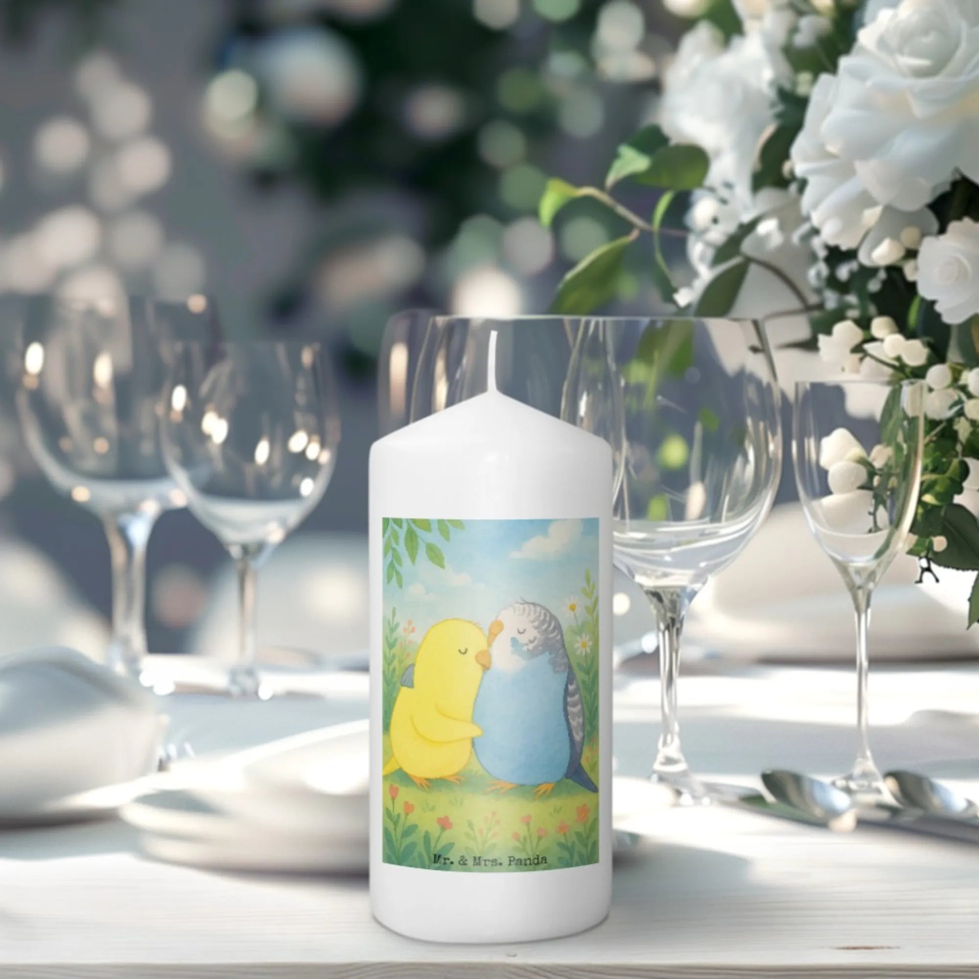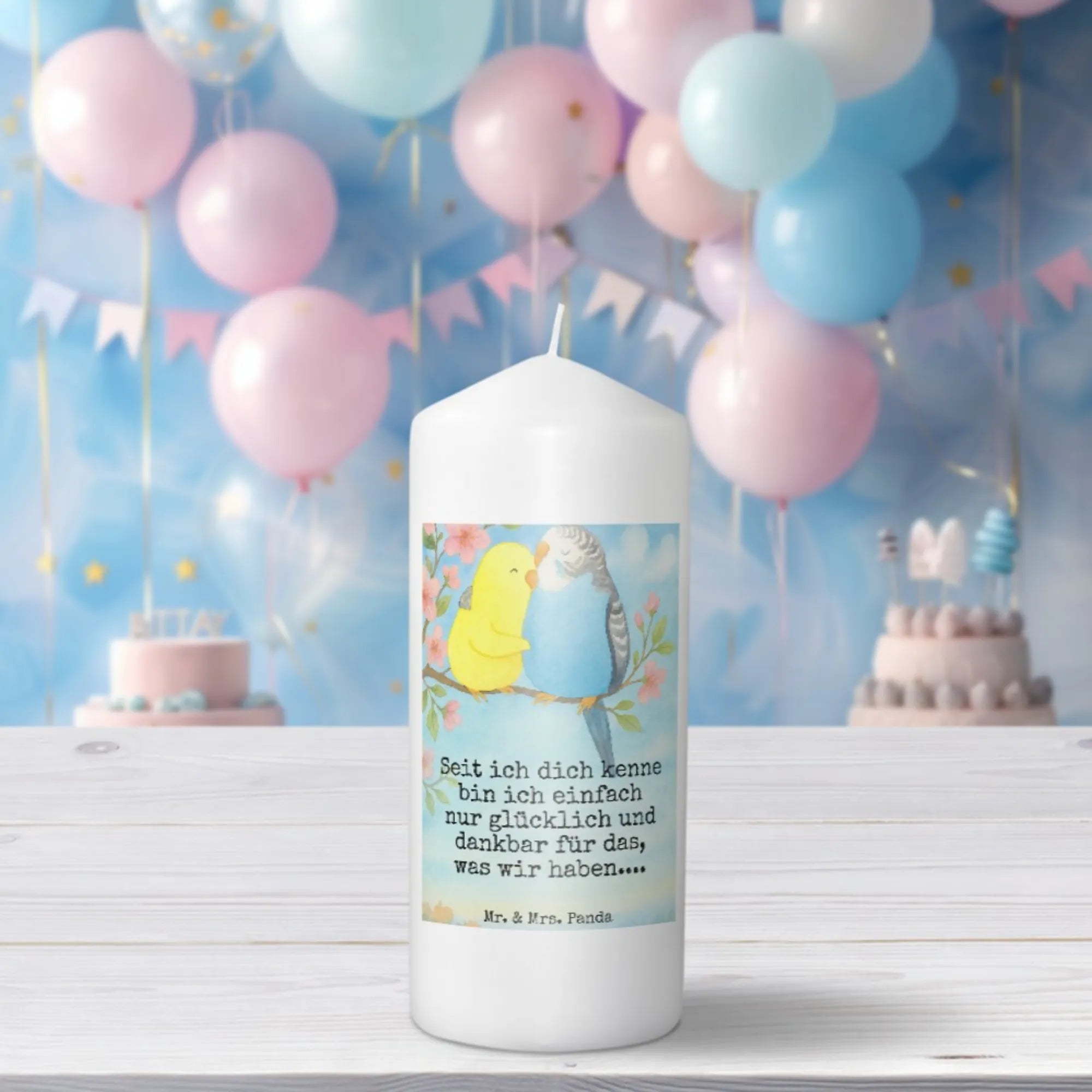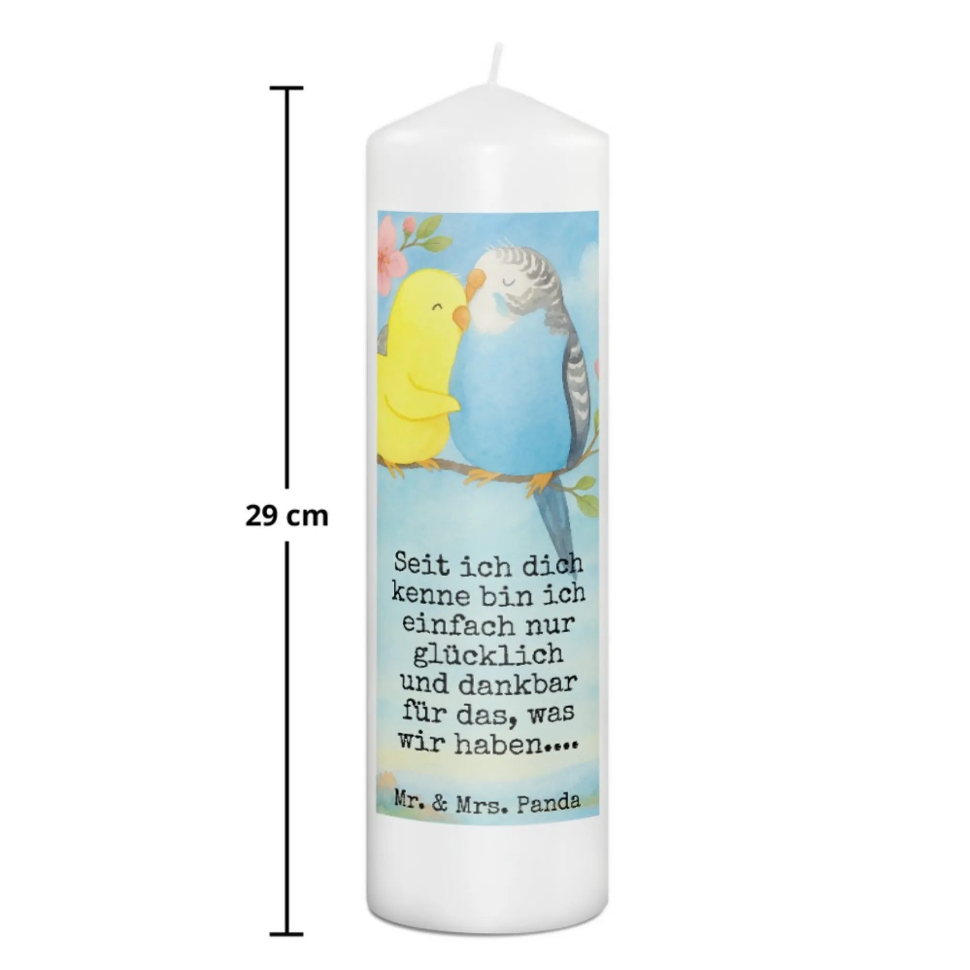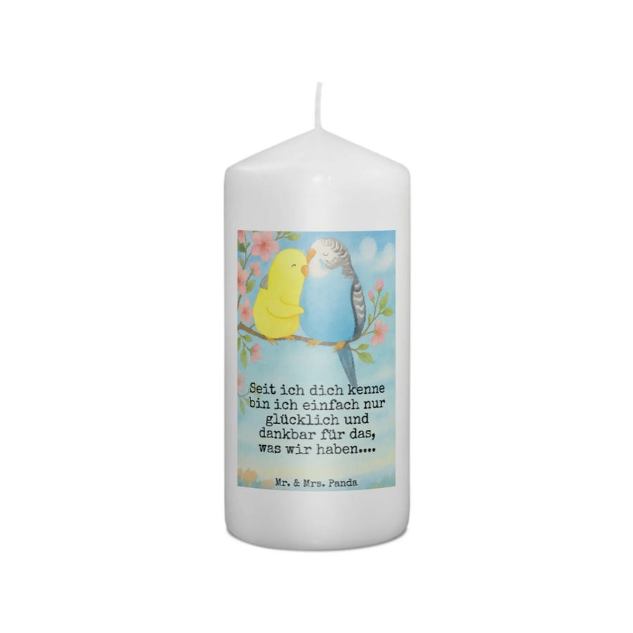 Kerze Wellensittich Liebe Design - 15 x 7 cm - mit Spruch