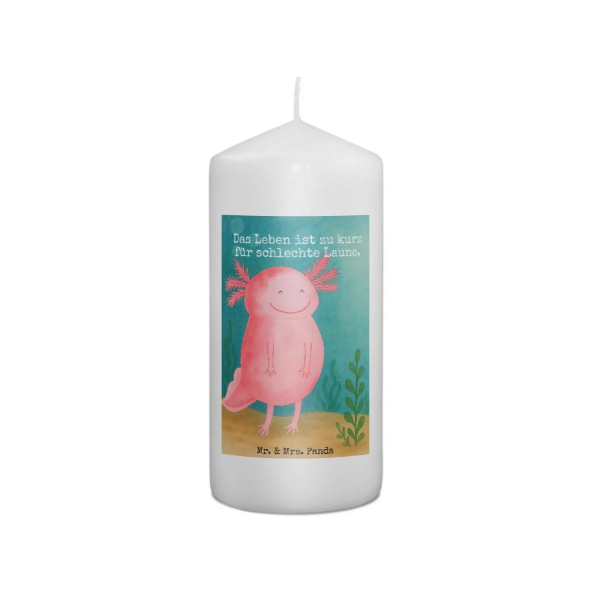 świeca Aksolotl Szczęśliwy Design - 15 x 7 cm - z napisem