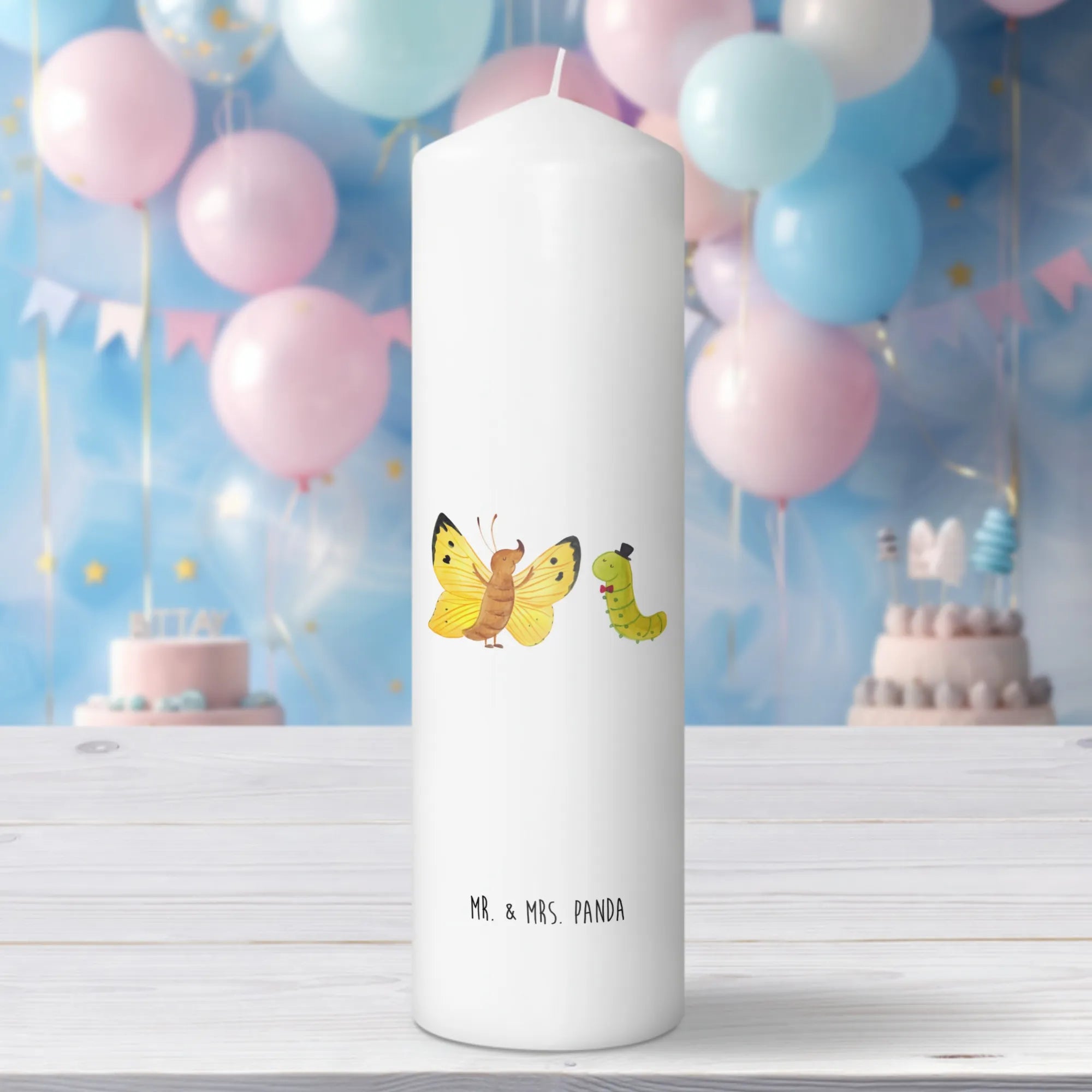 świeca gąsienica motyl - 29 x 8 cm XL - z napisem