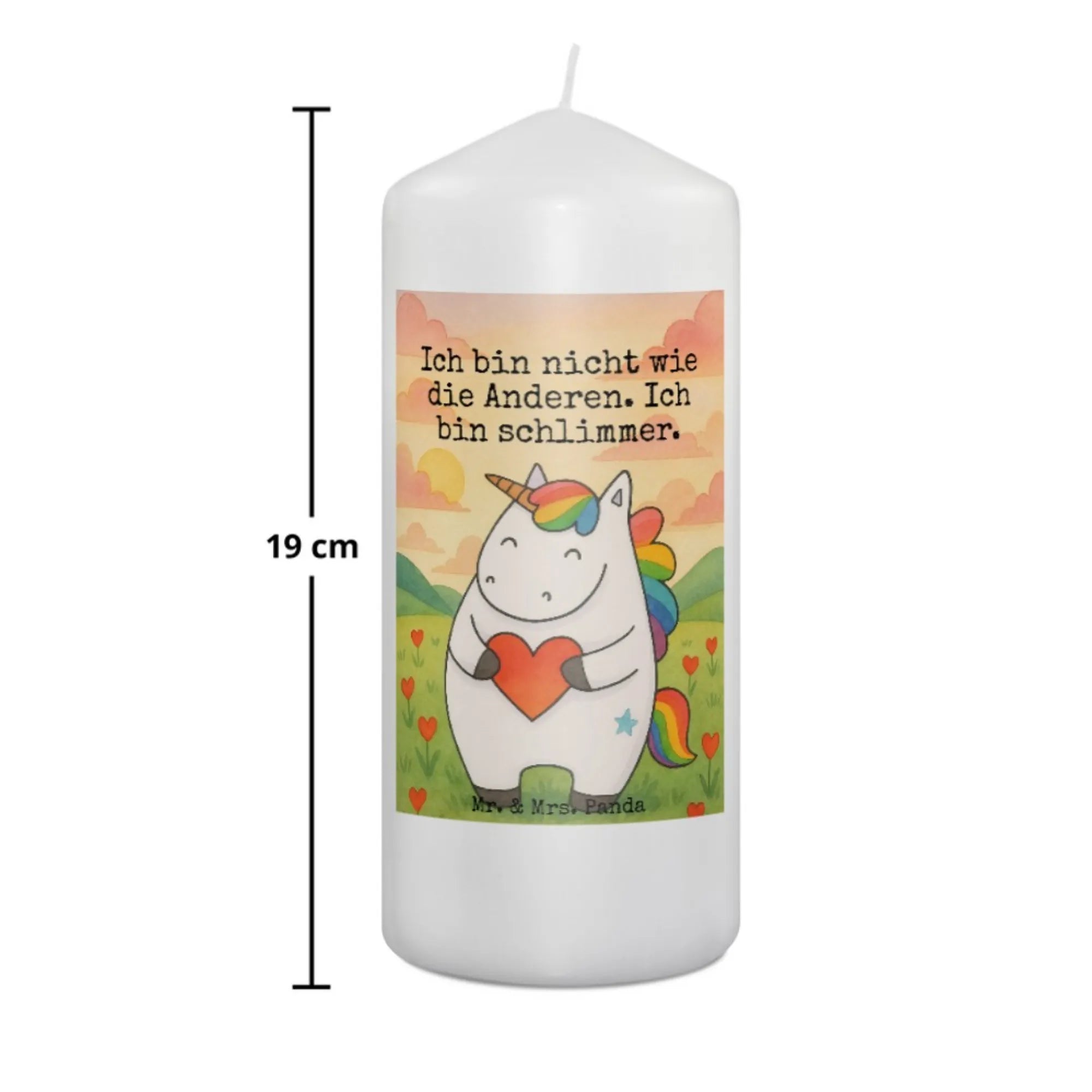 świeca Jednorożec serce Design - 15 x 7 cm - z napisem