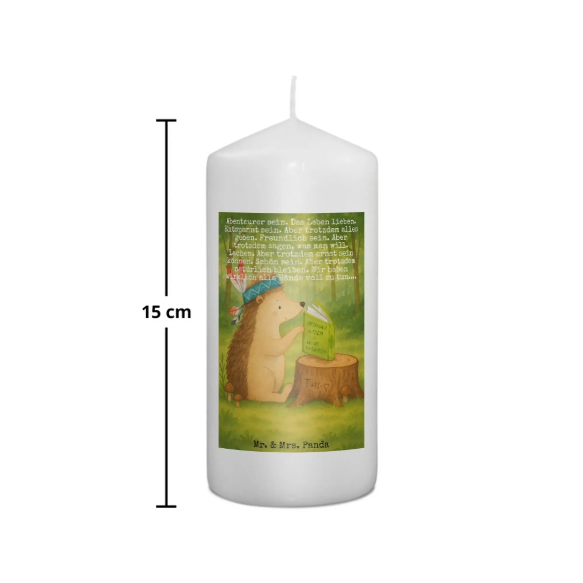 świeca jeż Ozdoba z piór Design - 19 x 8 cm - z napisem