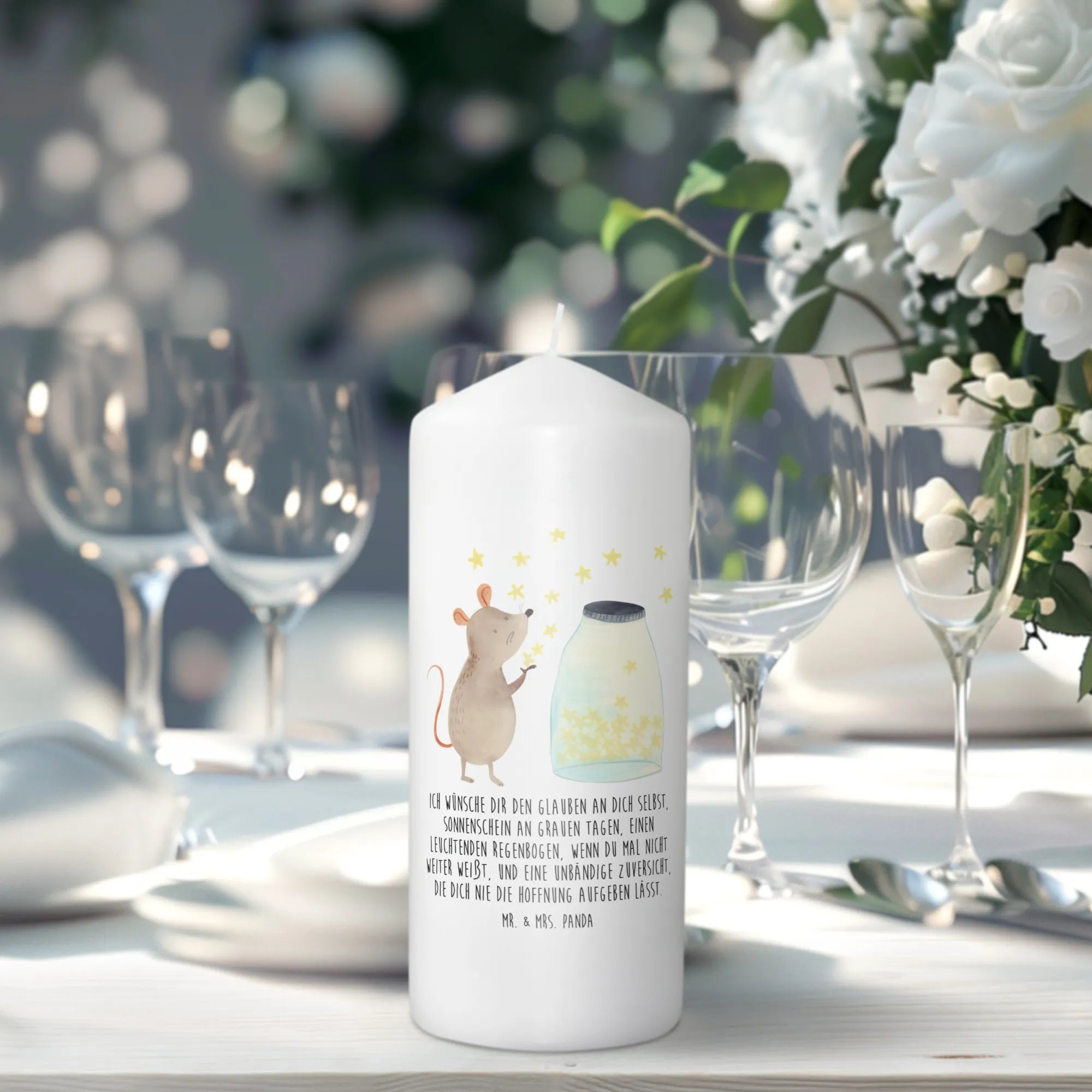 świeca mysz Gwiazdy - 19 x 8 cm - z napisem