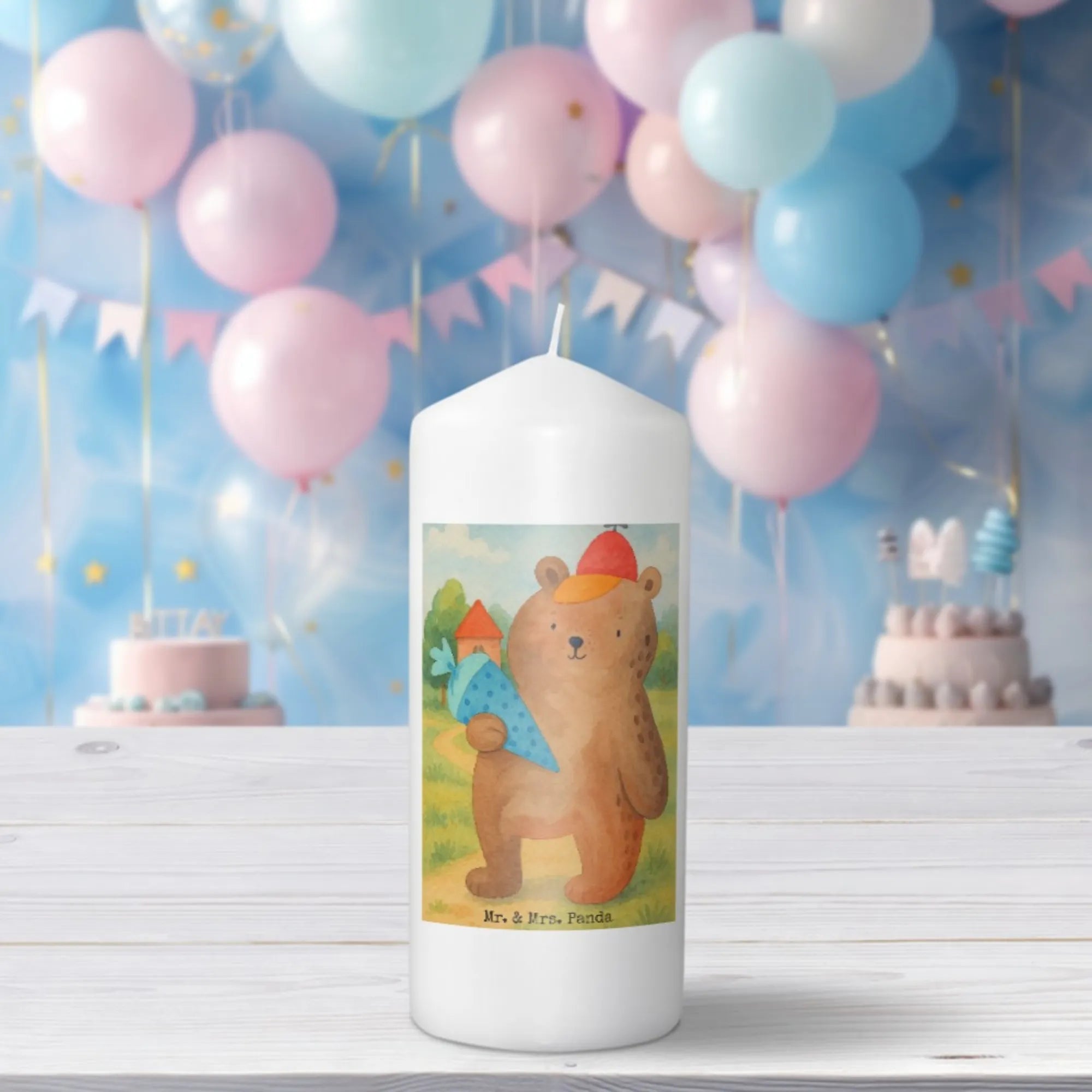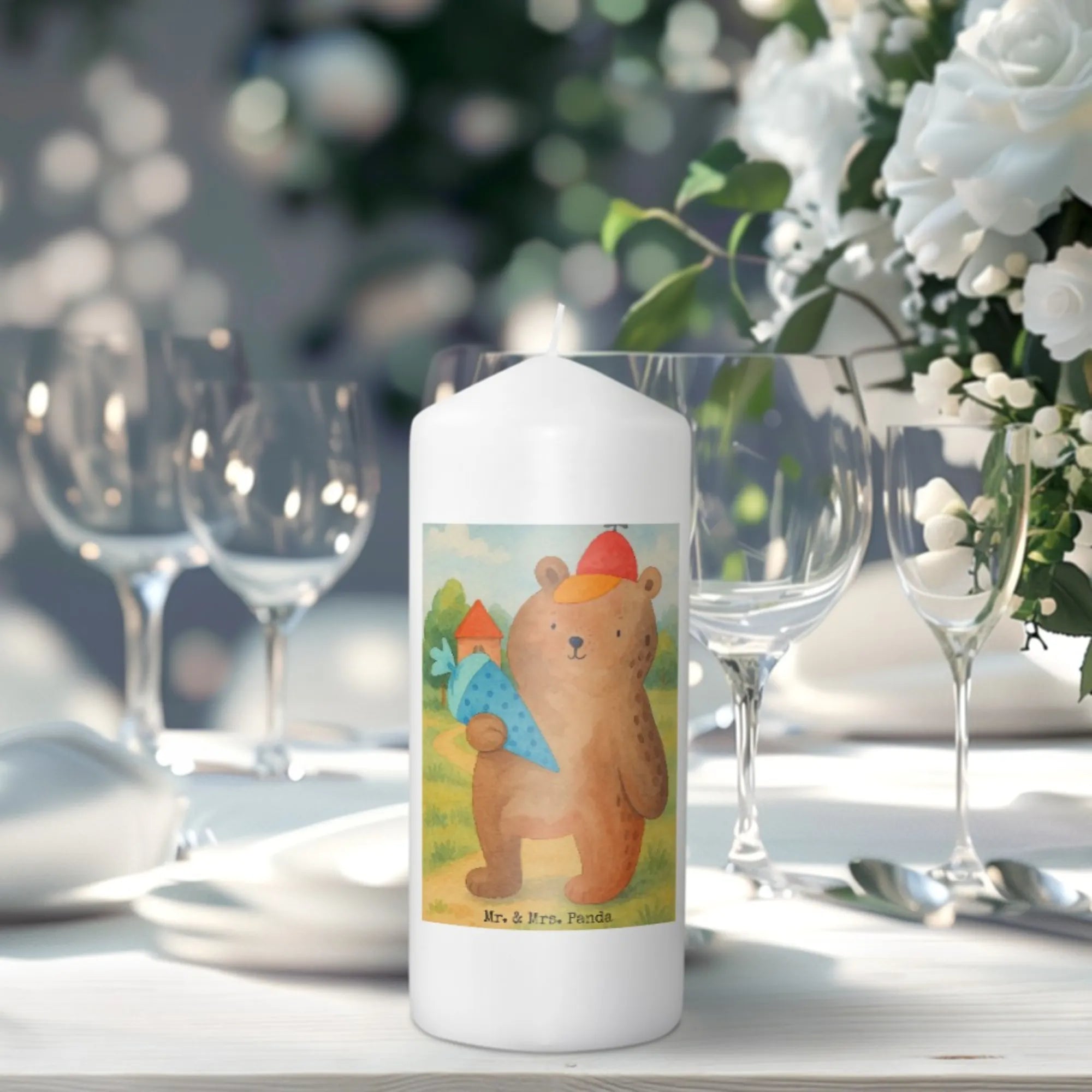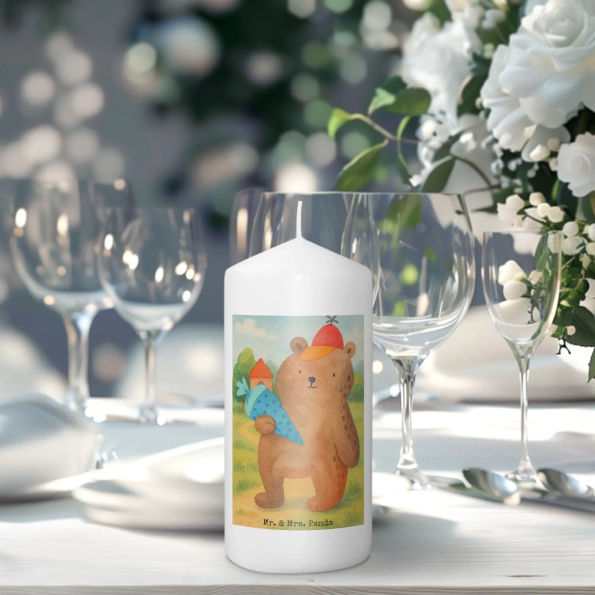 świeca Niedźwiedź Torebka szkolna Design - 15 x 7 cm - z napisem