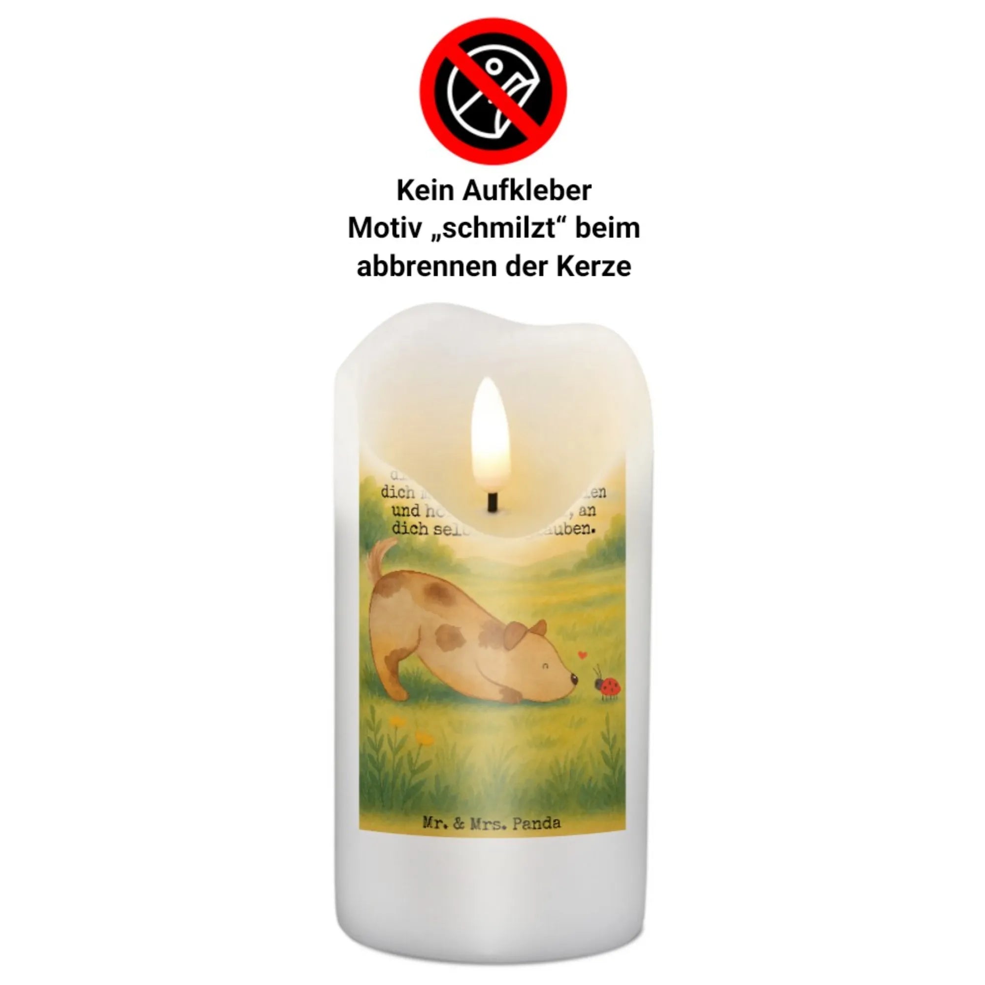 świeca pies biedronka Design - 19 x 8 cm - z napisem