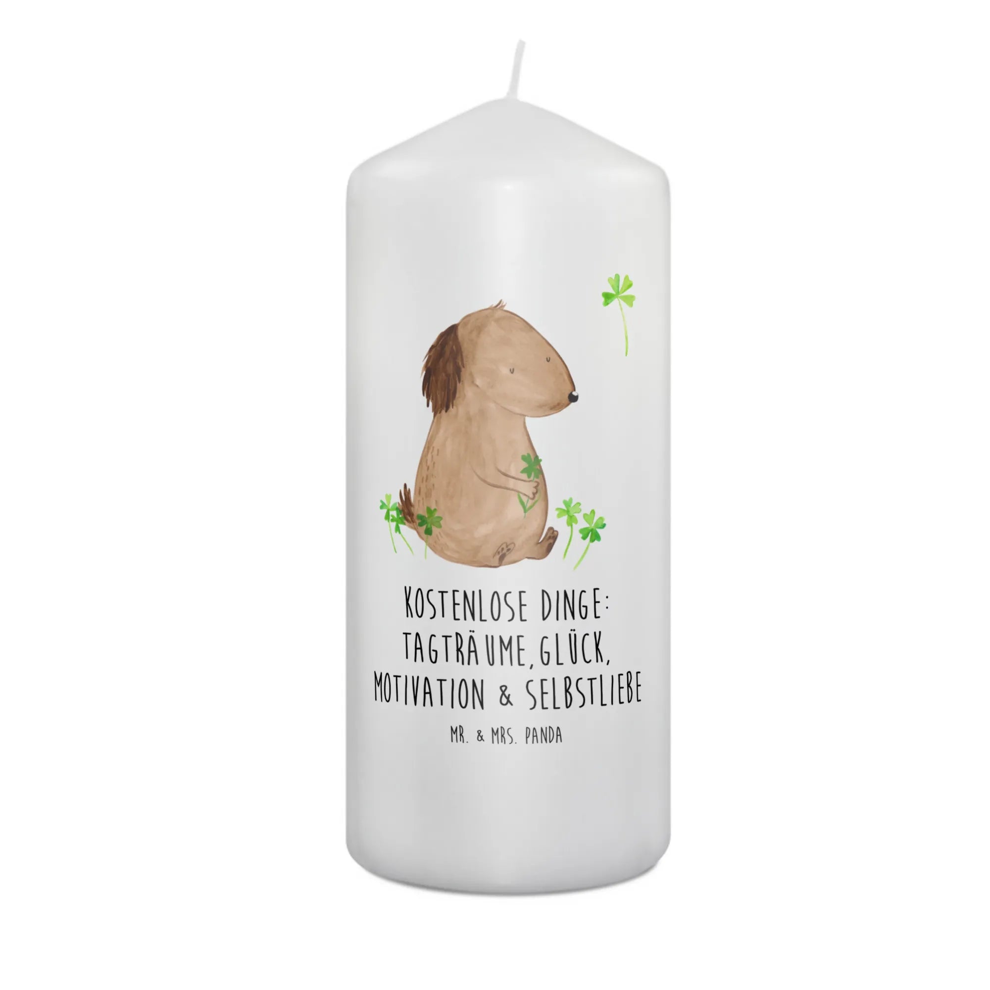 świeca pies koniczyna - 29 x 8 cm XL - z napisem