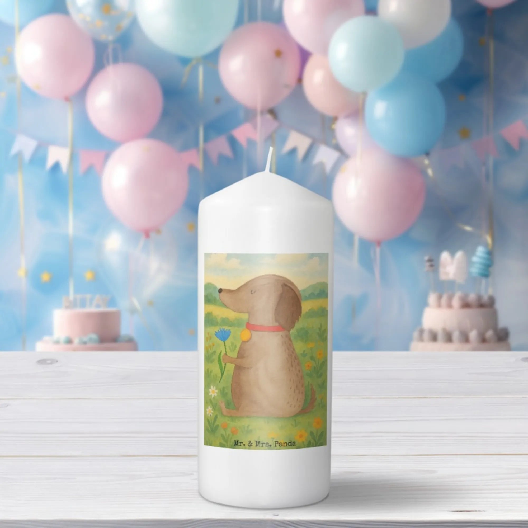 świeca pies kwiat Design - 19 x 8 cm - z napisem