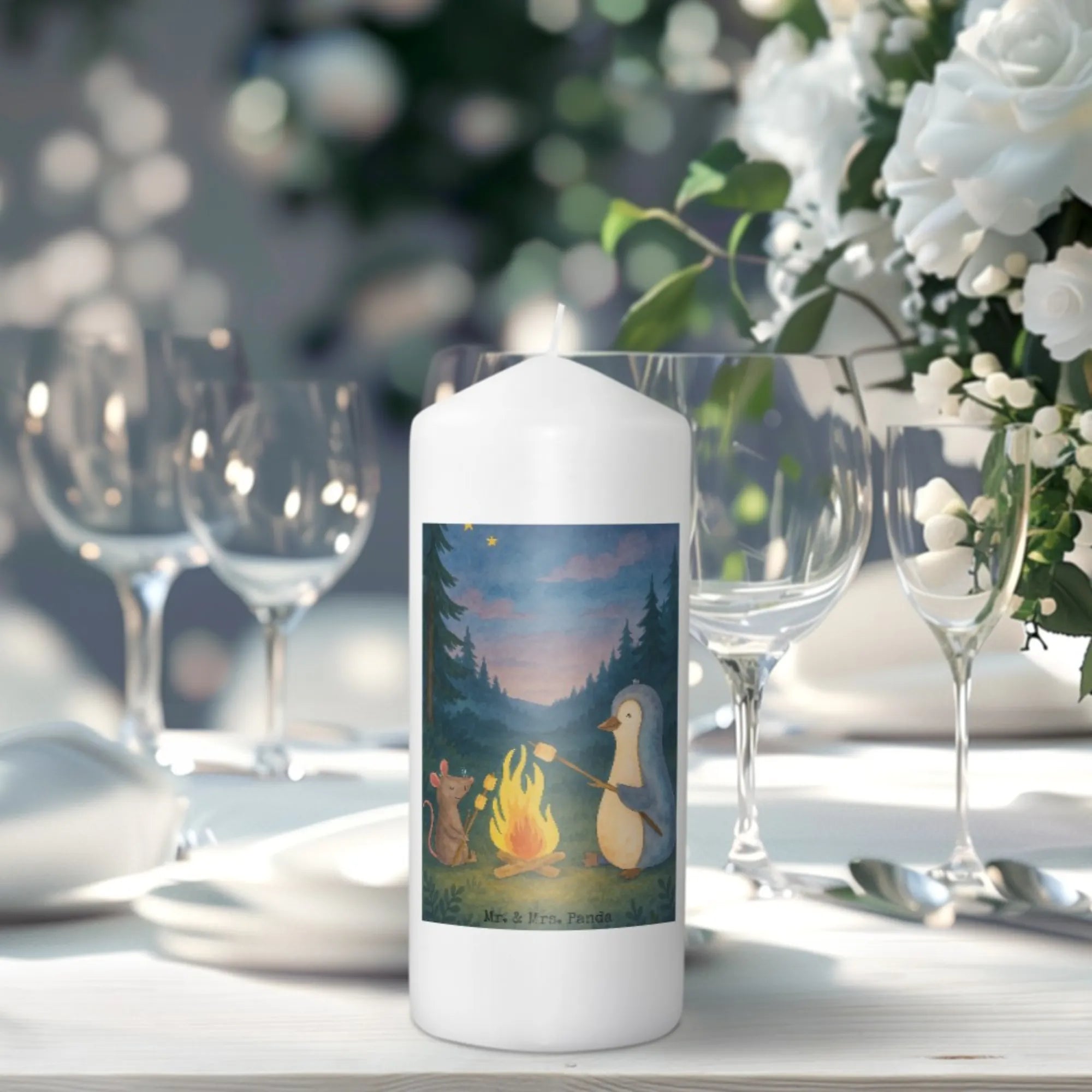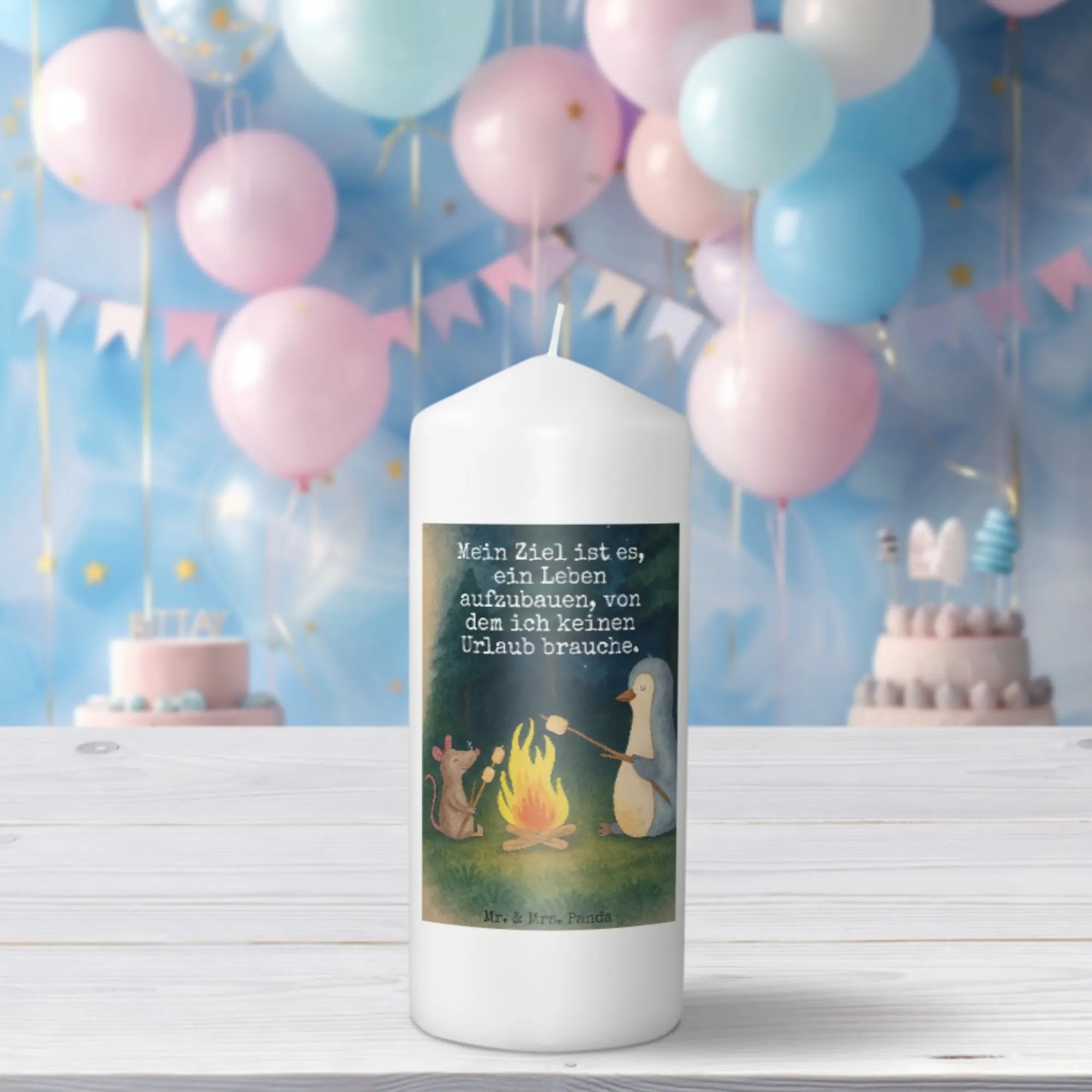 świeca pingwin ognisko Design - 19 x 8 cm - z napisem