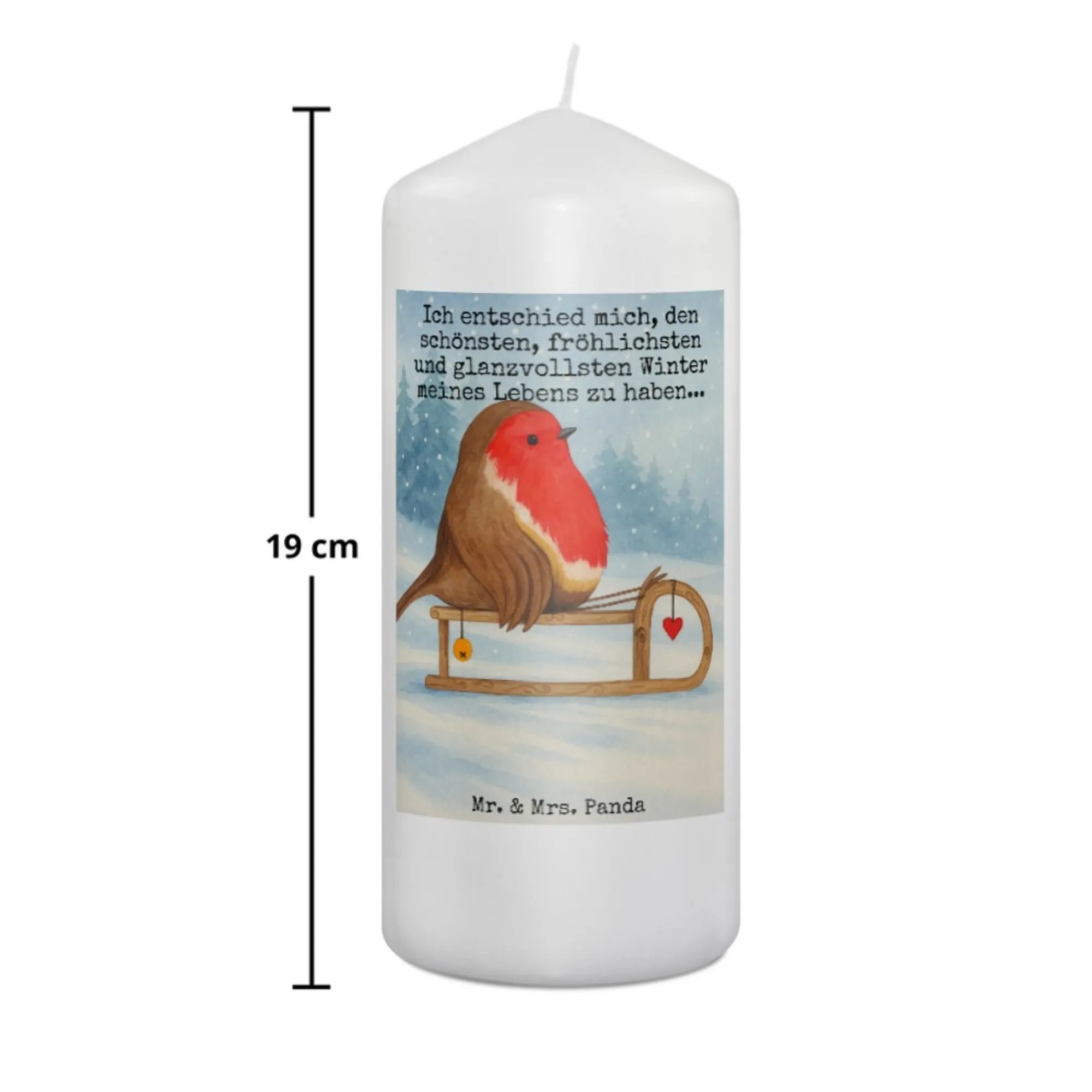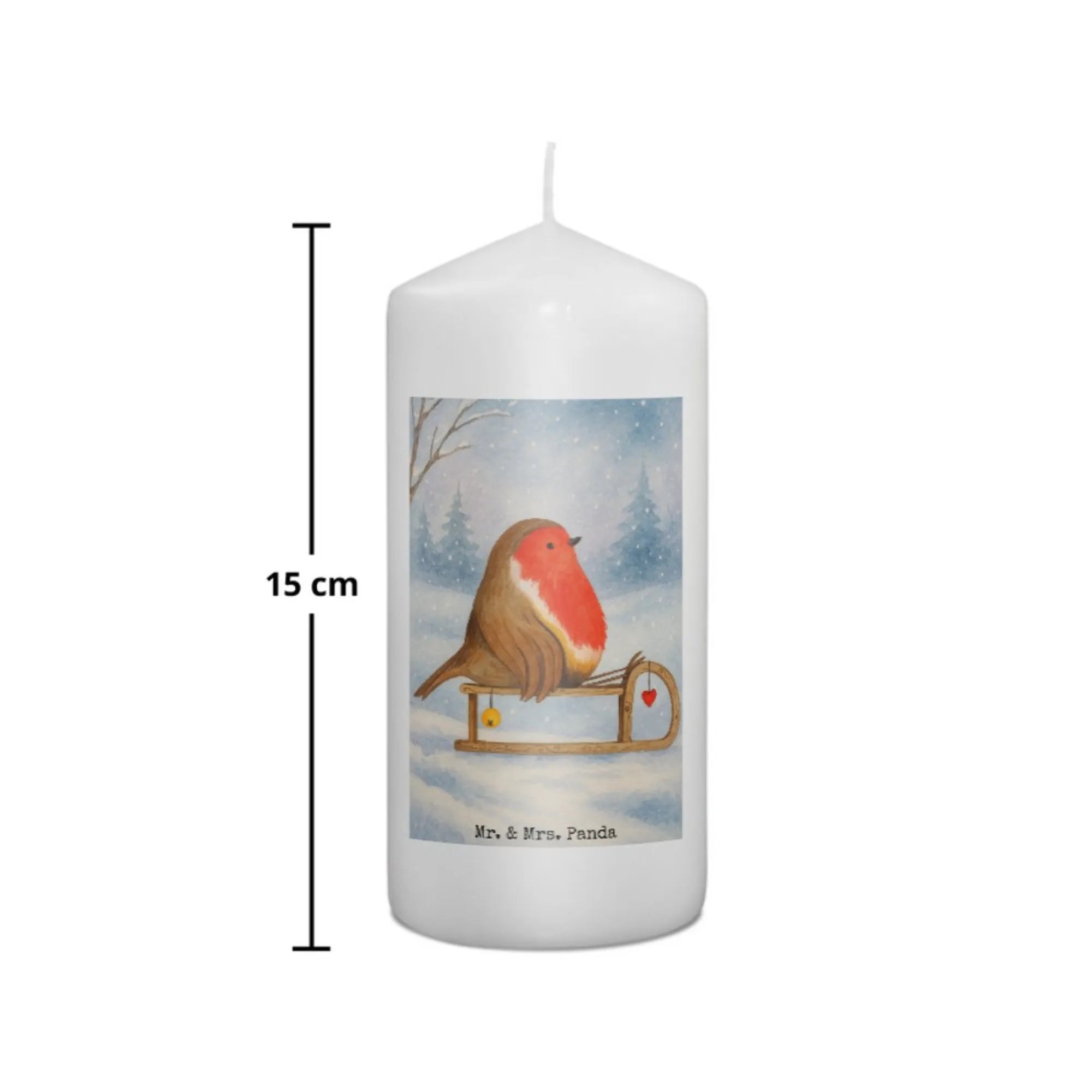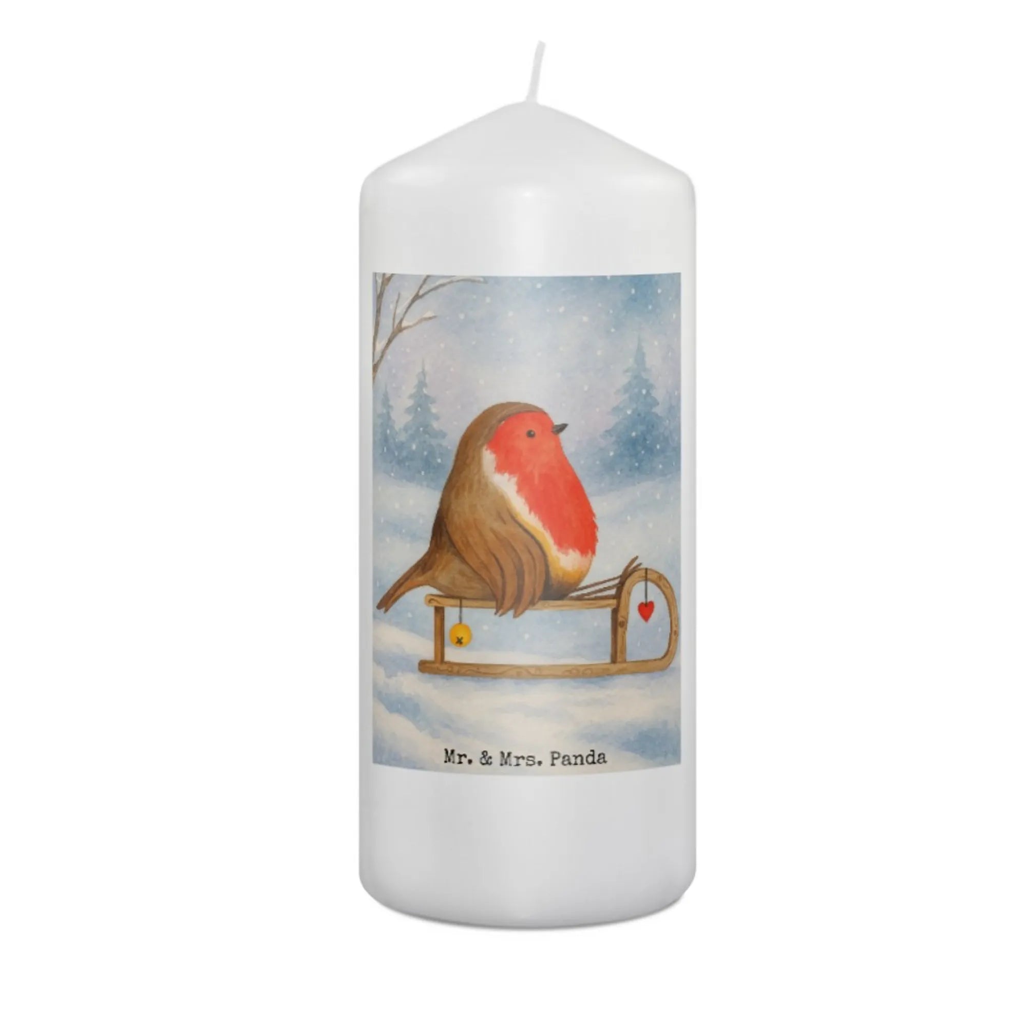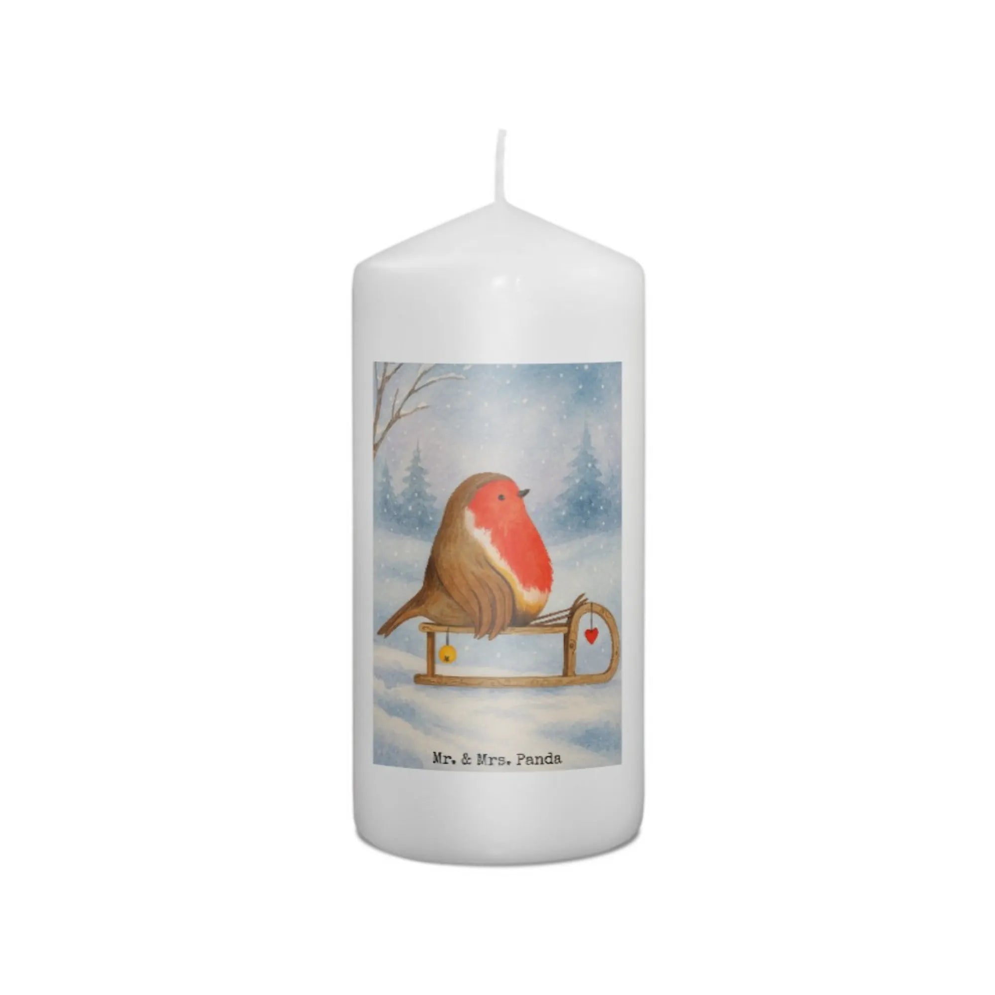 świeca rudzik sanki Design - 19 x 8 cm - z napisem