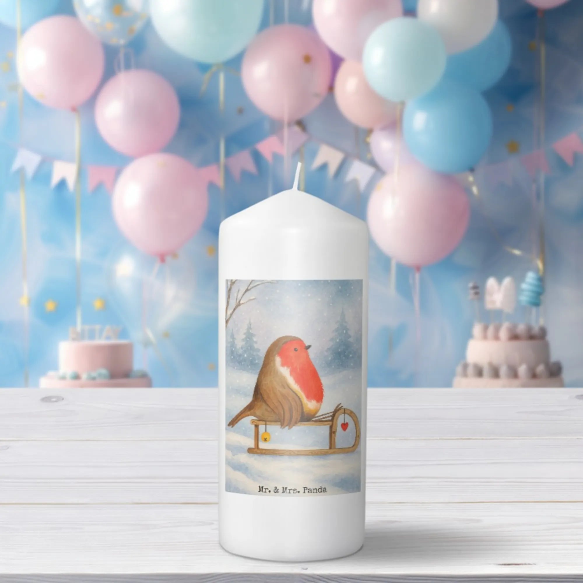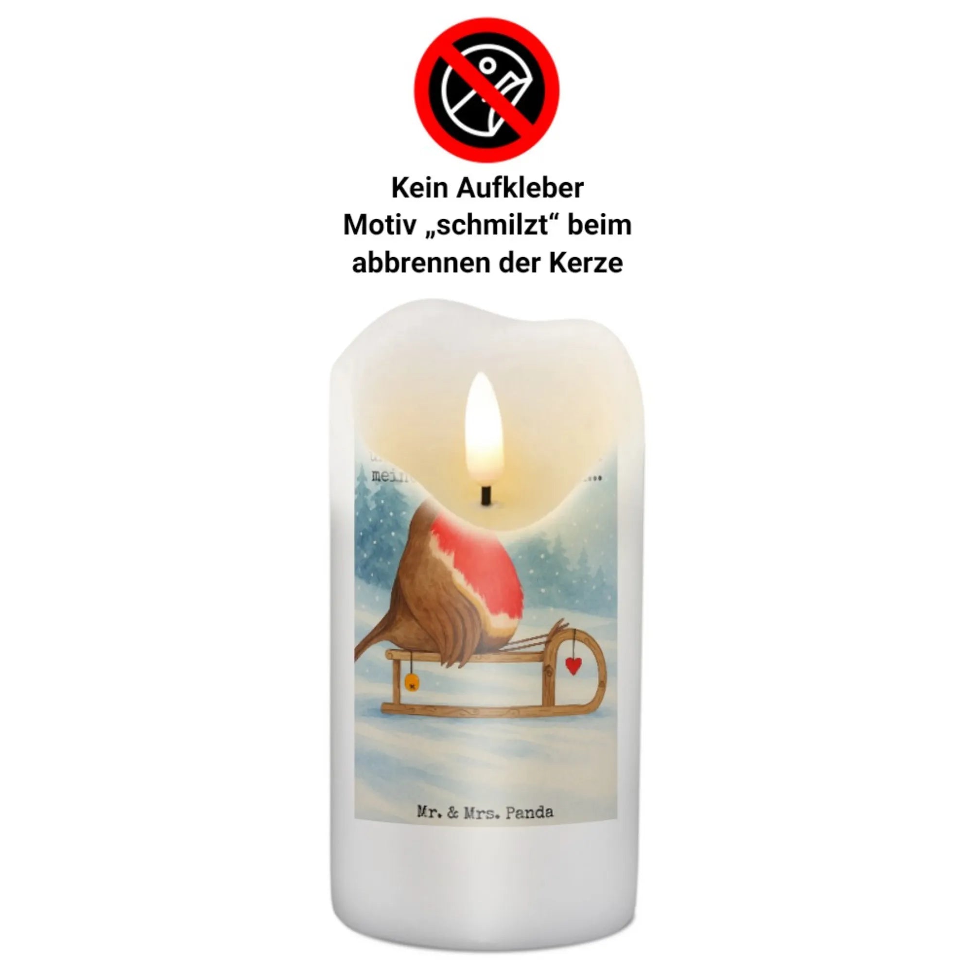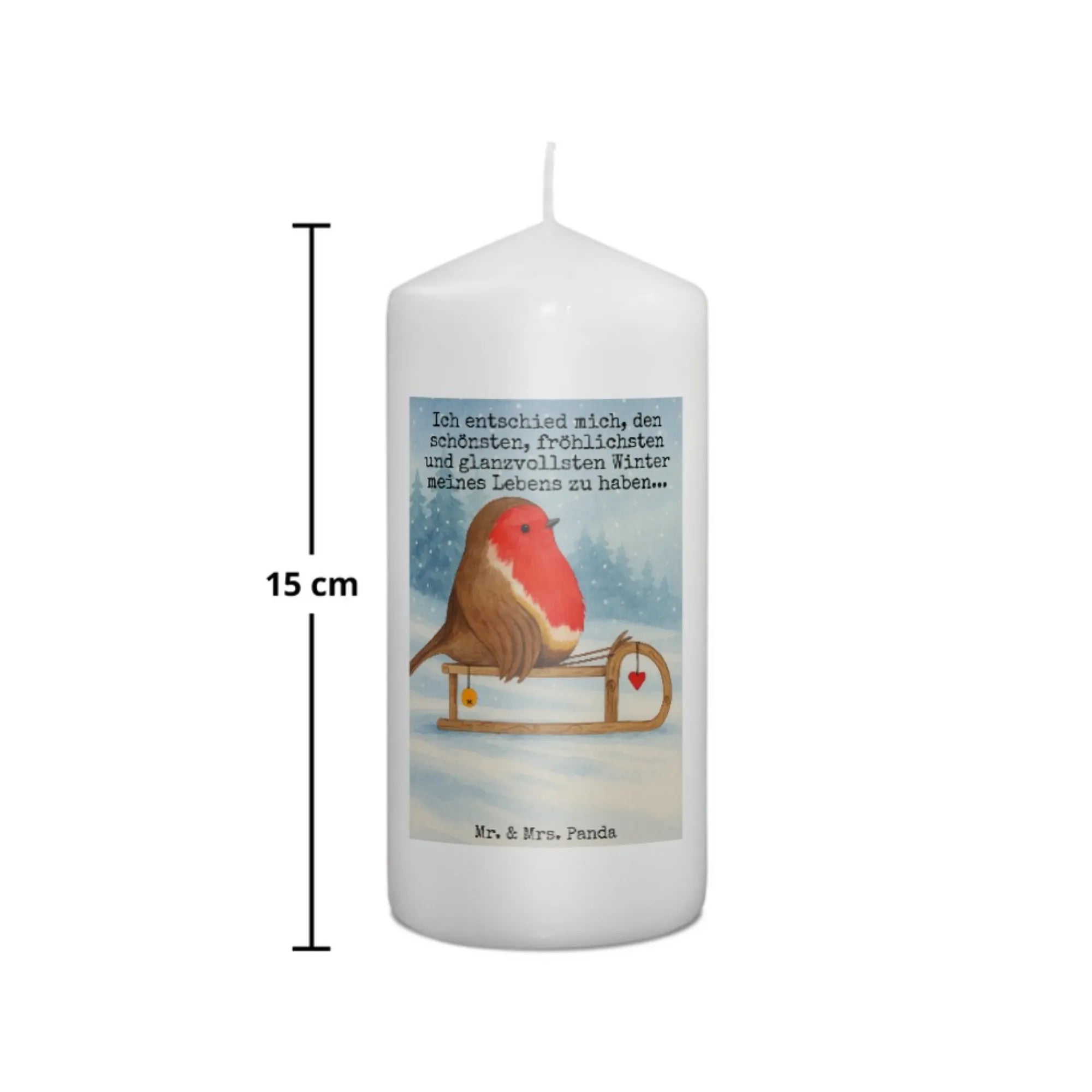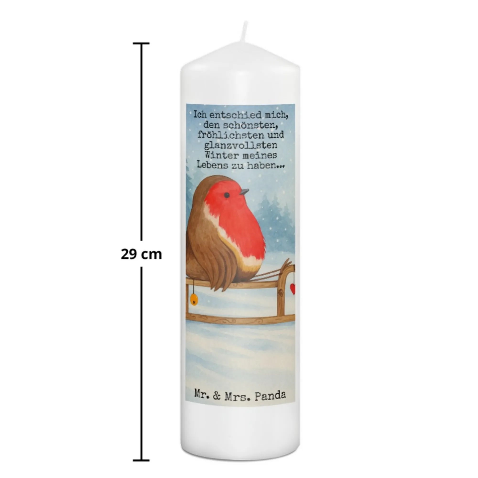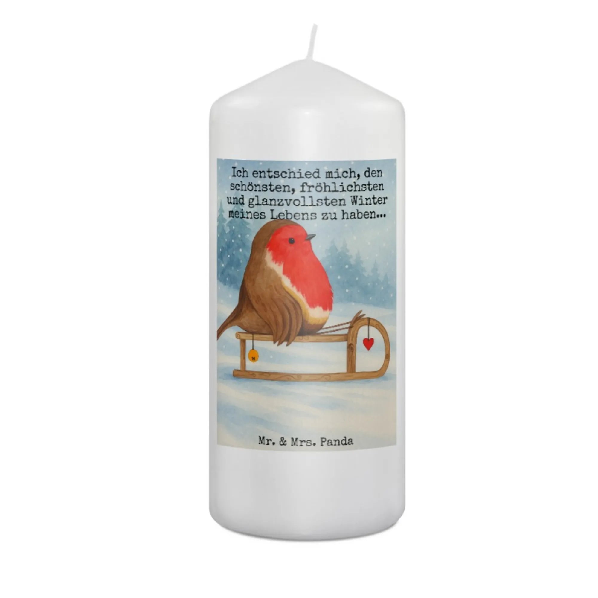 świeca rudzik sanki Design - 19 x 8 cm - z napisem