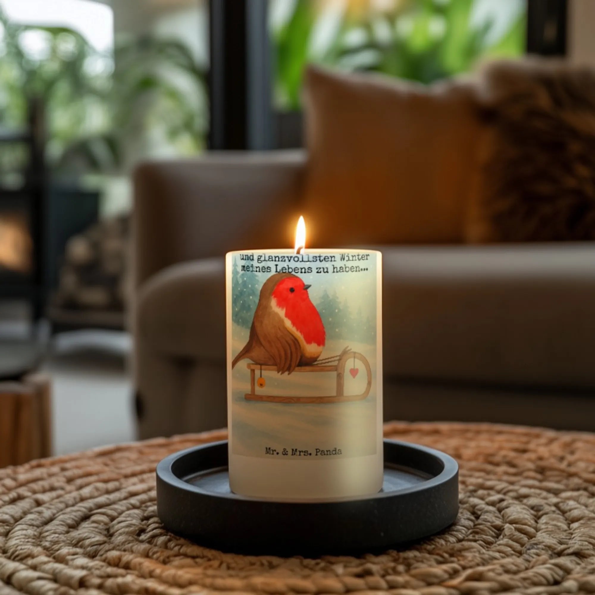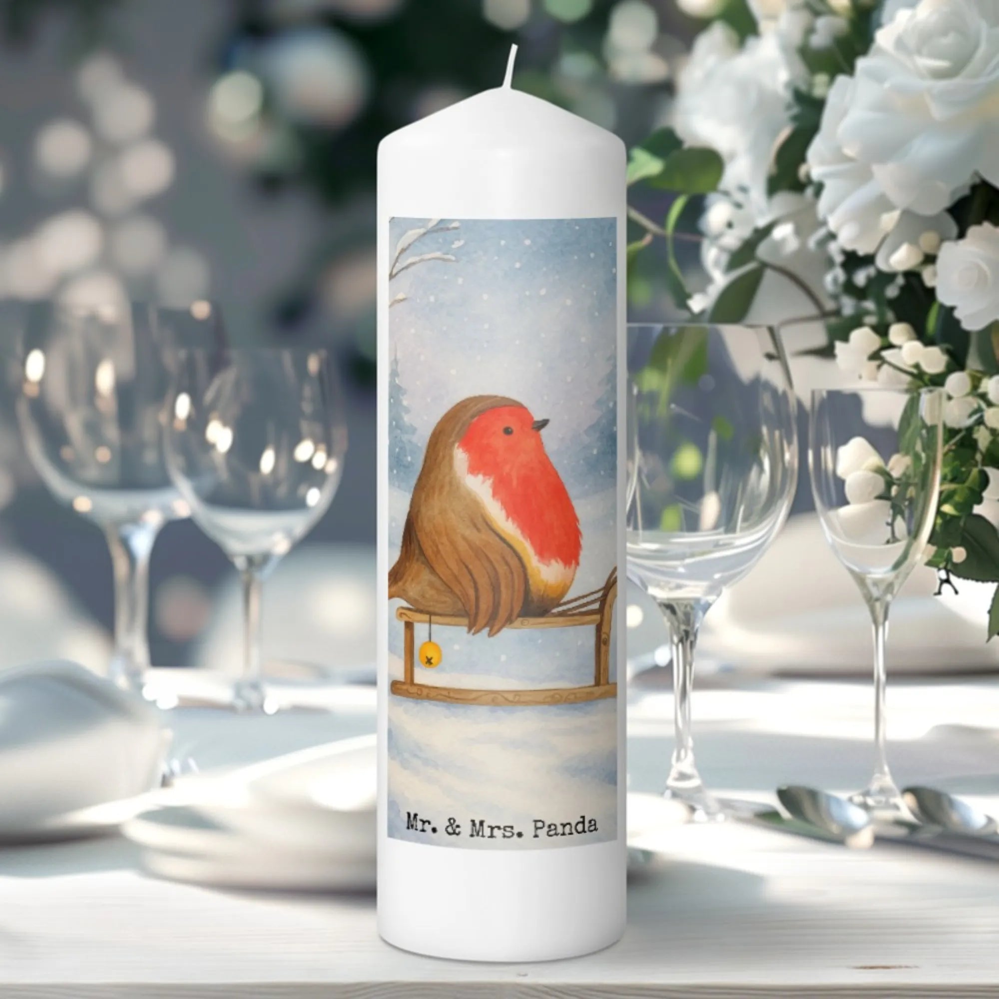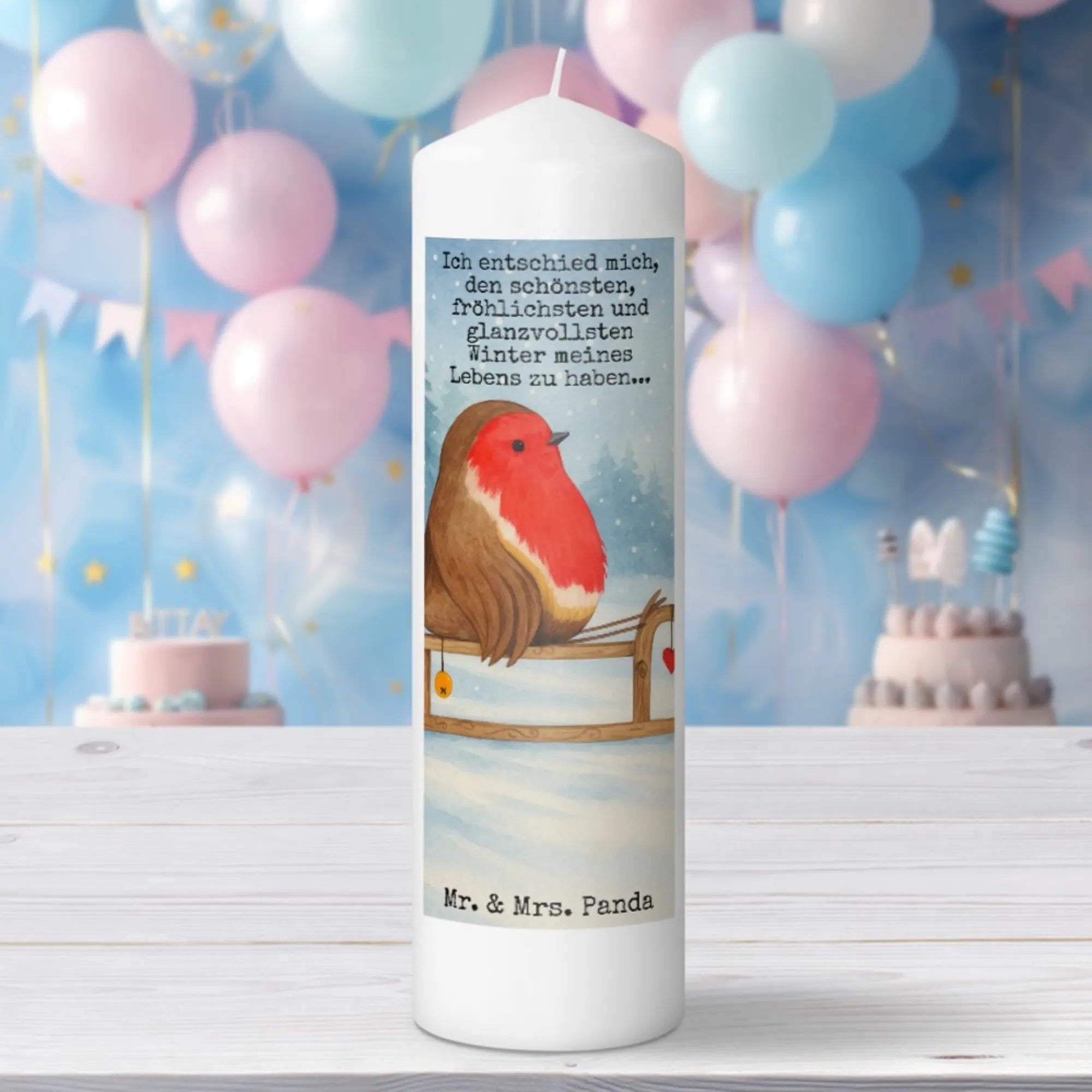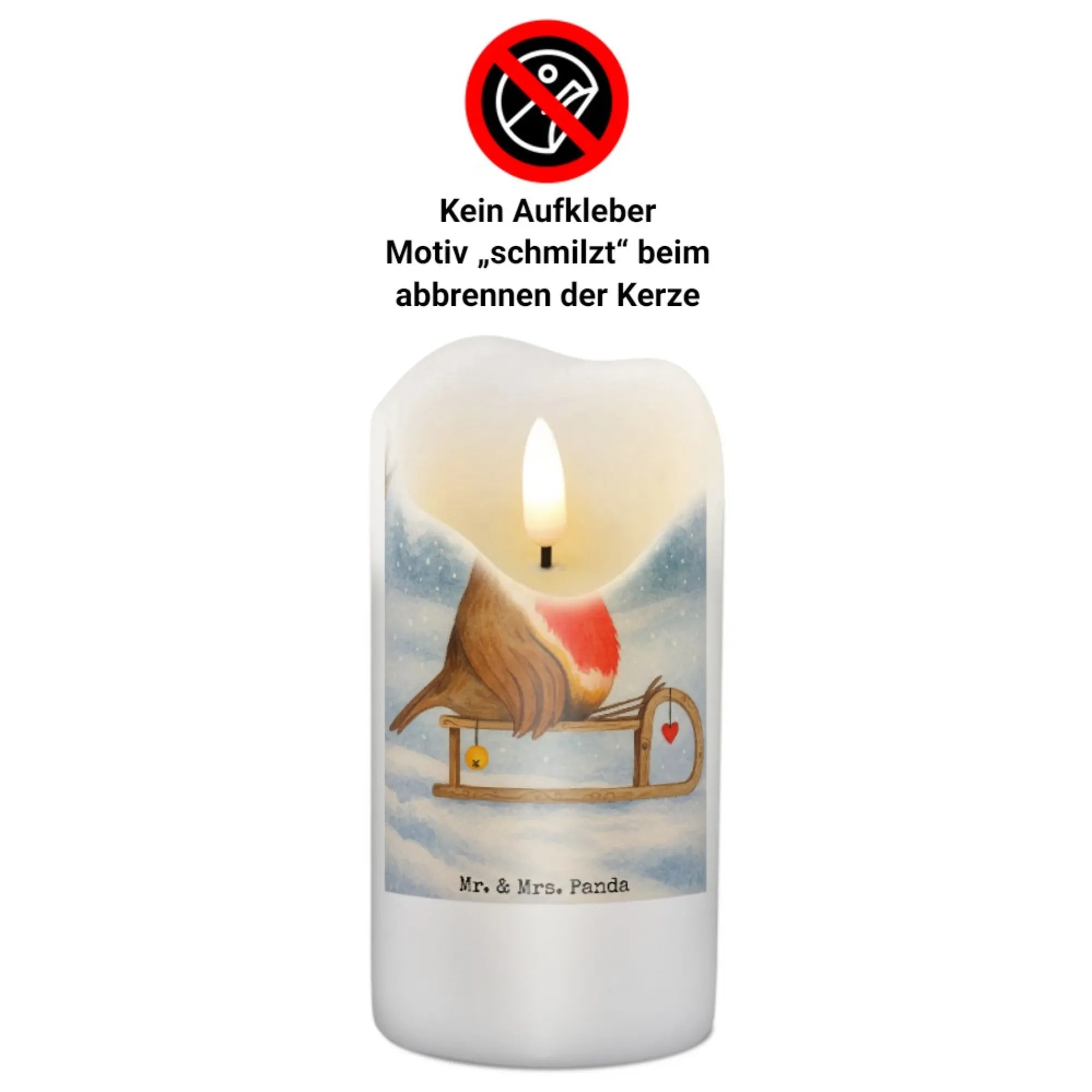 świeca rudzik sanki Design - 19 x 8 cm - z napisem