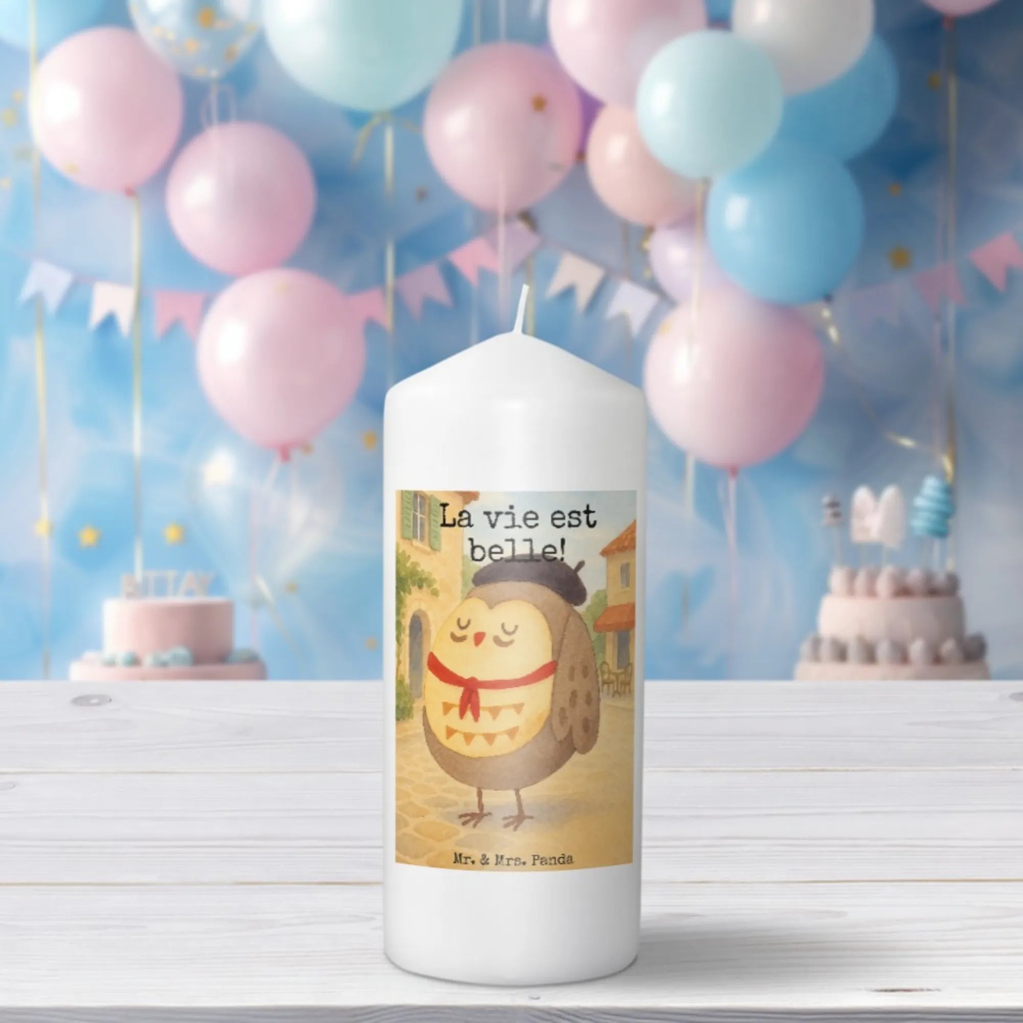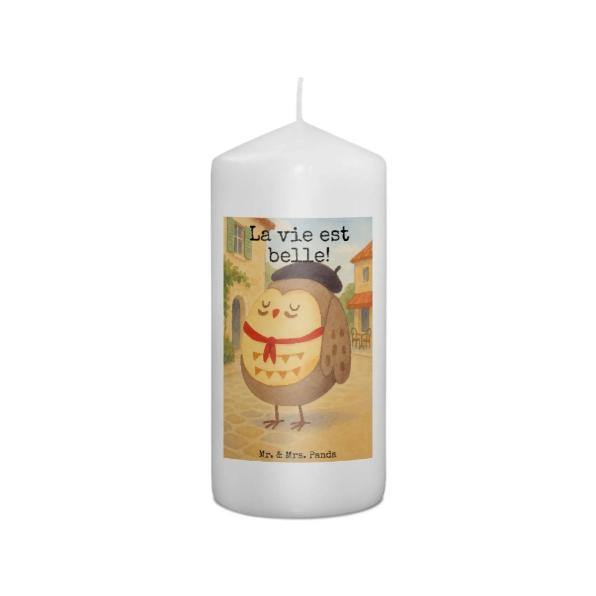 świeca sowa Francja Design - 15 x 7 cm - z napisem