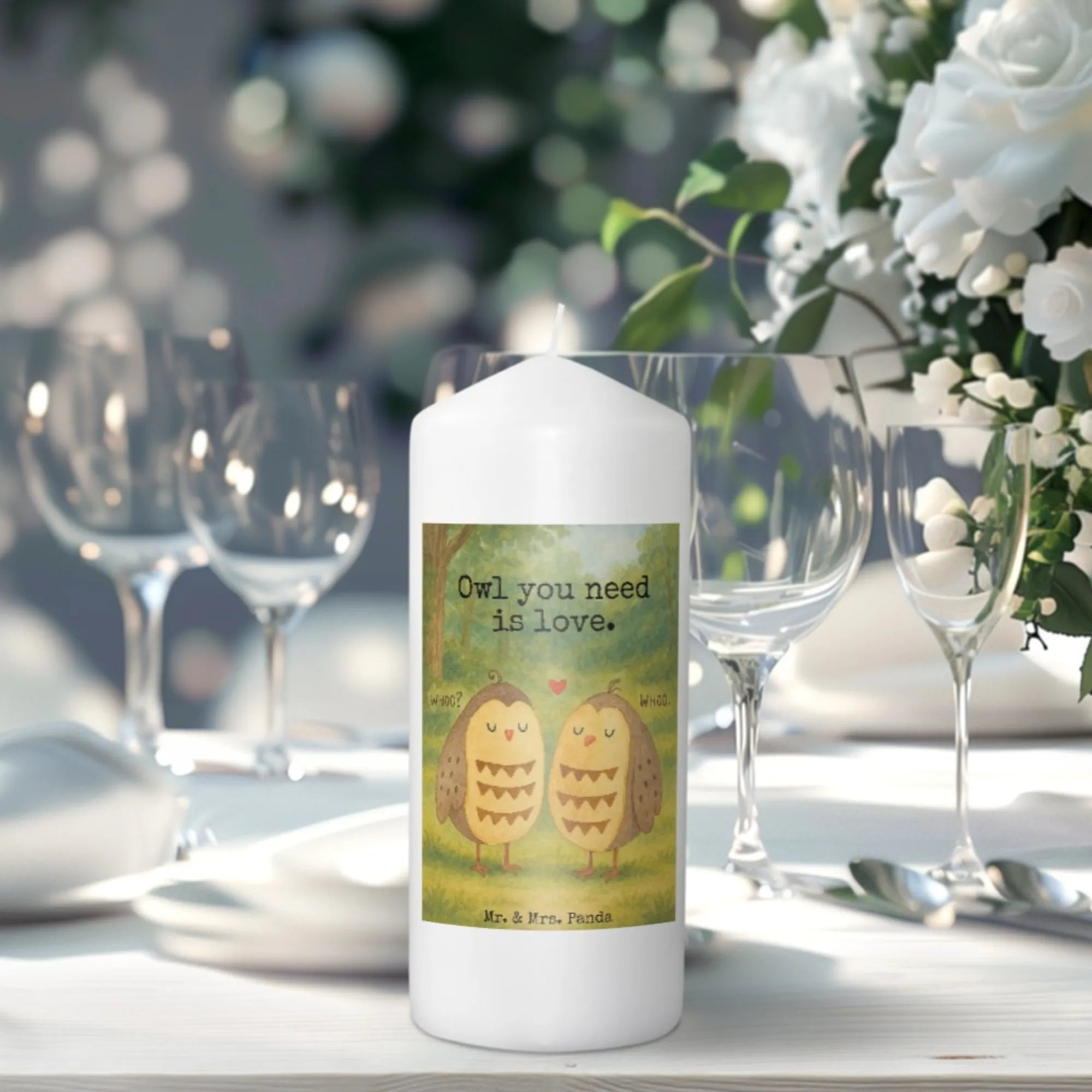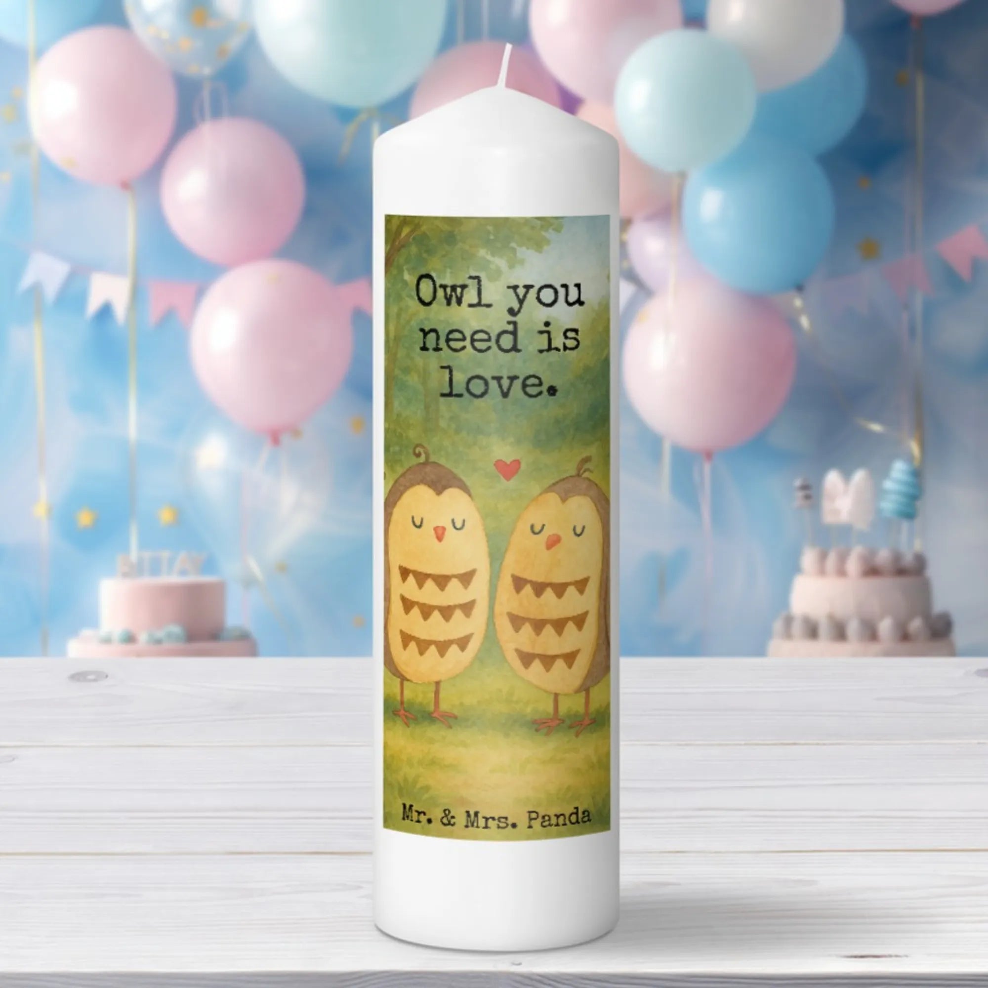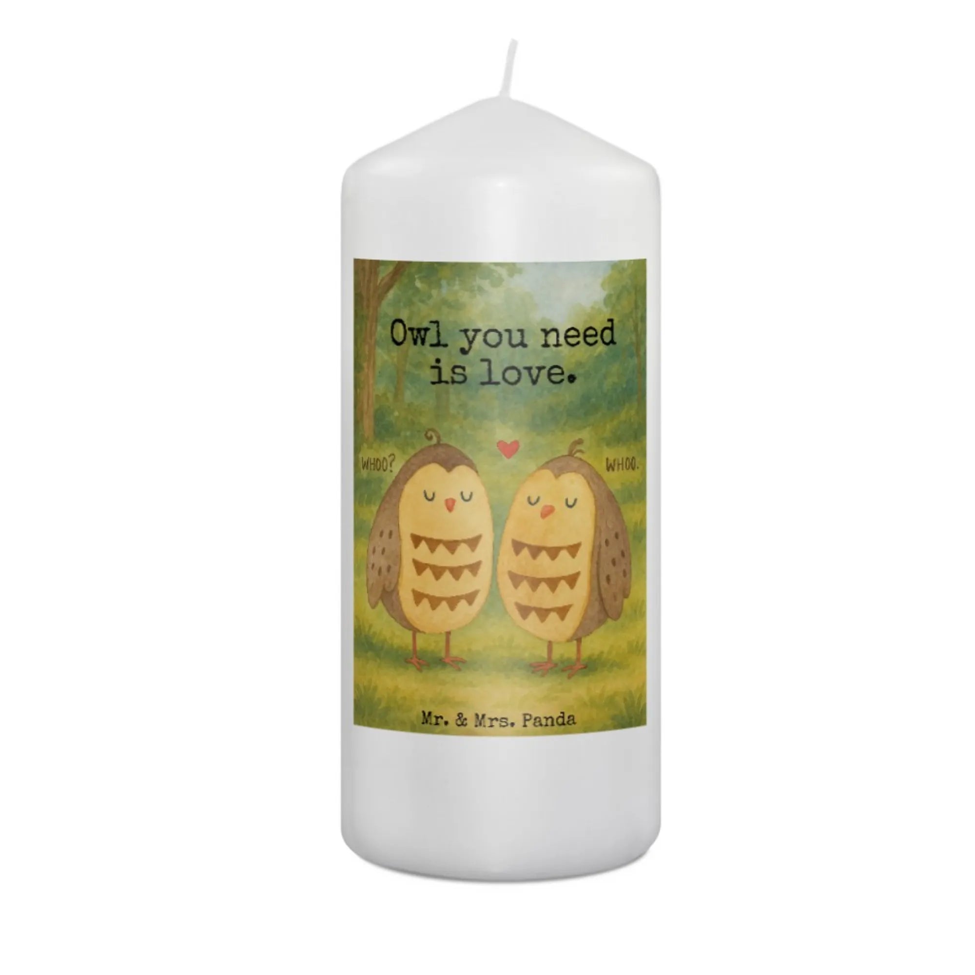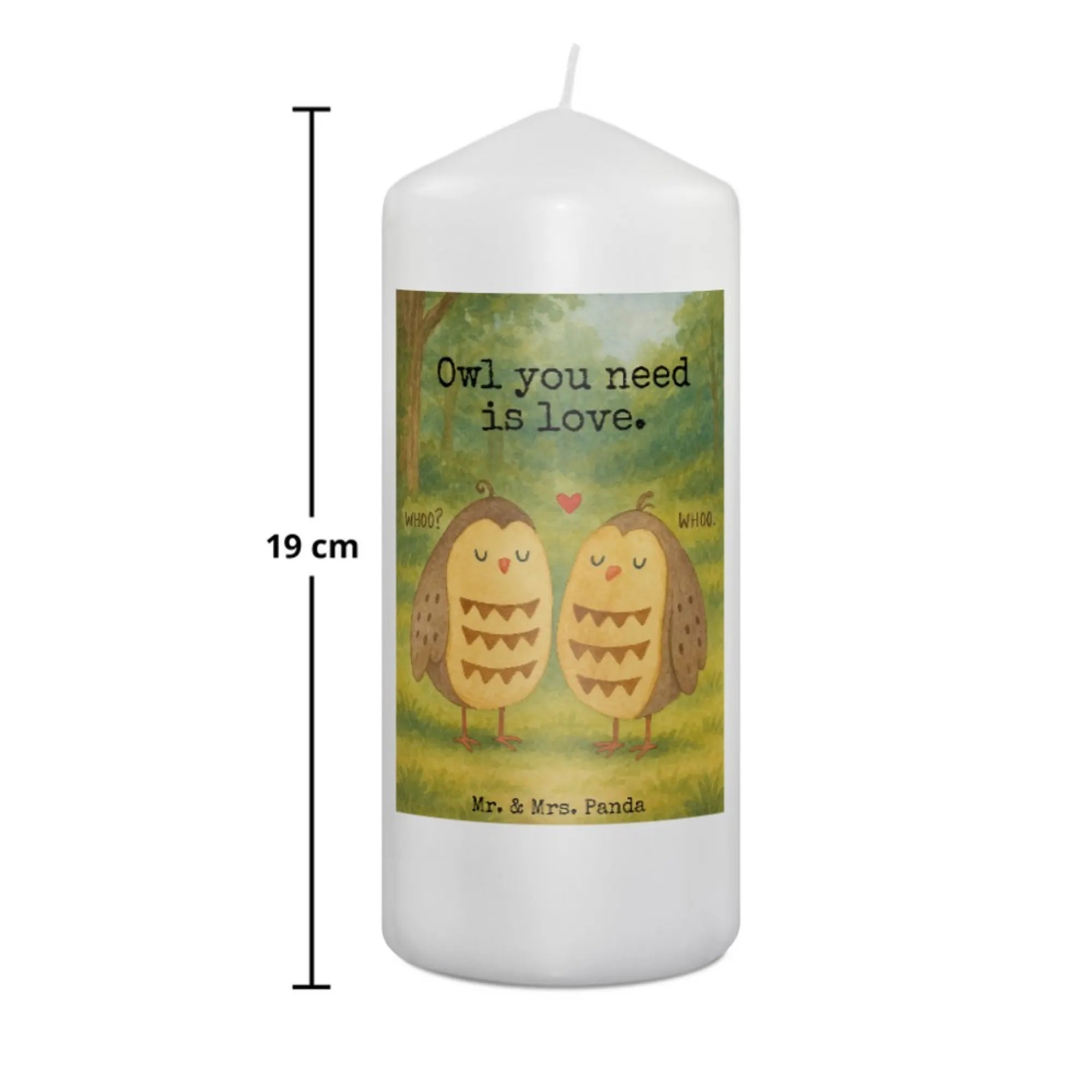 świeca sowy miłość Design - 19 x 8 cm - z napisem