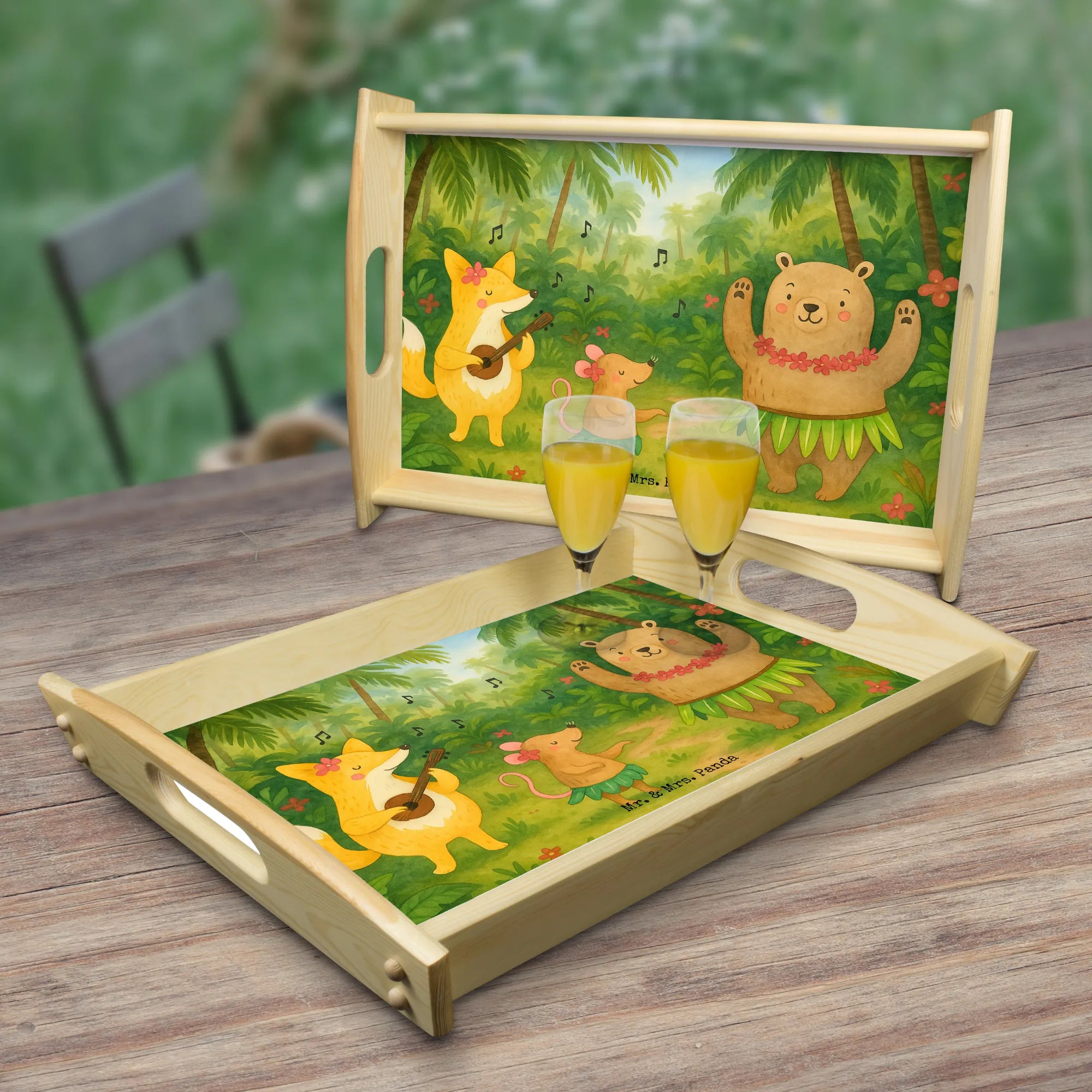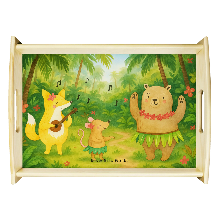 Mr. & Mrs. Panda Serviertablett "Waldtiere Aloha" – Ein fröhlicher Begleiter für Frühstück, Kaffee und gemütliche Stunden. Unsere kleinen Waldbewohner im Hula-Röckchen bringen sonnige Laune und sommerliche Leichtigkeit in dein Zuhause. Das liebevoll gestaltete Motiv aus der Small World-Kollektion ist handgezeichnet und macht dieses Holztablett zu einem echten Hingucker.