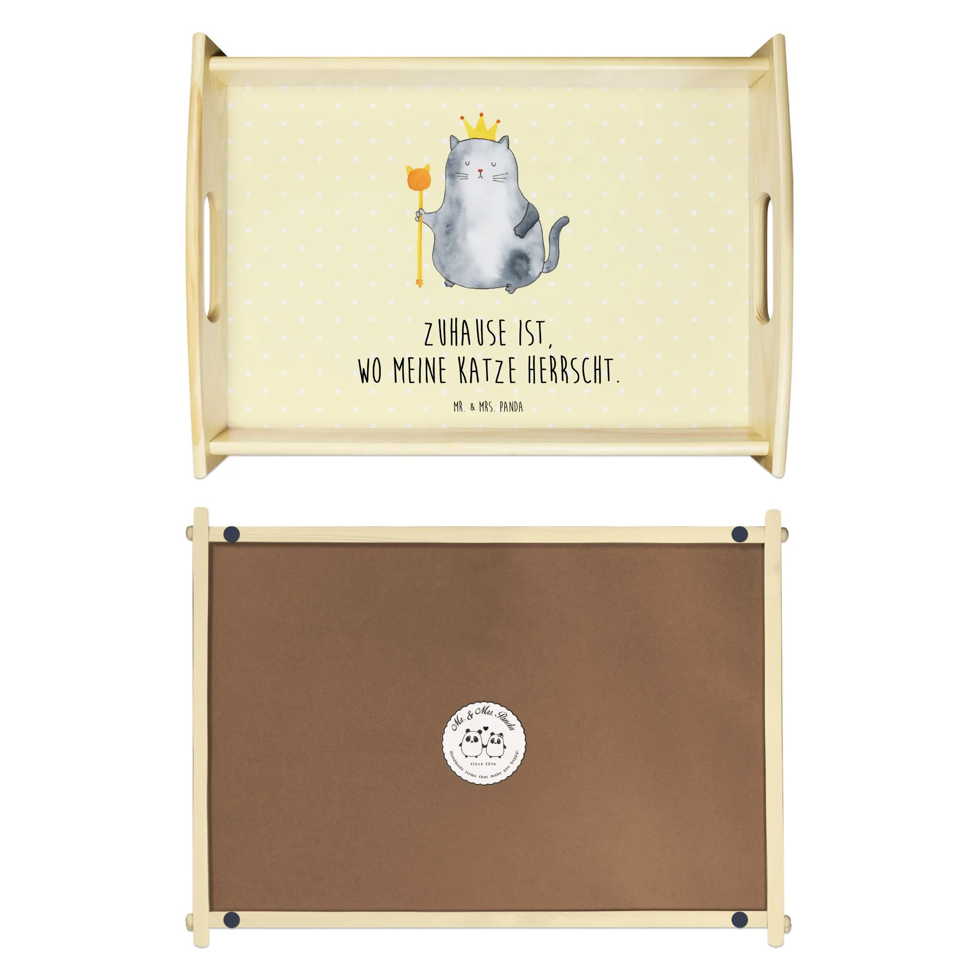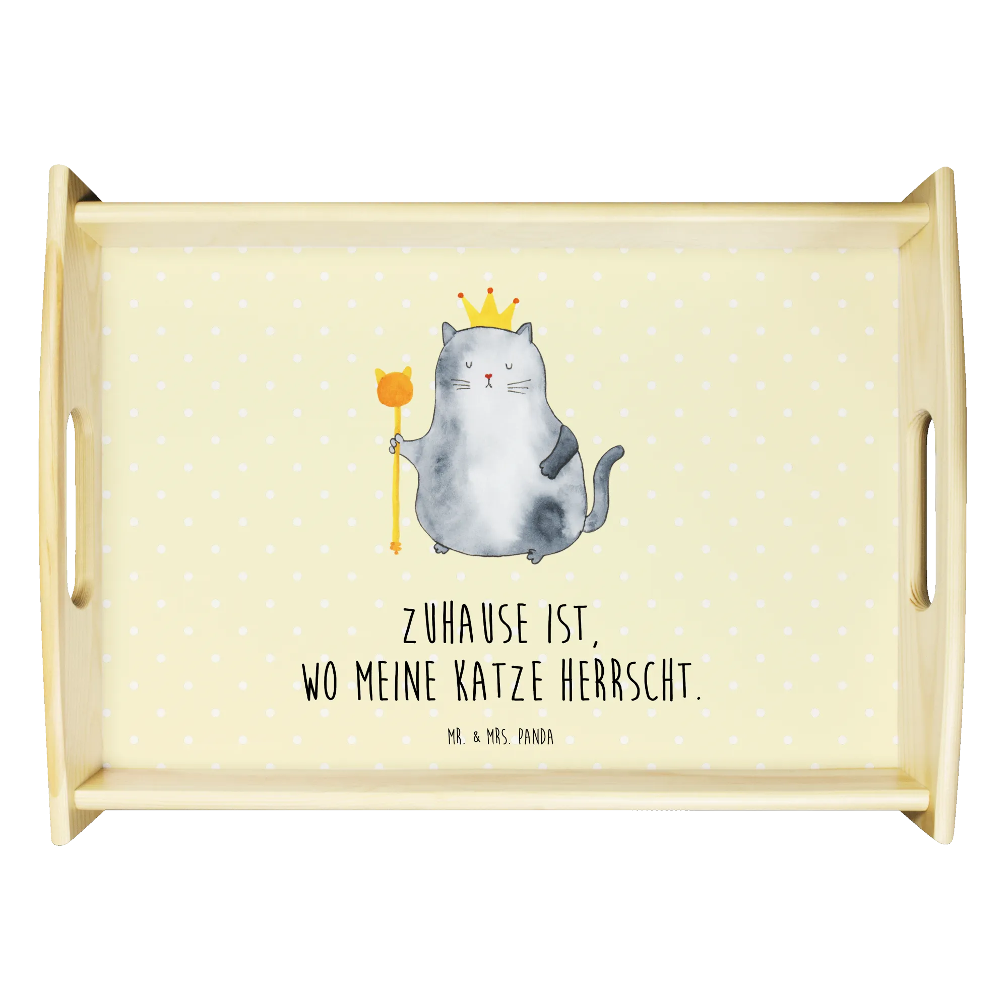 Taca serwisowa kot Król - z napisem - Pastelowy żółty