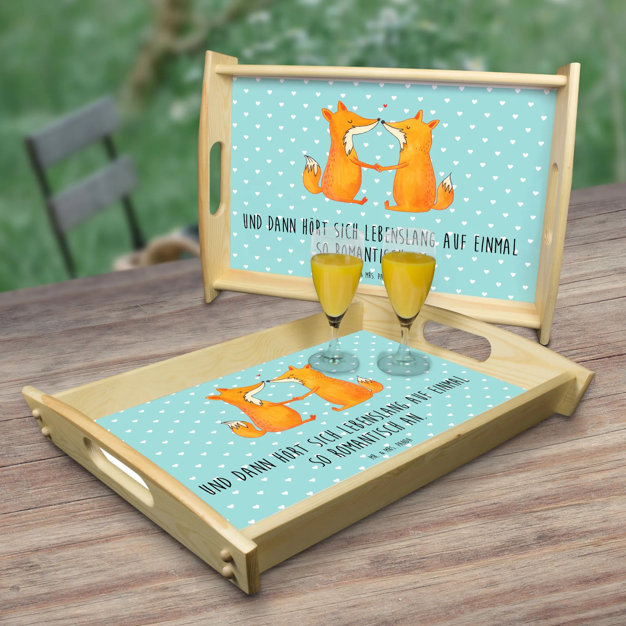 Taca serwisowa lisy miłość - z napisem - pastelowy turkus