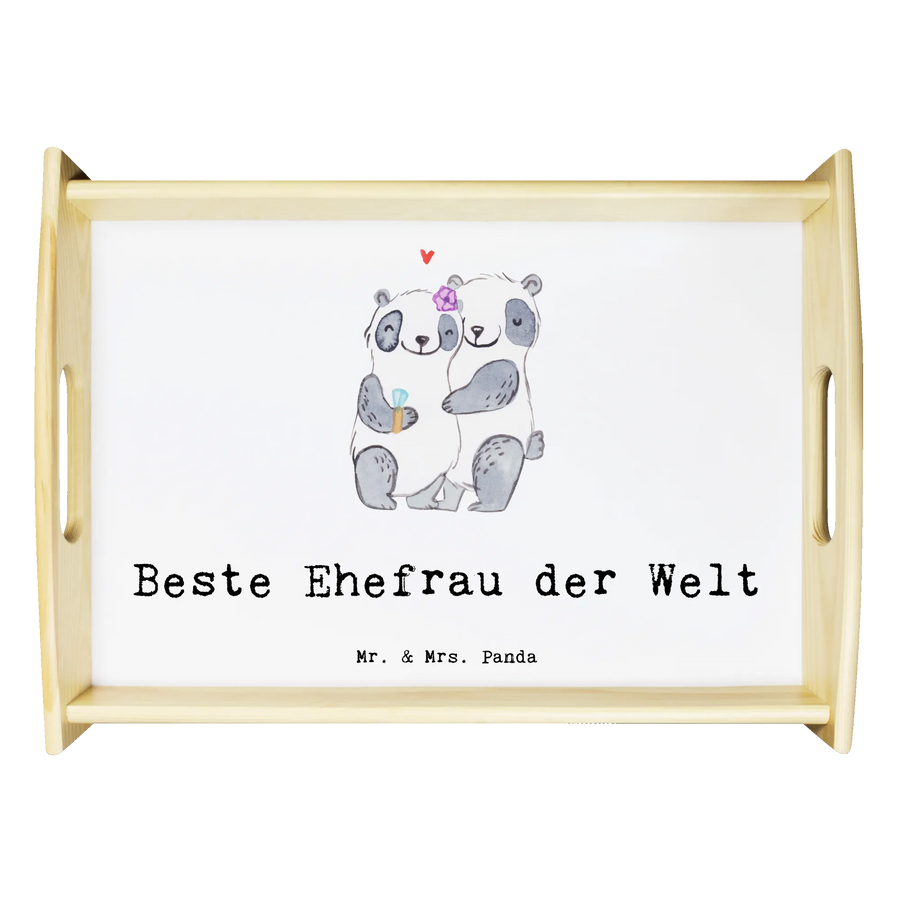 Ein kleiner Gruß fürs Herz: Überrasche deine Liebste mit unserem Serviertablett „Panda Beste Ehefrau der Welt“ von Mr. & Mrs. Panda. Das süße Panda-Paar und der liebevolle Spruch machen dieses Holz Serviertablett zur perfekten Geschenkidee für Ehefrau, Partnerin, Braut oder Lebensgefährtin.
