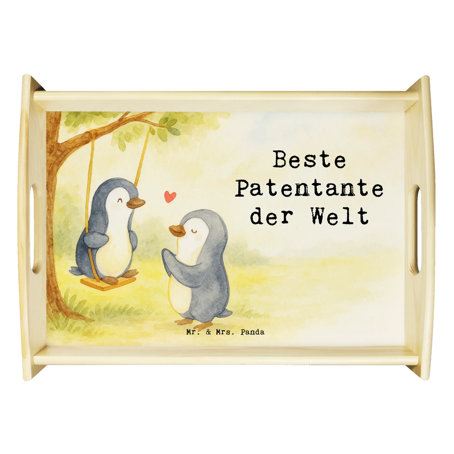 Mit dem herzlichen Motiv Pinguin Beste Patentante der Welt bringst du nicht nur das Frühstück ans Bett, sondern auch eine riesige Portion Liebe. Das Design zeigt einen kleinen, glücklichen Pinguin auf einer Schaukel, der von einem großen, liebevollen Pinguin sanft angeschubst wird. Es ist das perfekte Symbol für die Unterstützung und Geborgenheit, die eine Patentante ihrem Patenkind schenkt. Dieses hochwertige Holztablett aus lasiertem Echtholz ist weit mehr als nur ein praktischer Küchenhelfer.