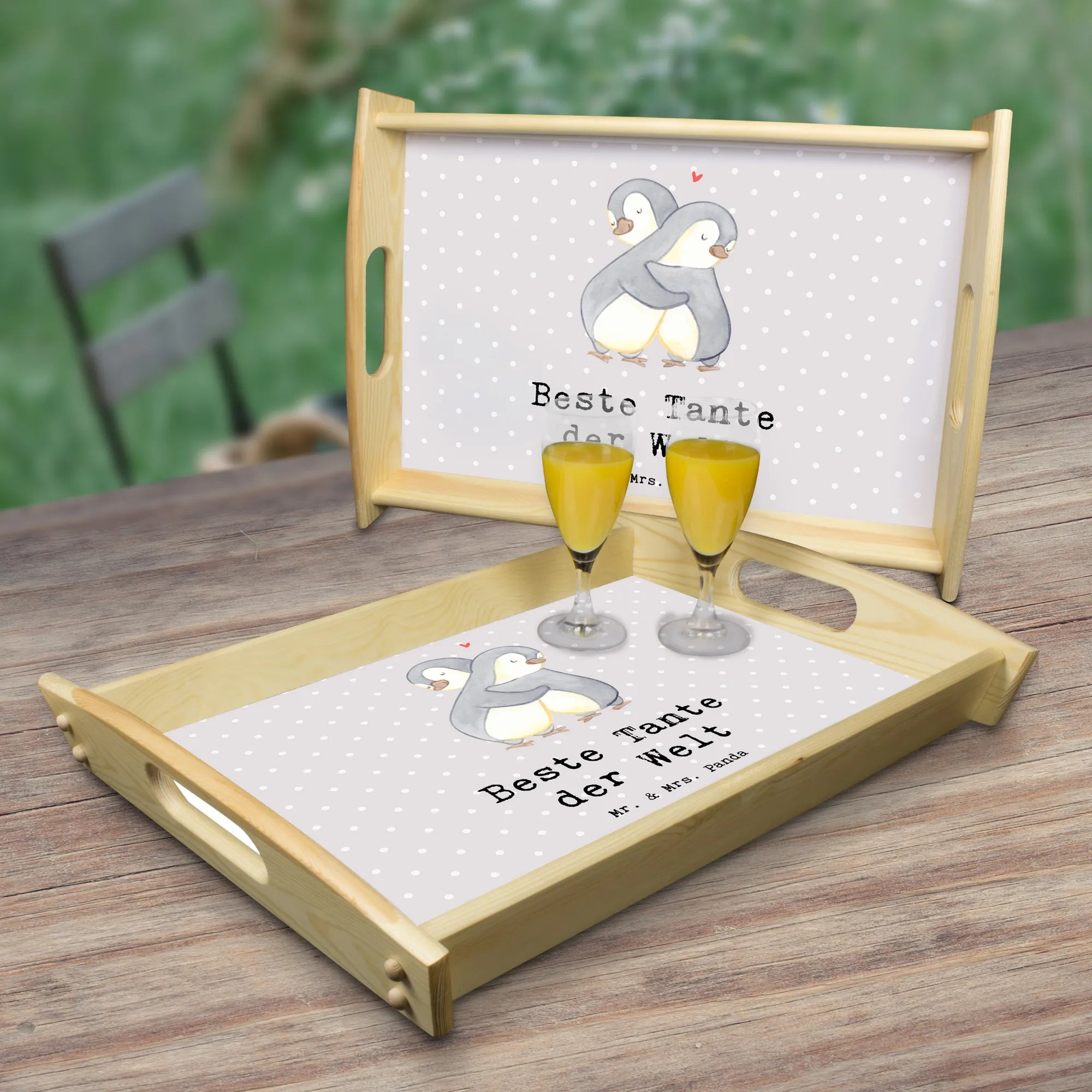 Taca serwisowa pingwin Najlepsza ciocia na świecie - Pastelowy szary