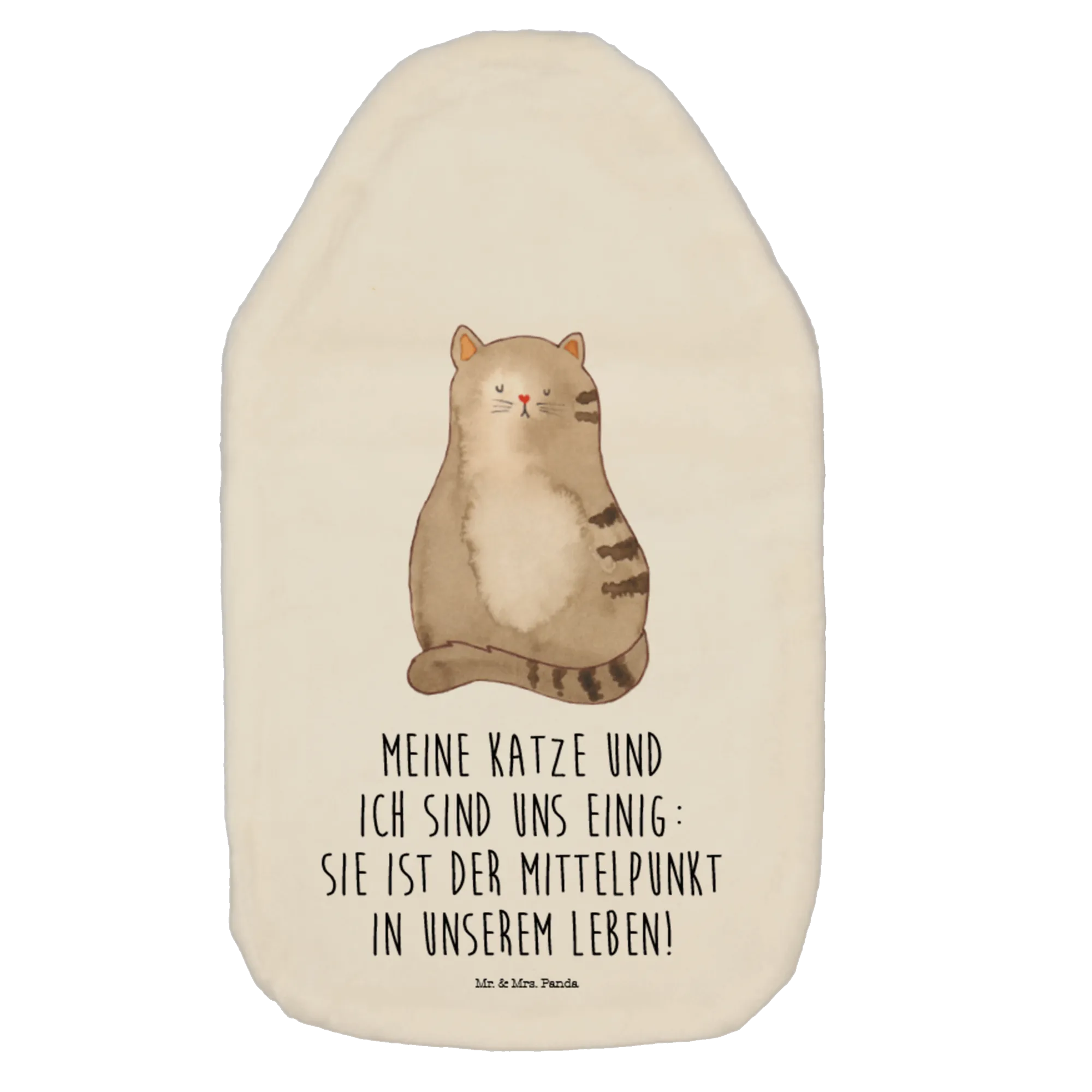 Eine kuschelige Wärmflasche für alle Katzenfans! 🐱 Entdecke die kleine Wärmflasche „Katze sitzend“ aus der liebevollen Katzen - Kollektion von Mr. & Mrs. Panda. Das handgezeichnete Aquarellmotiv von Mrs. Panda zeigt eine entspannte Mietze, die einfach da sitzt und dein Herz erwärmt. Der fröhliche Spruch "Meine Katze und ich sind uns einig: sie ist der Mittelpunkt in unserem Leben!" macht die Wärmflasche zum perfekten Geschenk für Katzenliebhaberinnen und Katzenhalter.