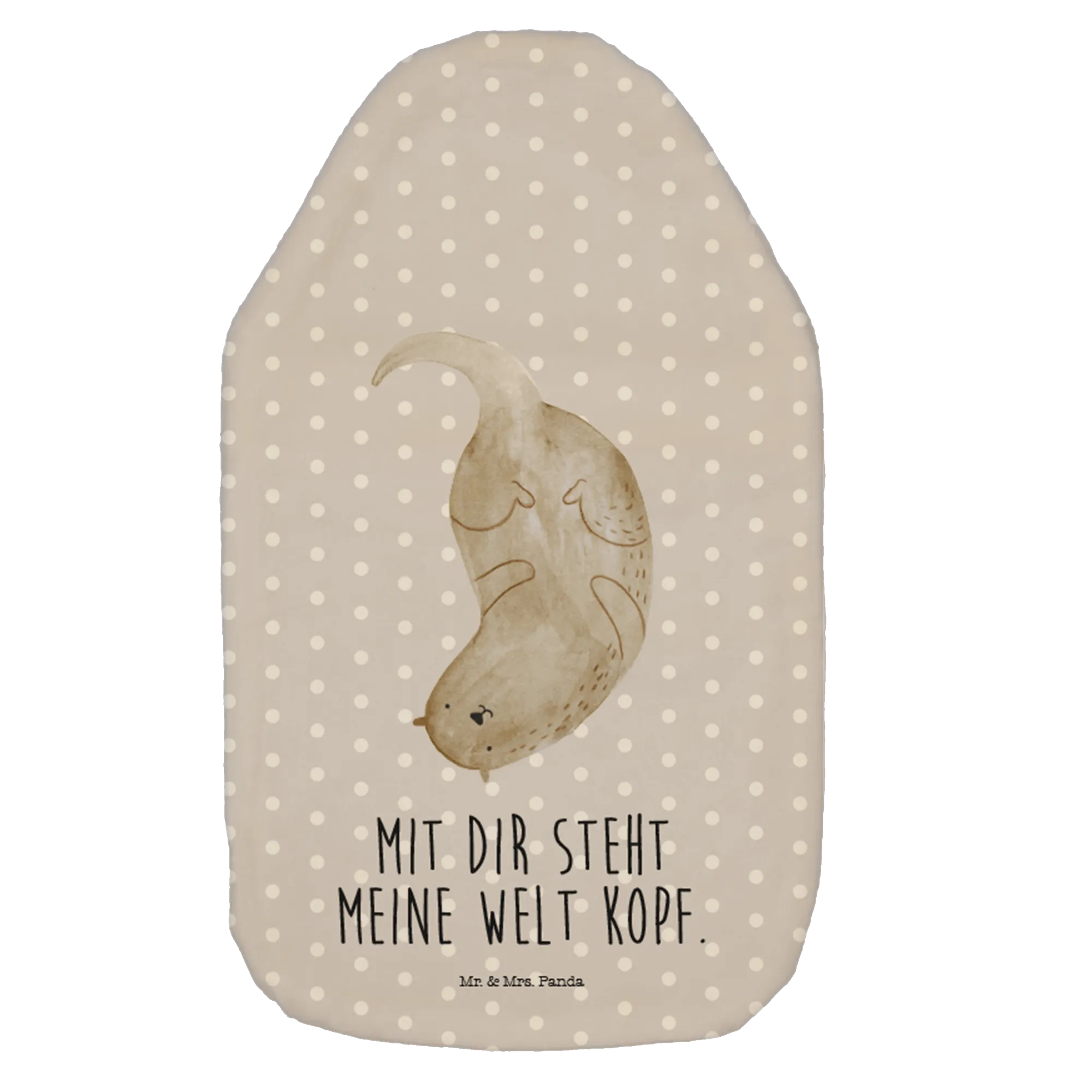 Termofor wydra Do góry nogami - z napisem - Pastelowy szary