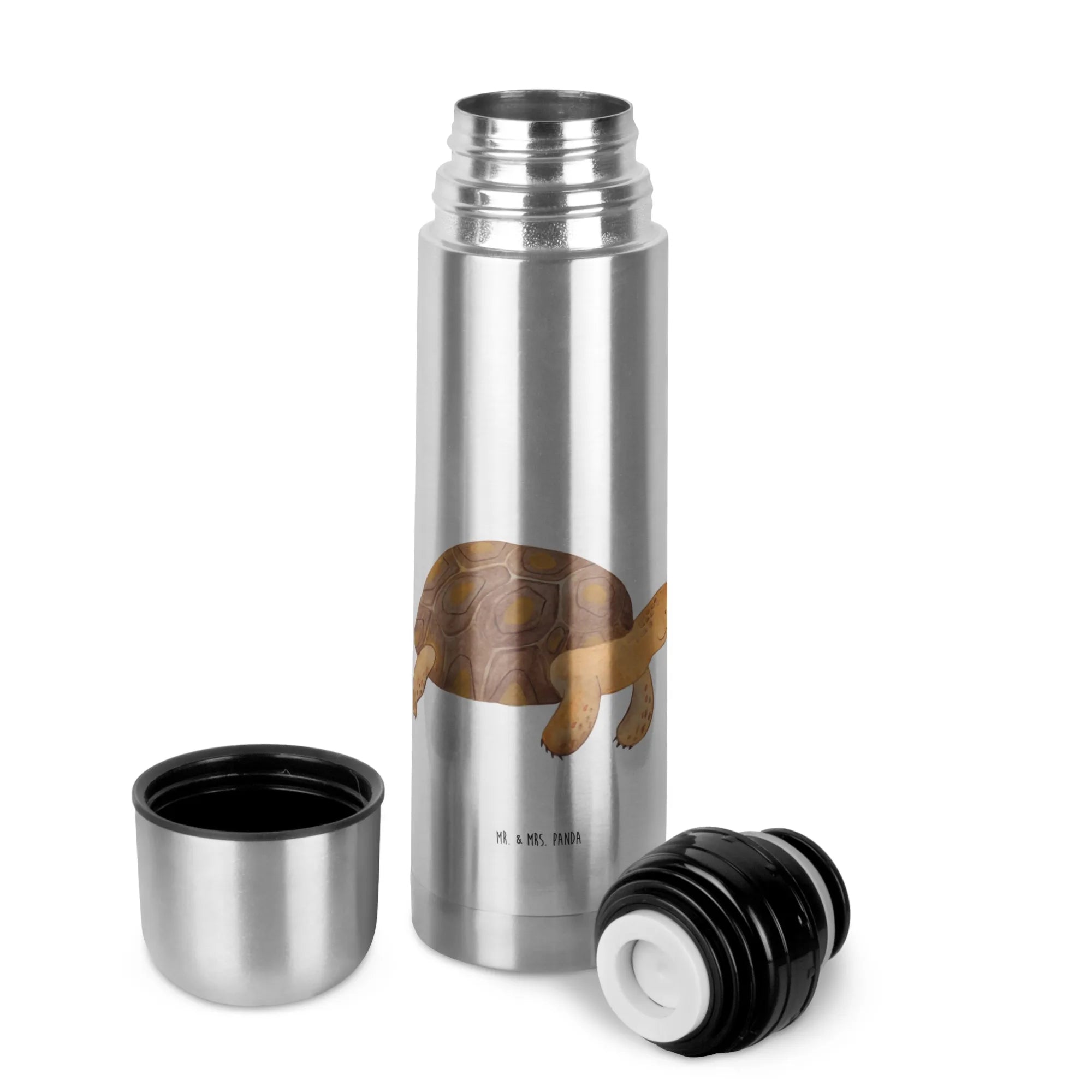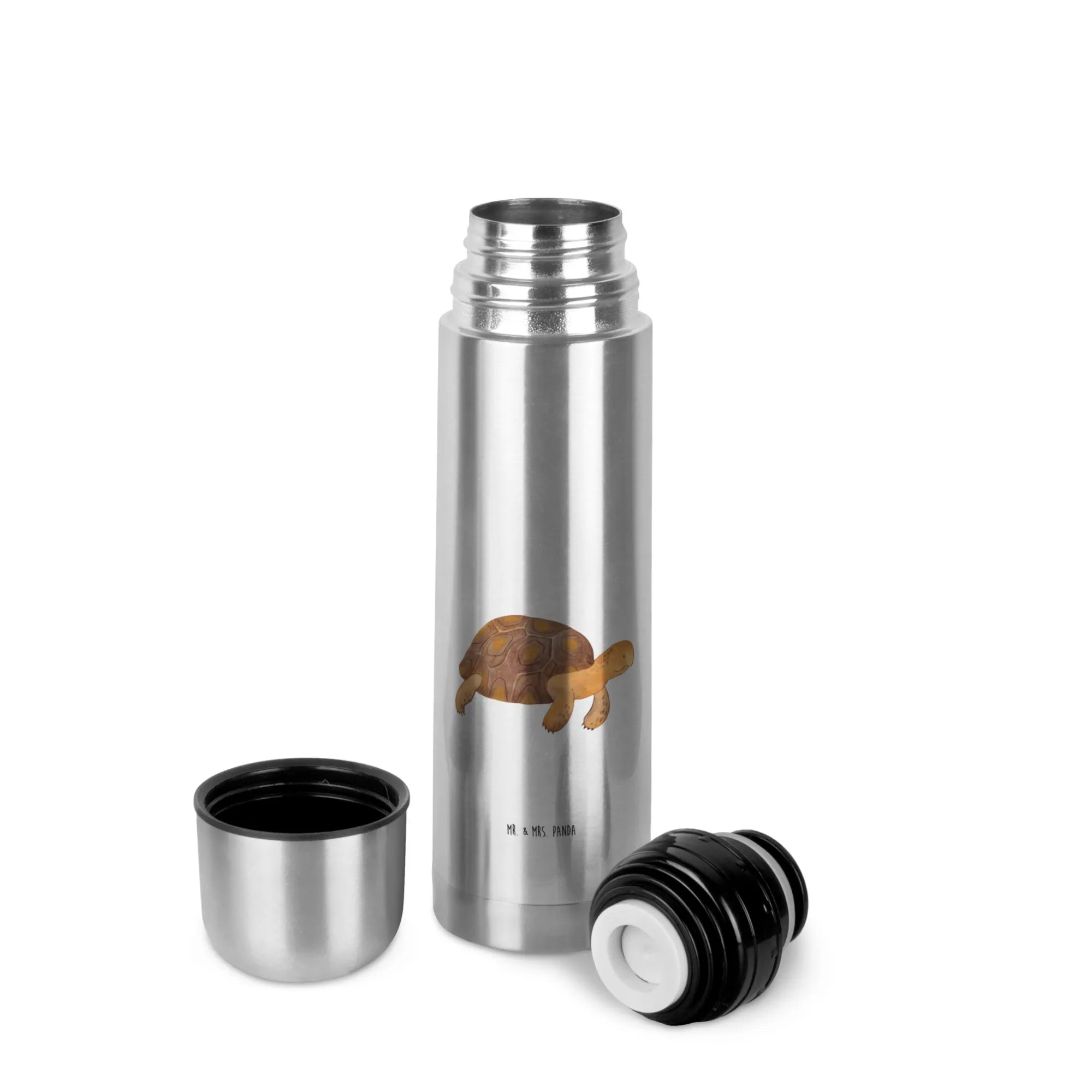 Die wunderschöne Thermoskanne mit dem süßen Motiv der Schildkröte marschiert aus der Meerestiere-Kollektion von Mr. & Mrs. Panda ist das perfekte Geschenk für all diejenigen, die Abenteuer und Reiselust in ihrem Herzen tragen.