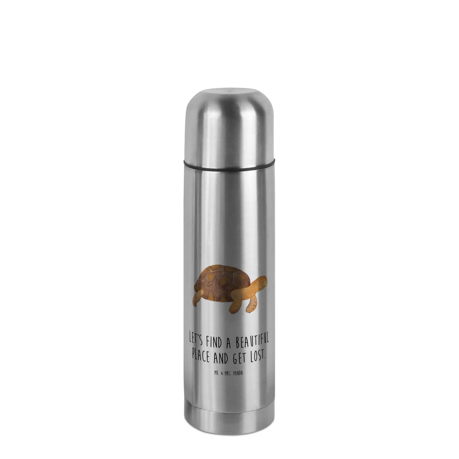 Die wunderschöne Thermoskanne 'Schildkröte marschiert' aus der Meerestiere Kollektion von Mr. & Mrs. Panda ist das perfekte Geschenk für alle, die das Abenteuer lieben und gerne reisen.