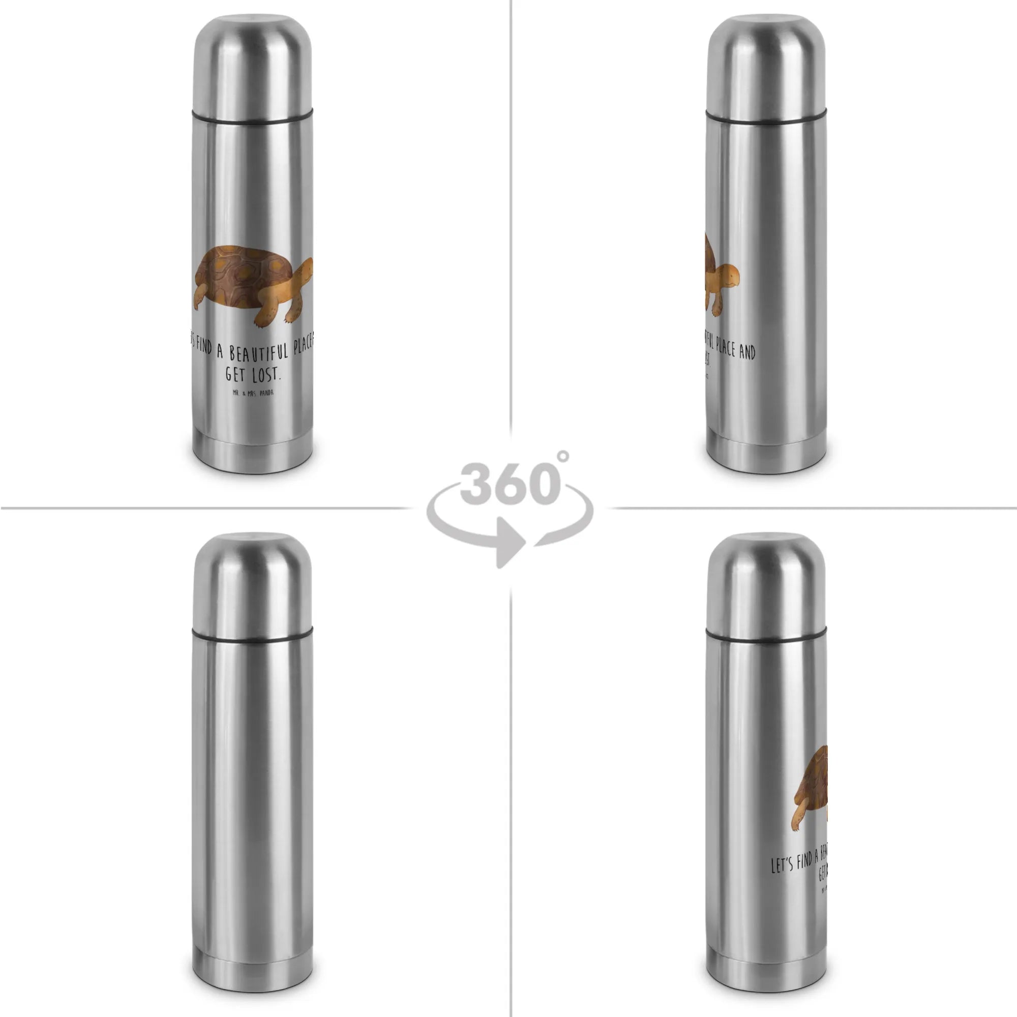Die stilvolle Thermoskanne fasst 500 ml und hält deine Getränke über 24 Stunden heiß – ideal für lange Ausflüge ins Grüne oder entspannte Tage am Strand. Das süße Design mit der gemächlichen Schildkröte und dem Motto 'Let's find a beautiful place and get lost.' inspiriert dazu, neue Orte zu entdecken und die Seele baumeln zu lassen. Jeder Schluck aus dieser robusten Edelstahl-Thermoskanne bringt dich einem neuen Abenteuer näher.